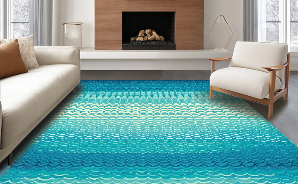 Ultra Soft Area Rug, Non Slip, Stain Resistant, Washable Area Rugs for Living Room, Bedroom, Lively Sea Creature Arrangement(Blue) Overview: