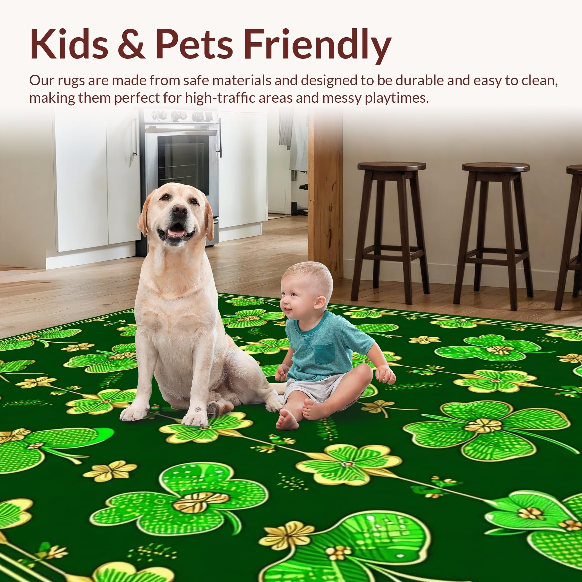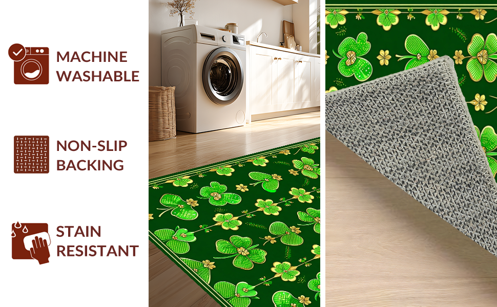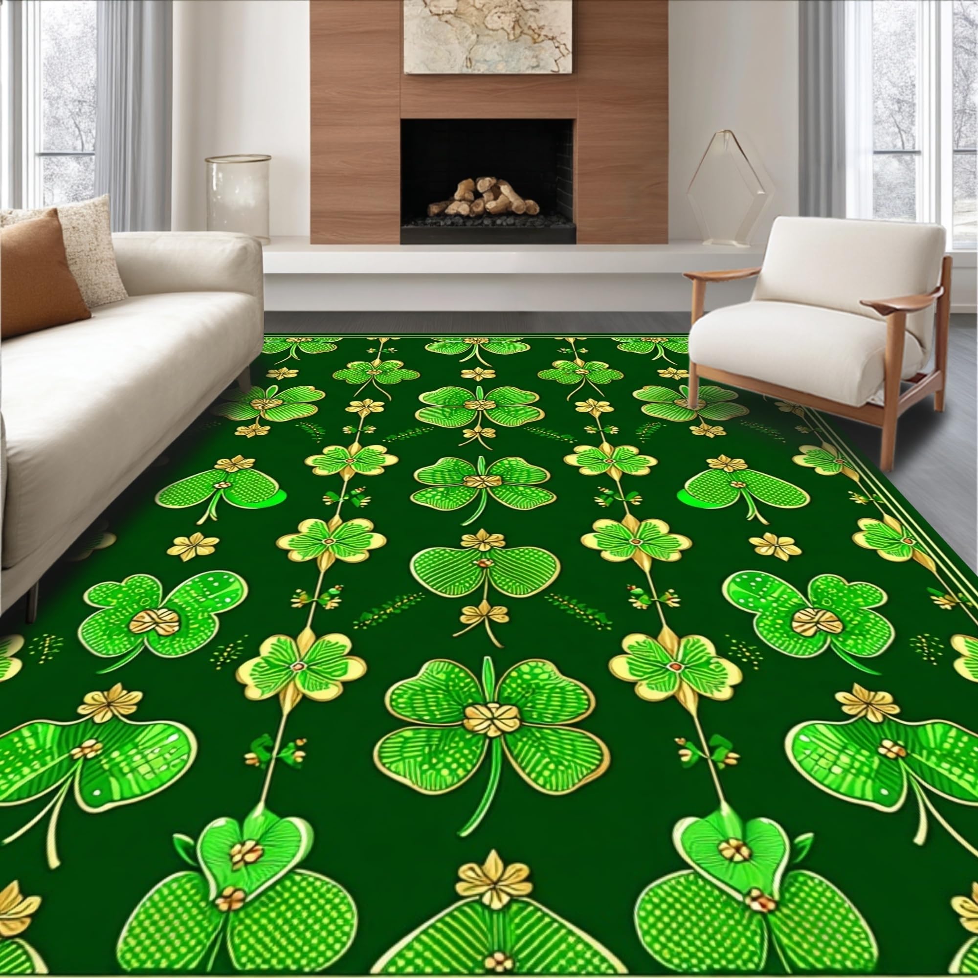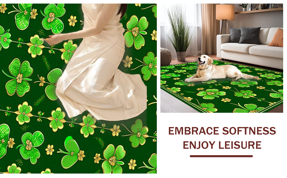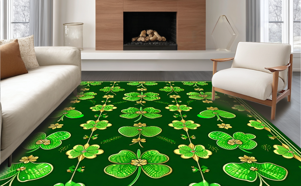 Ultra Soft Area Rug, Non Slip, Stain Resistant, Washable Area Rugs for Living Room, Bedroom, Lively Seasonal Celebration Elements(Green) Overview: