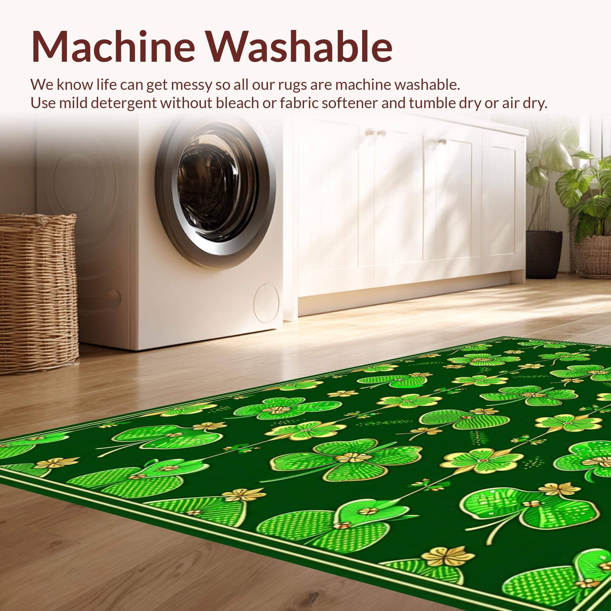 - Machine Washable: Our rugs can be easily thrown in the wash machine.