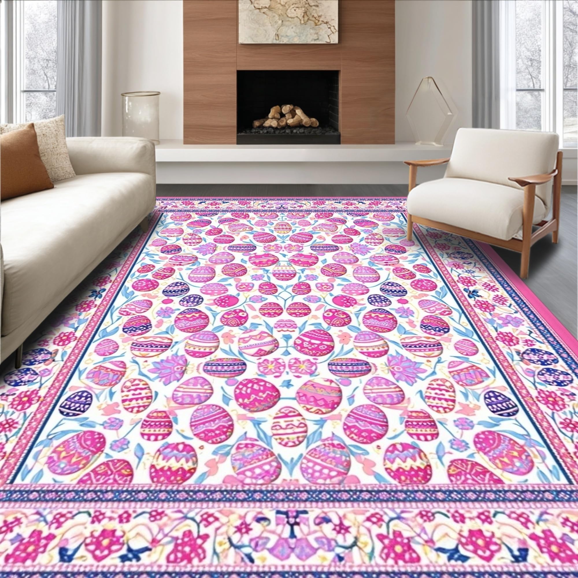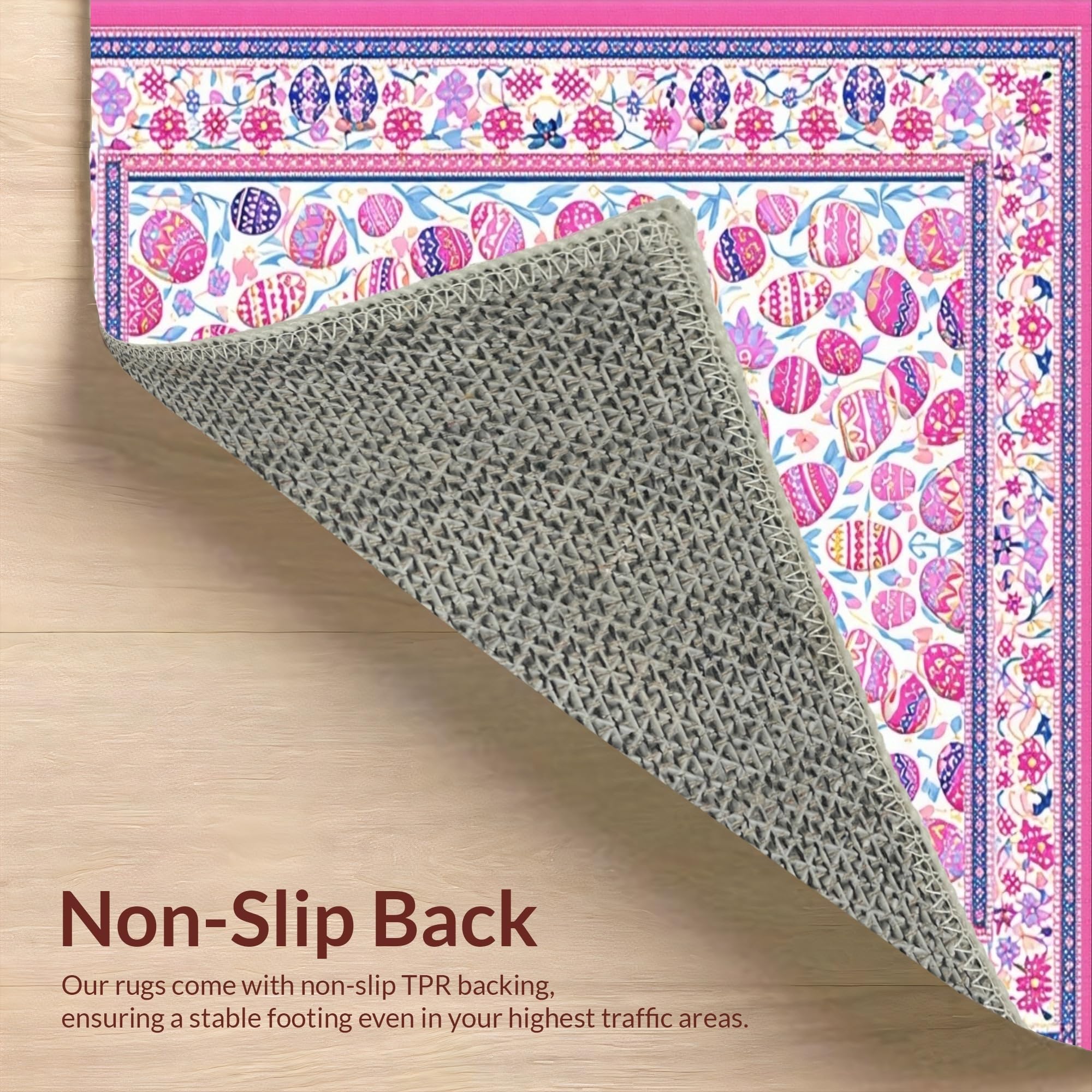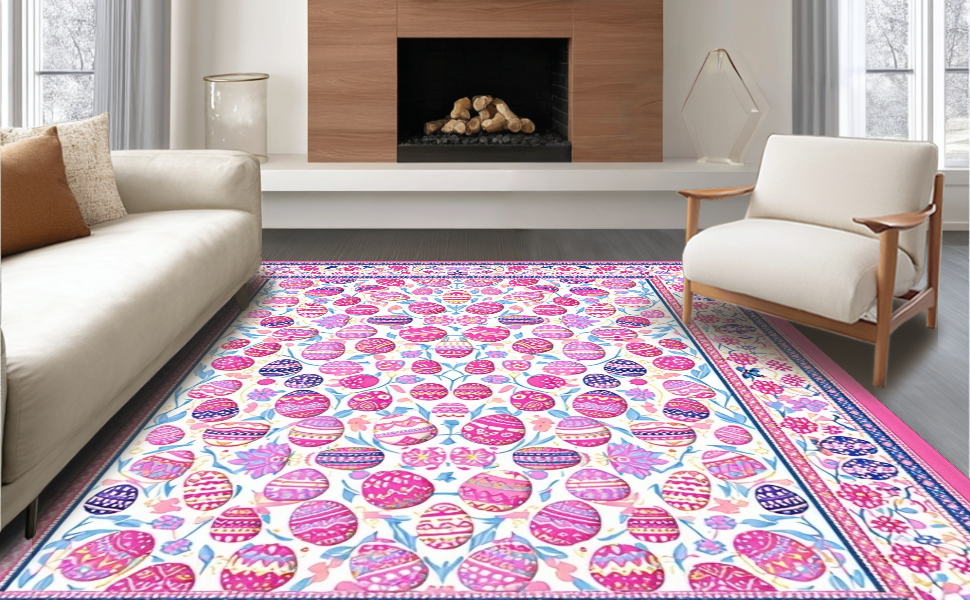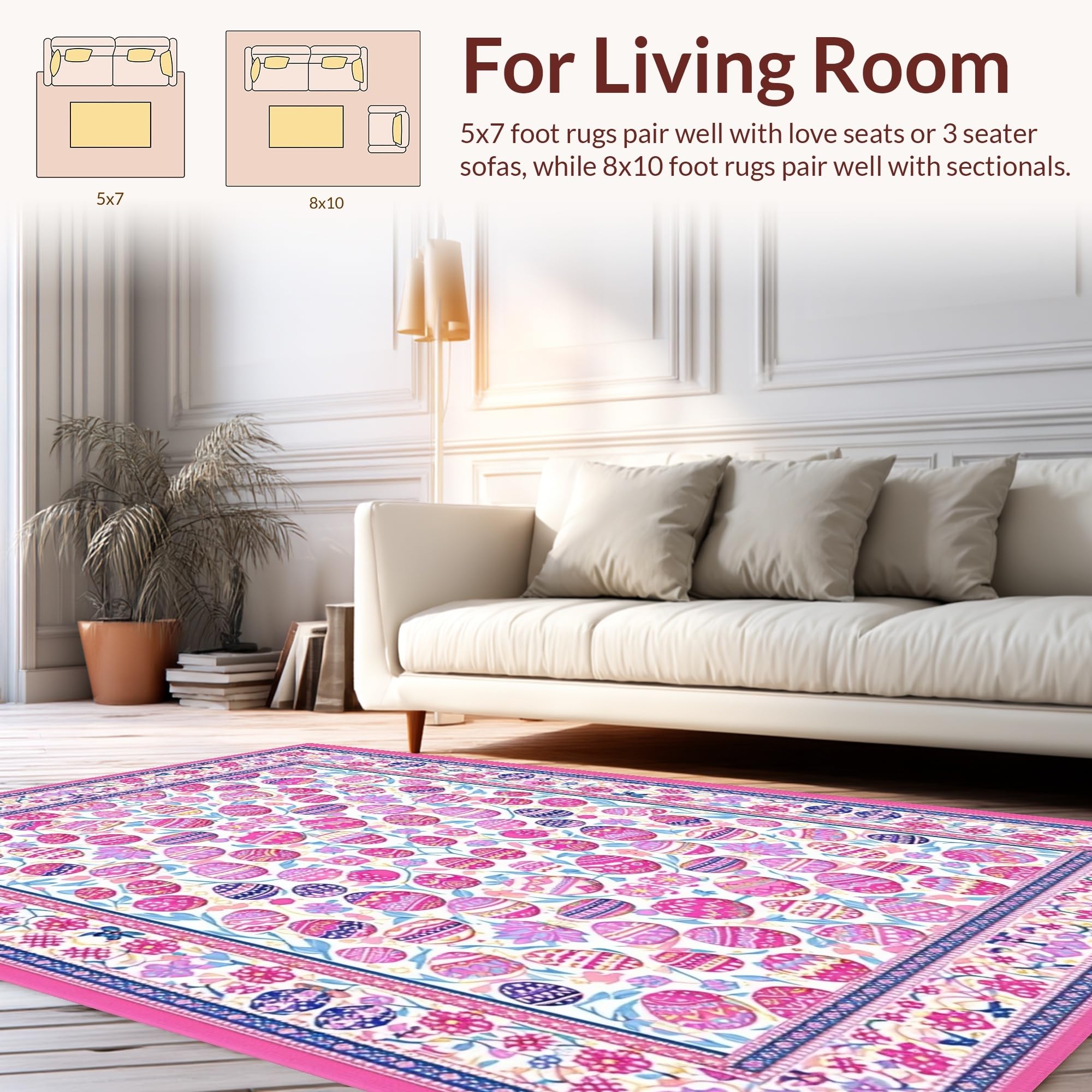 Ultra Soft Area Rug, Non Slip, Stain Resistant, Washable Area Rugs for Living Room, Bedroom, Lively Spring Blossom Arrangement(White) Overview: