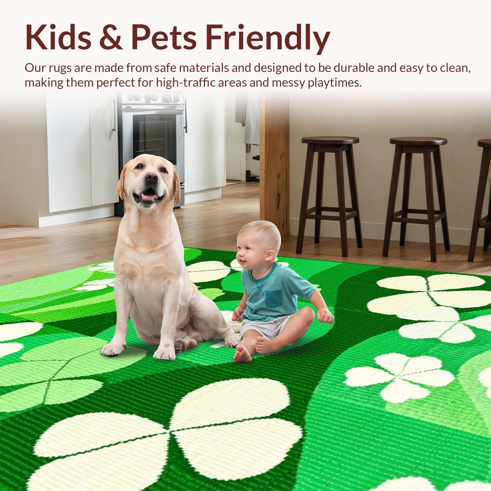 Ultra Soft Area Rug, Non Slip, Stain Resistant, Washable Area Rugs for Living Room, Bedroom, Lively St. Patrick's Day Theme(Green) Overview: