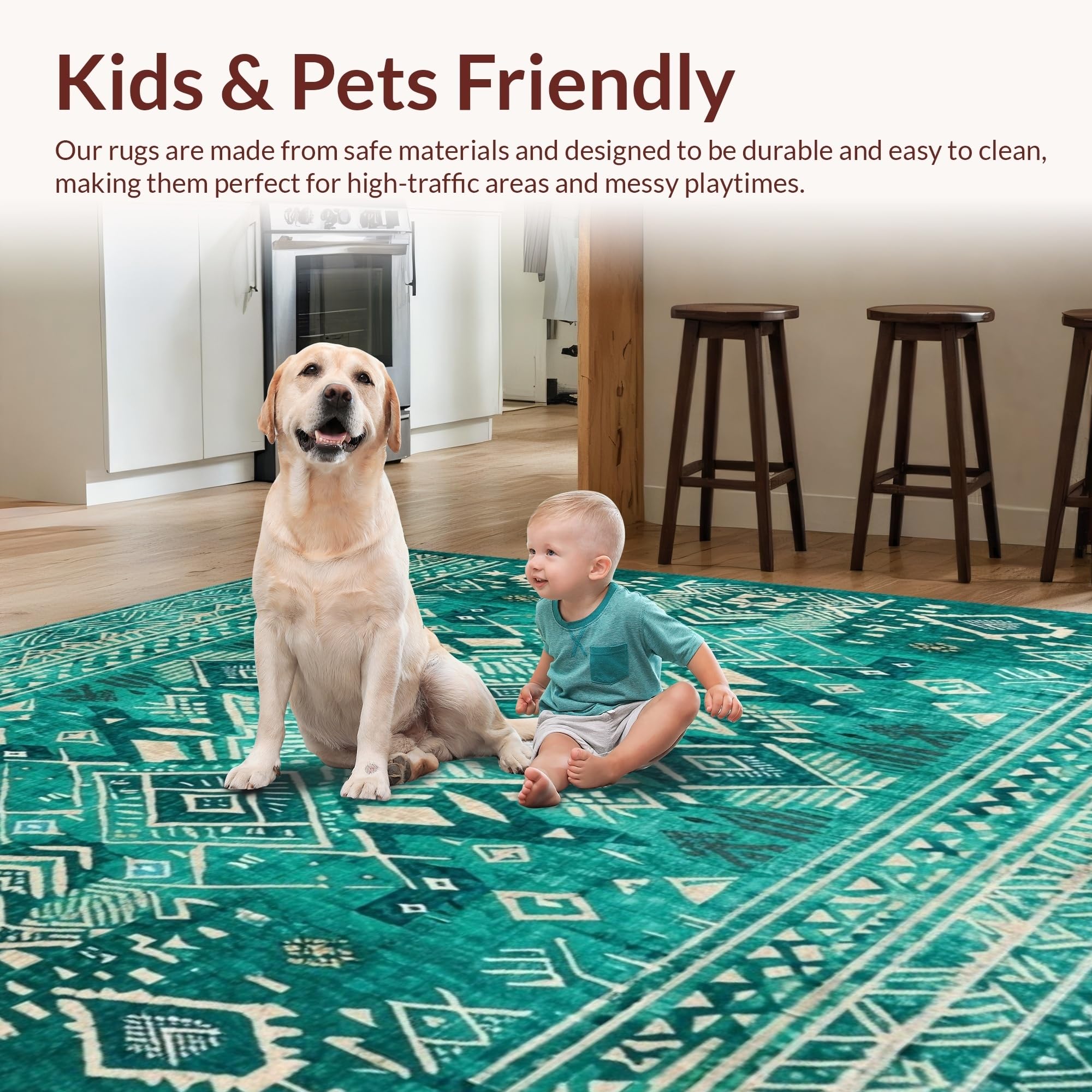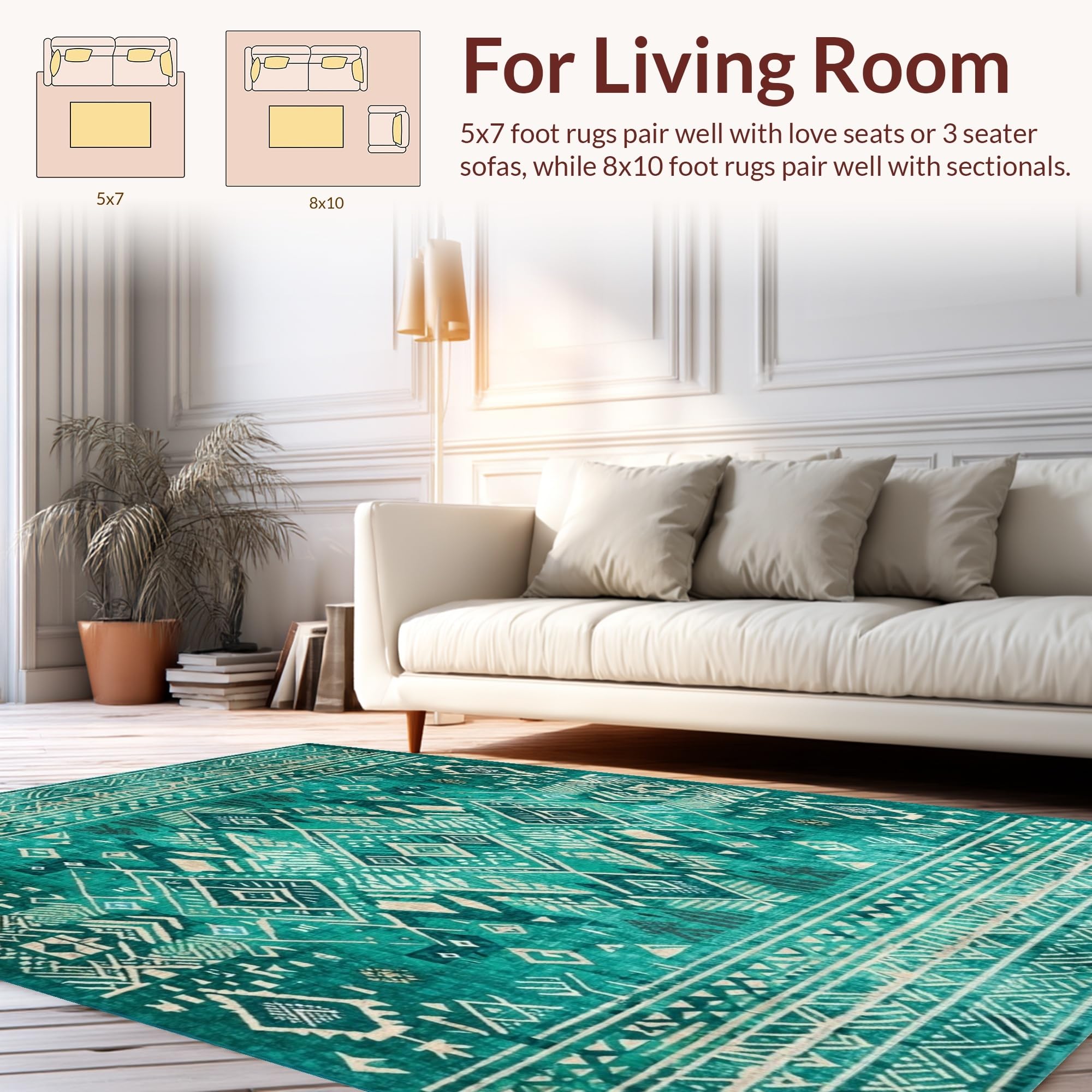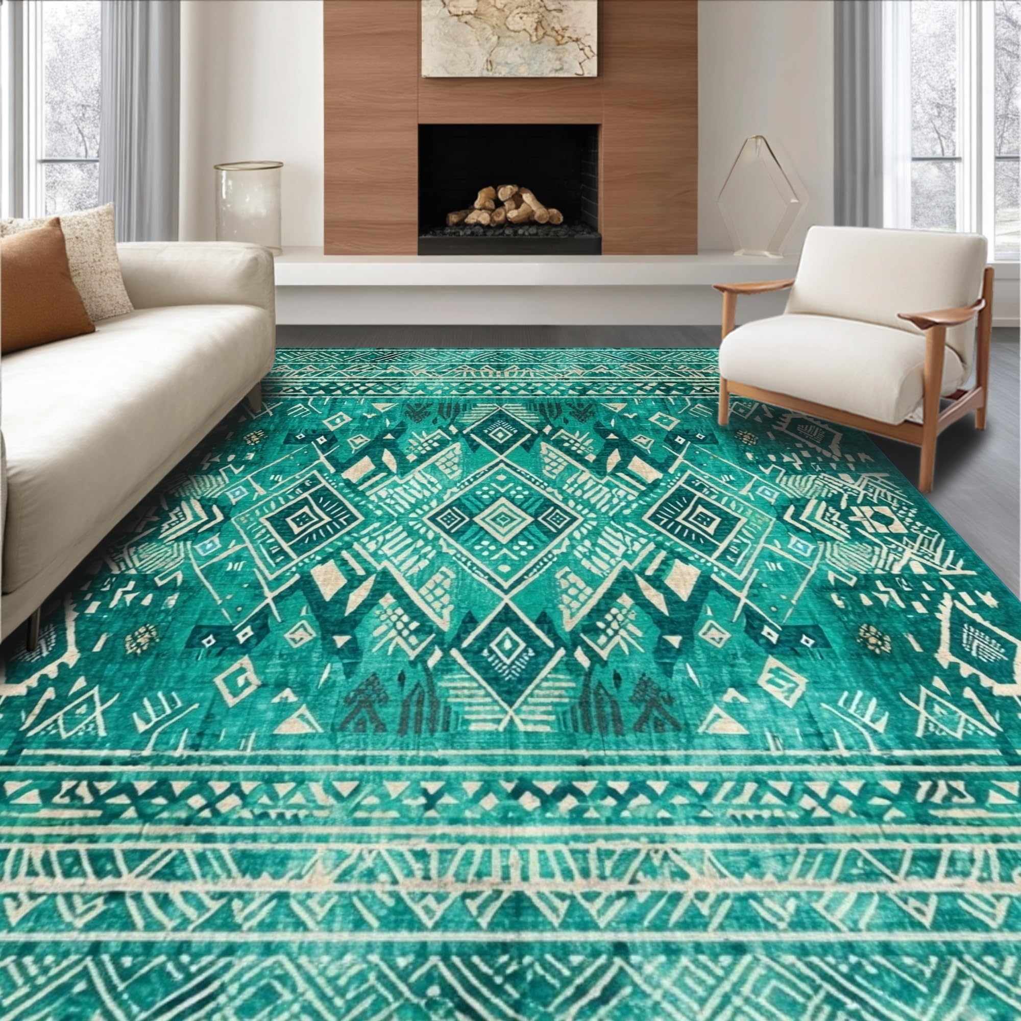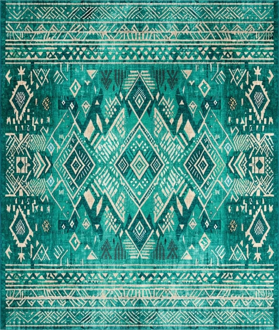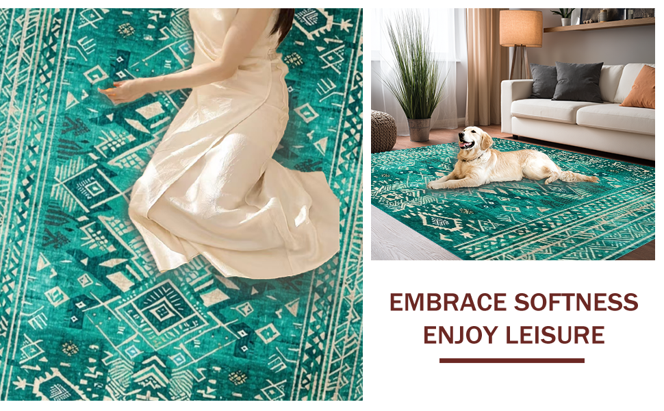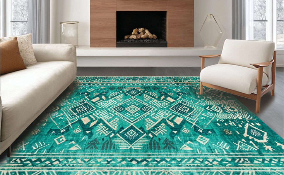 Ultra Soft Area Rug, Non Slip, Stain Resistant, Washable Area Rugs for Living Room, Bedroom, Lively Teal Abstract Composition(Green) Overview: