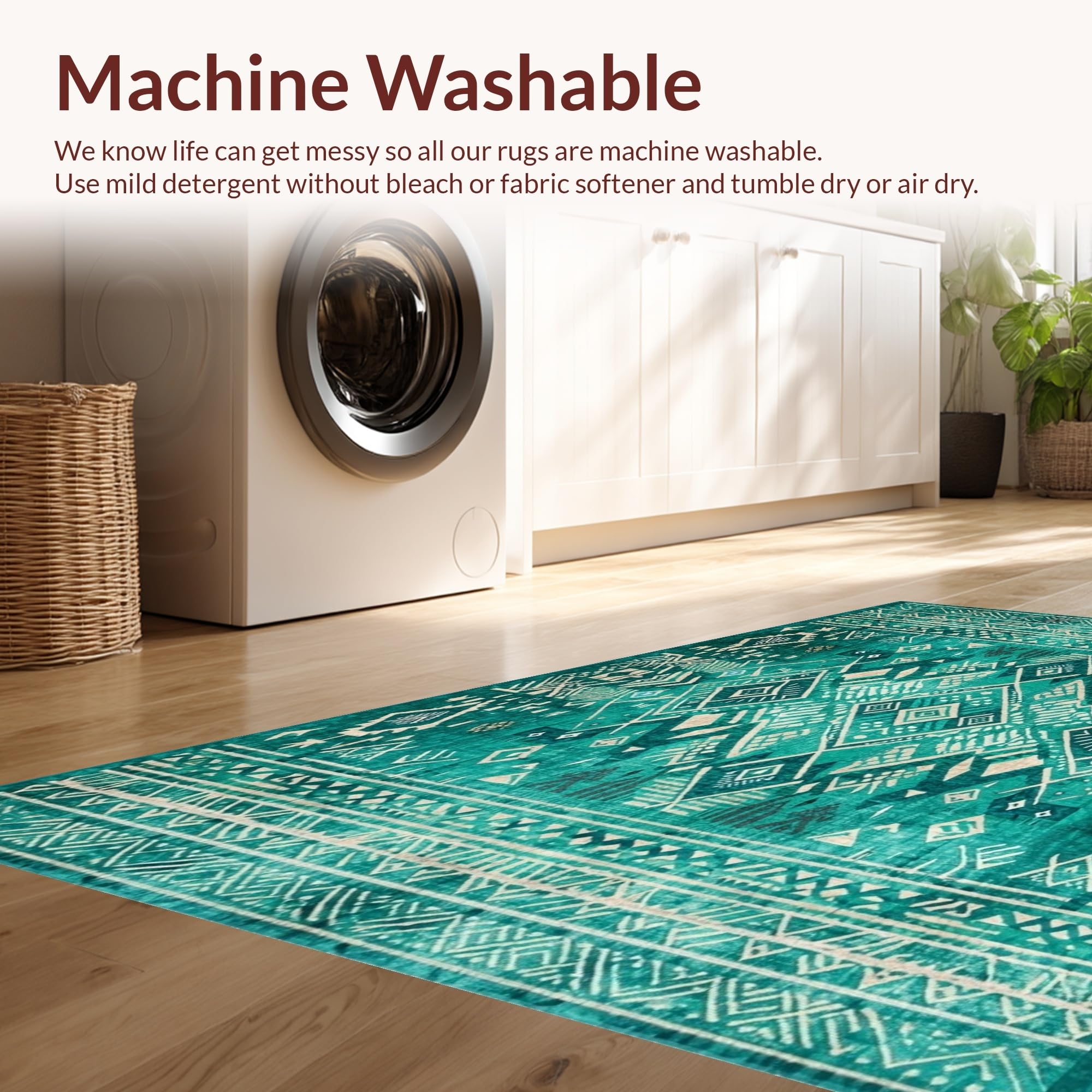 - Machine Washable: Our rugs can be easily thrown in the wash machine.