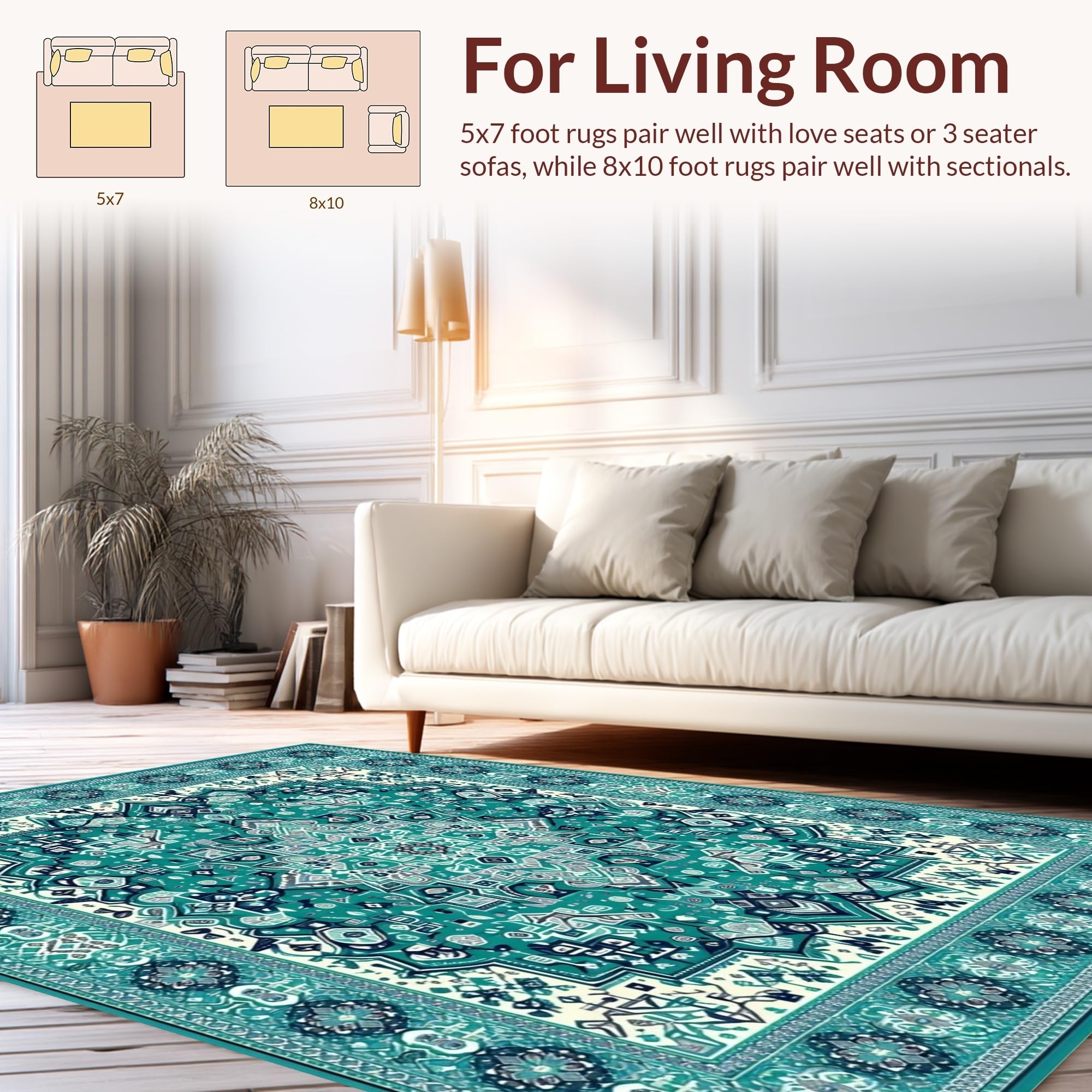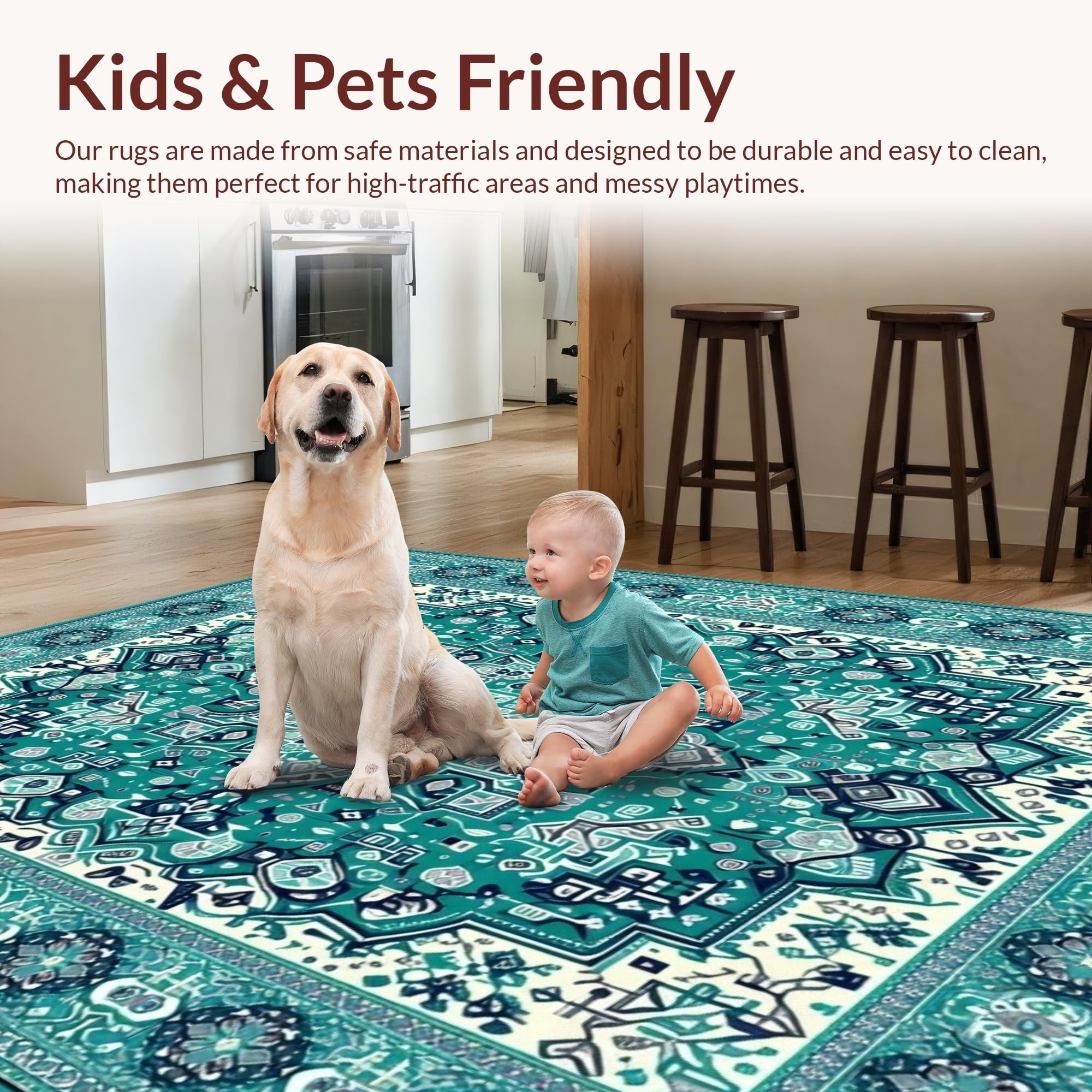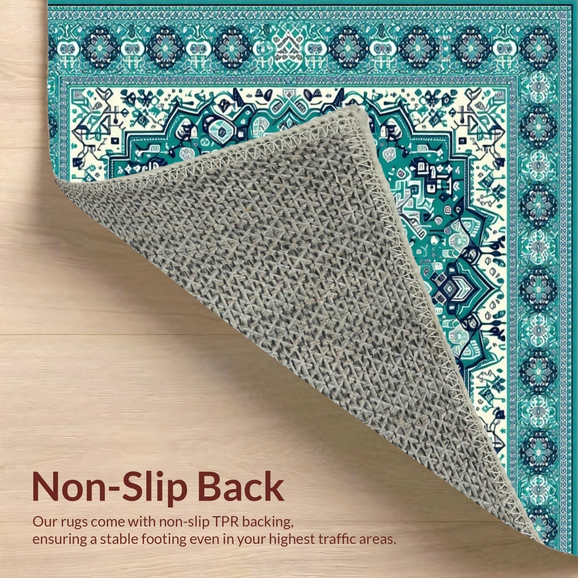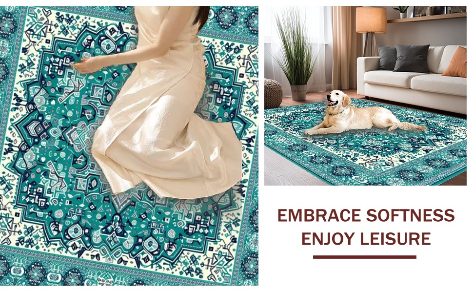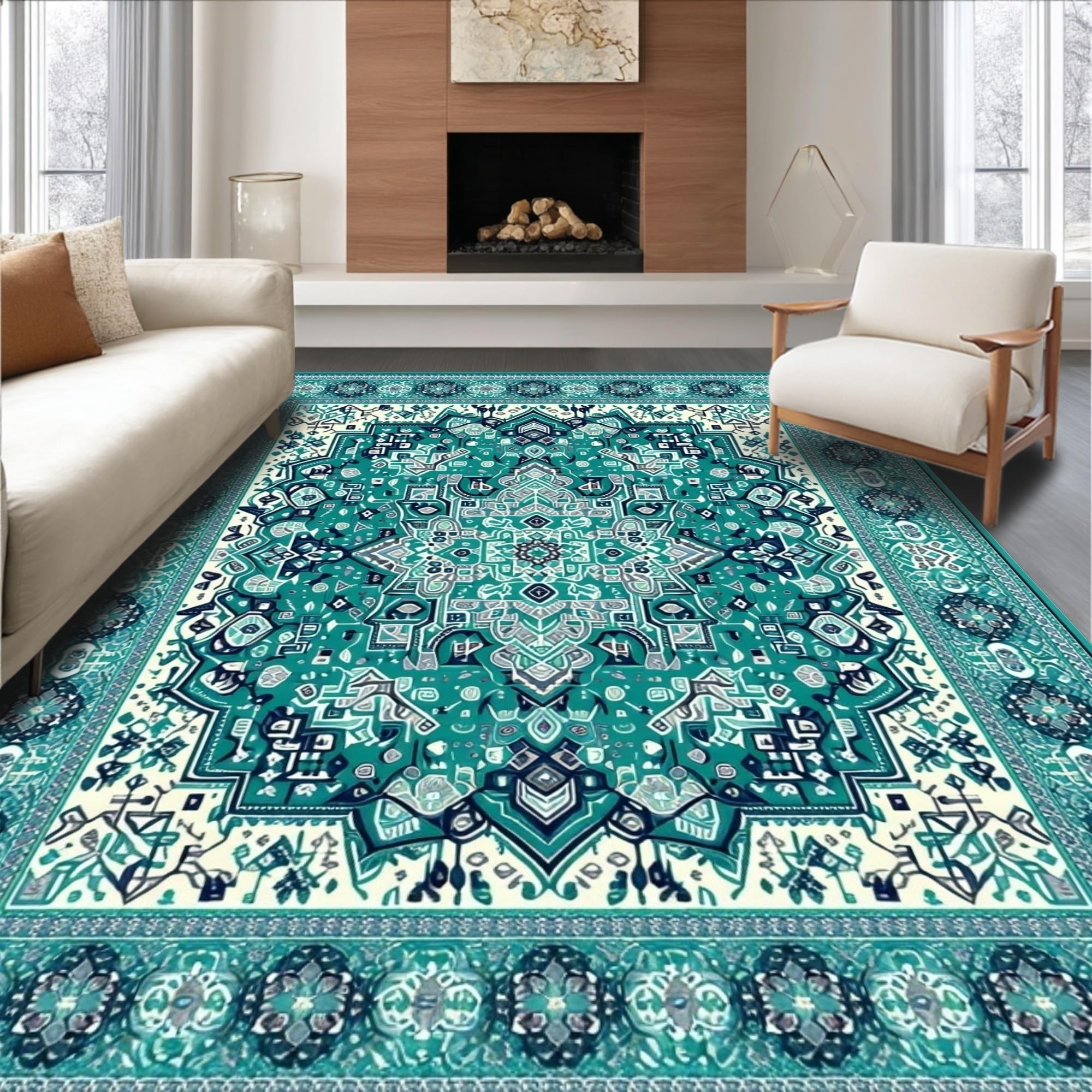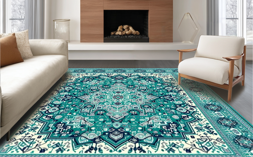 Ultra Soft Area Rug, Non Slip, Stain Resistant, Washable Area Rugs for Living Room, Bedroom, Lively Teal and White Mosaic Style(Blue) Overview: