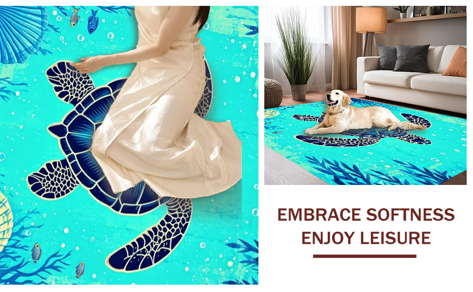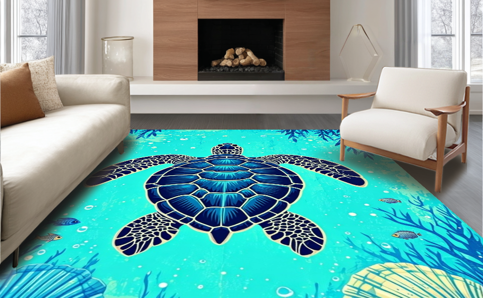 Ultra Soft Area Rug, Non Slip, Stain Resistant, Washable Area Rugs for Living Room, Bedroom, Lively Teal Lagoon Style(Blue) Overview: