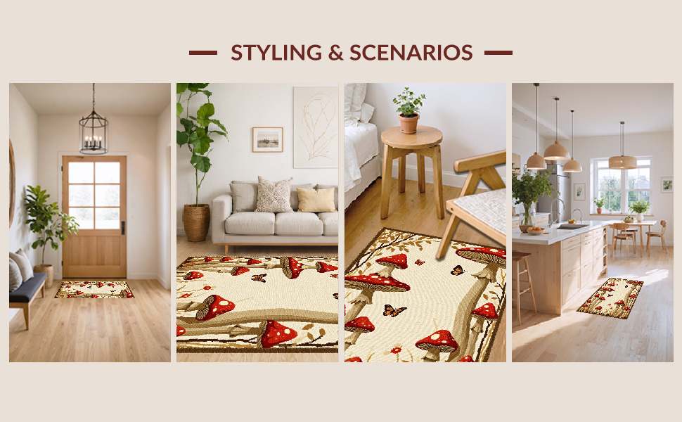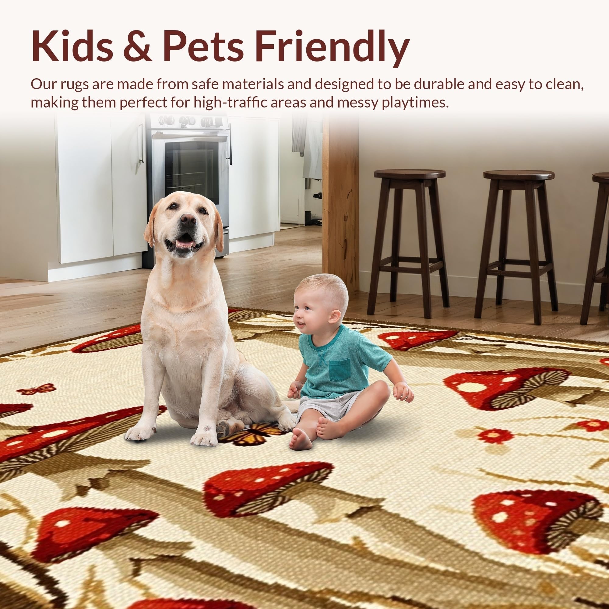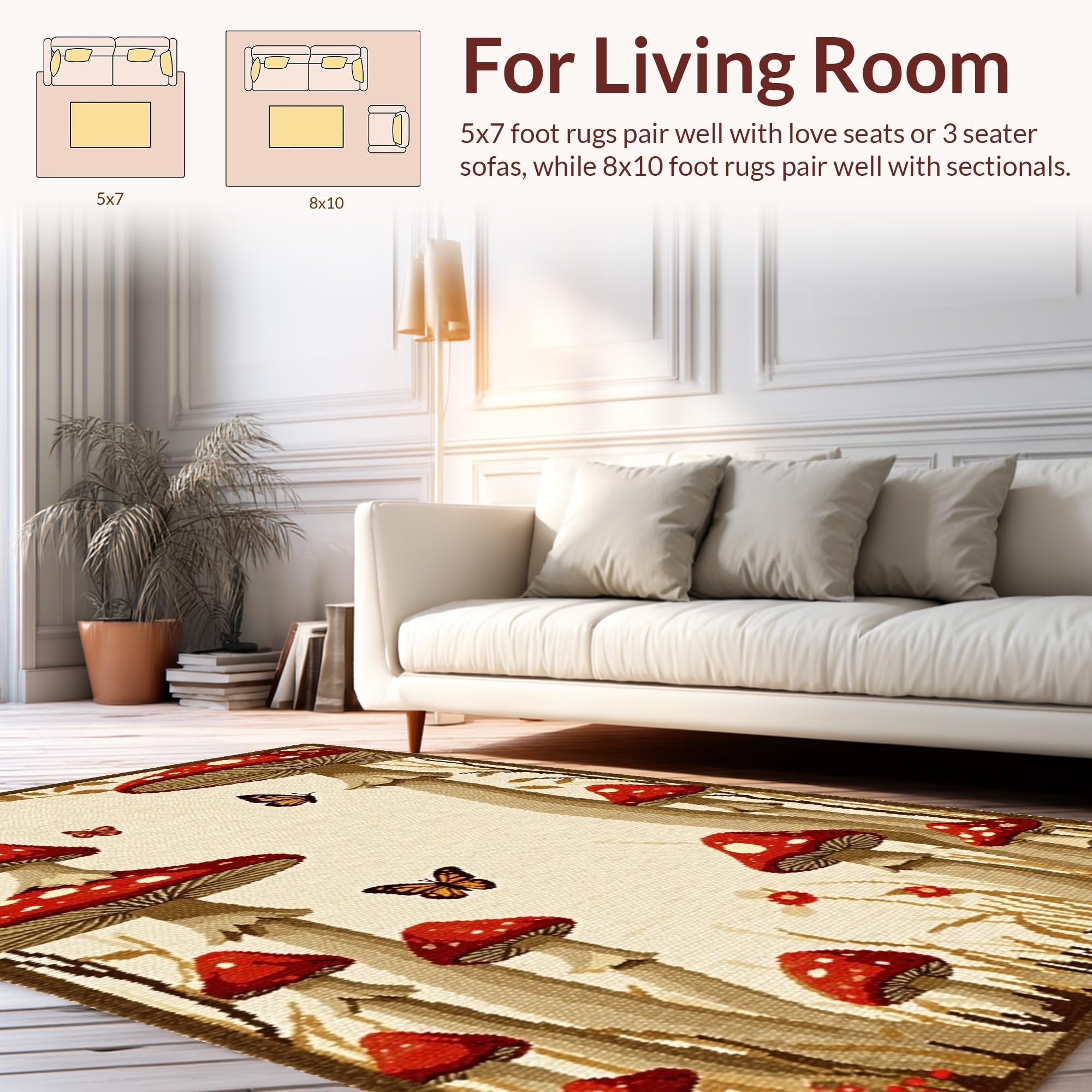 Ultra Soft Area Rug, Non Slip, Stain Resistant, Washable Area Rugs for Living Room, Bedroom, Lively Textured Botanical Arrangement(Beige) Overview: