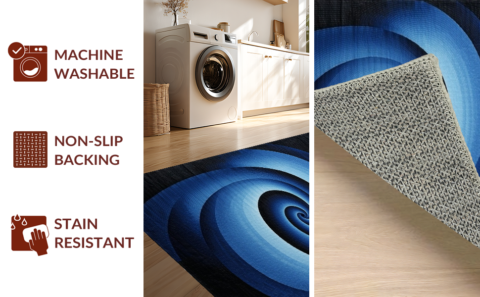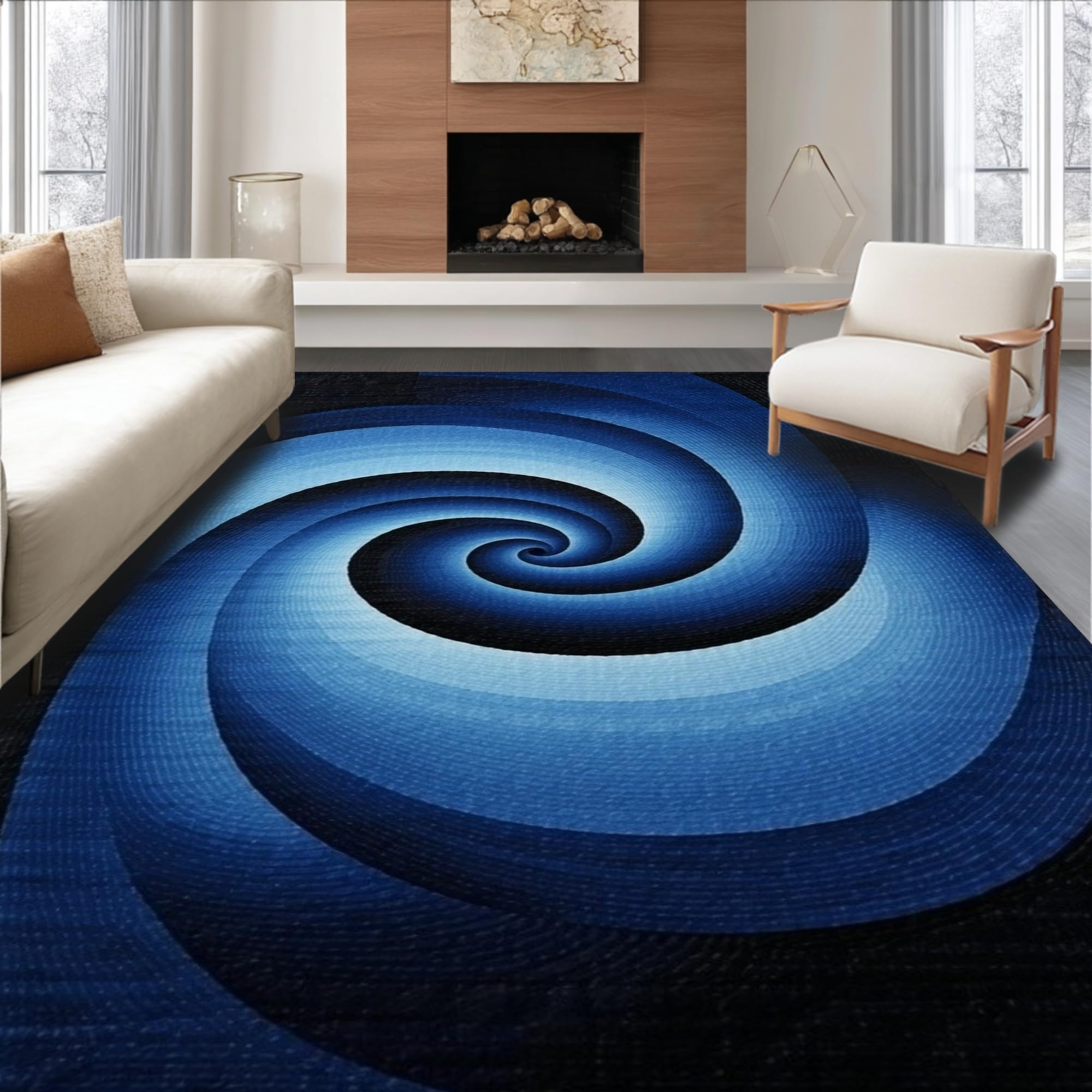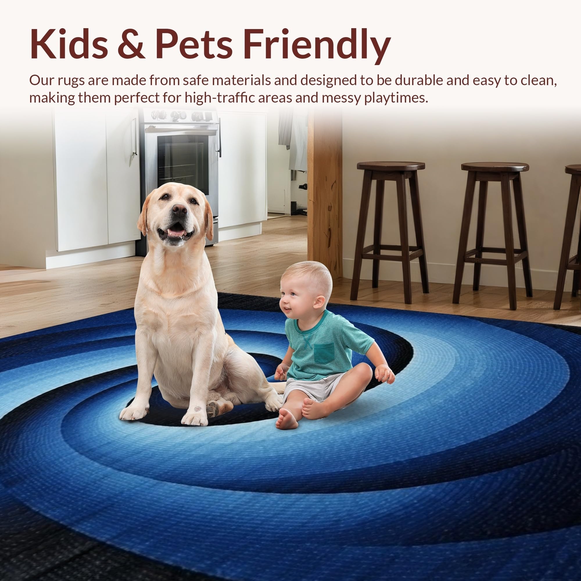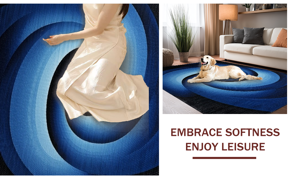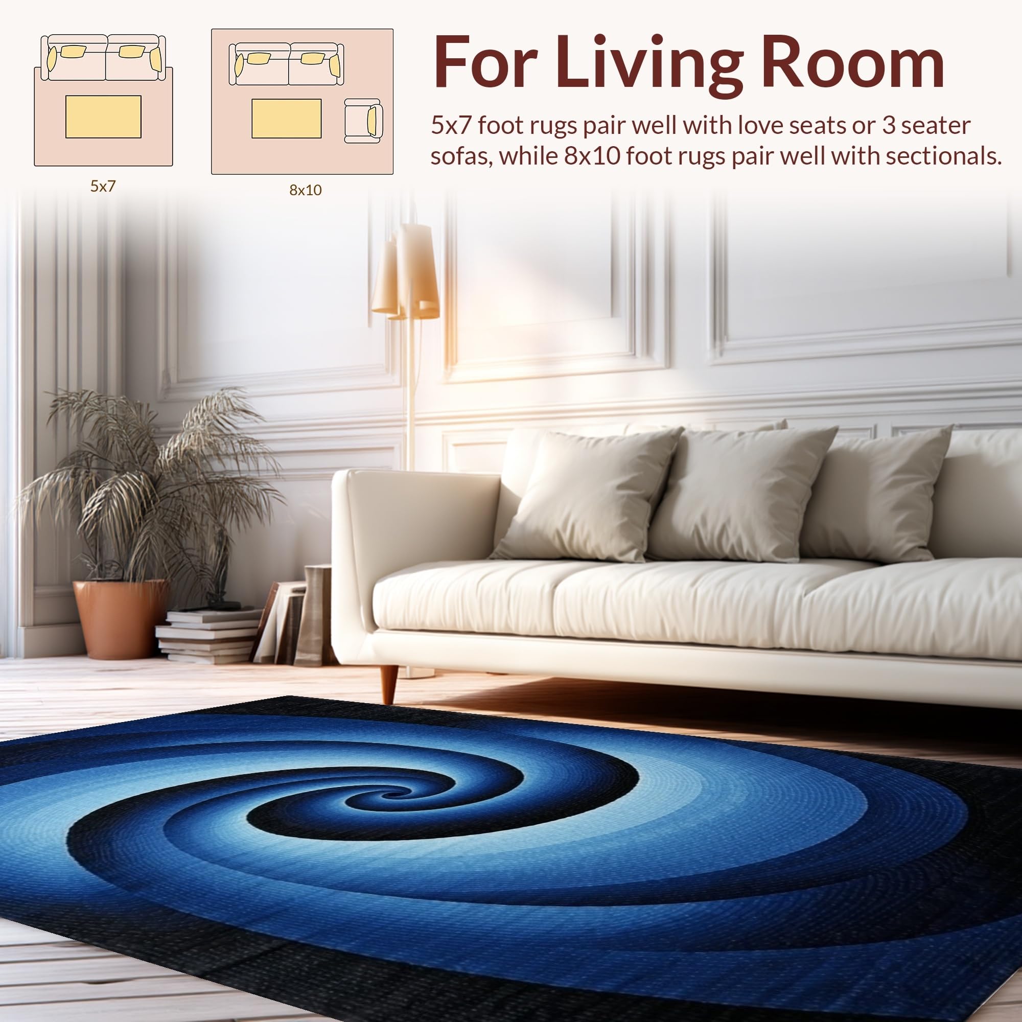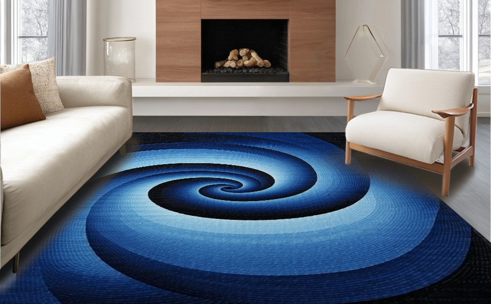 Ultra Soft Area Rug, Non Slip, Stain Resistant, Washable Area Rugs for Living Room, Bedroom, Lively Textured Optical Movement(Blue) Overview: