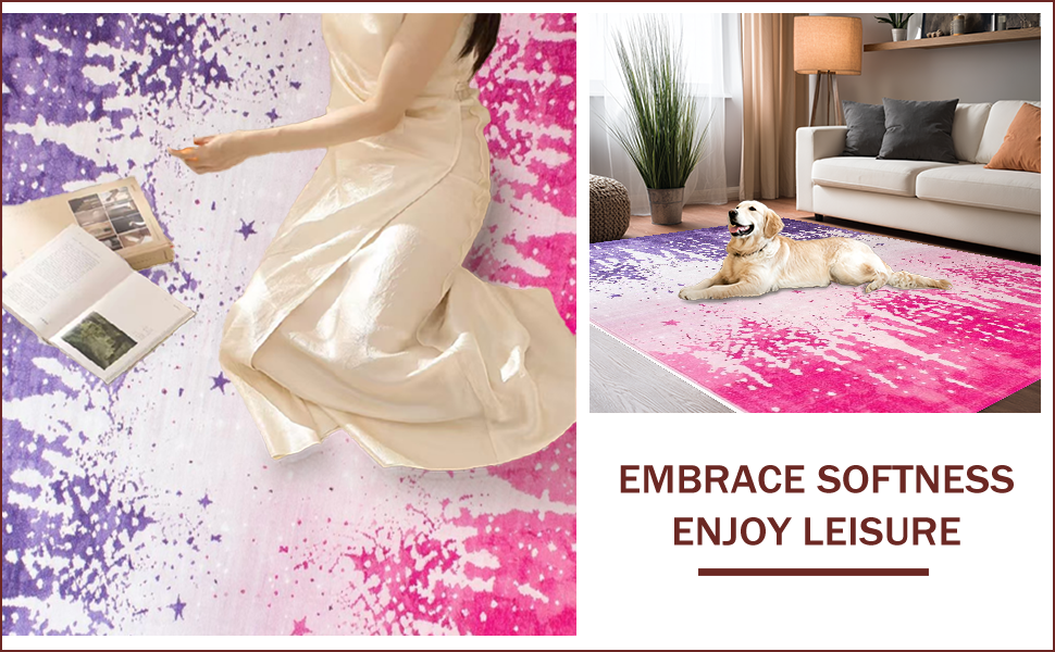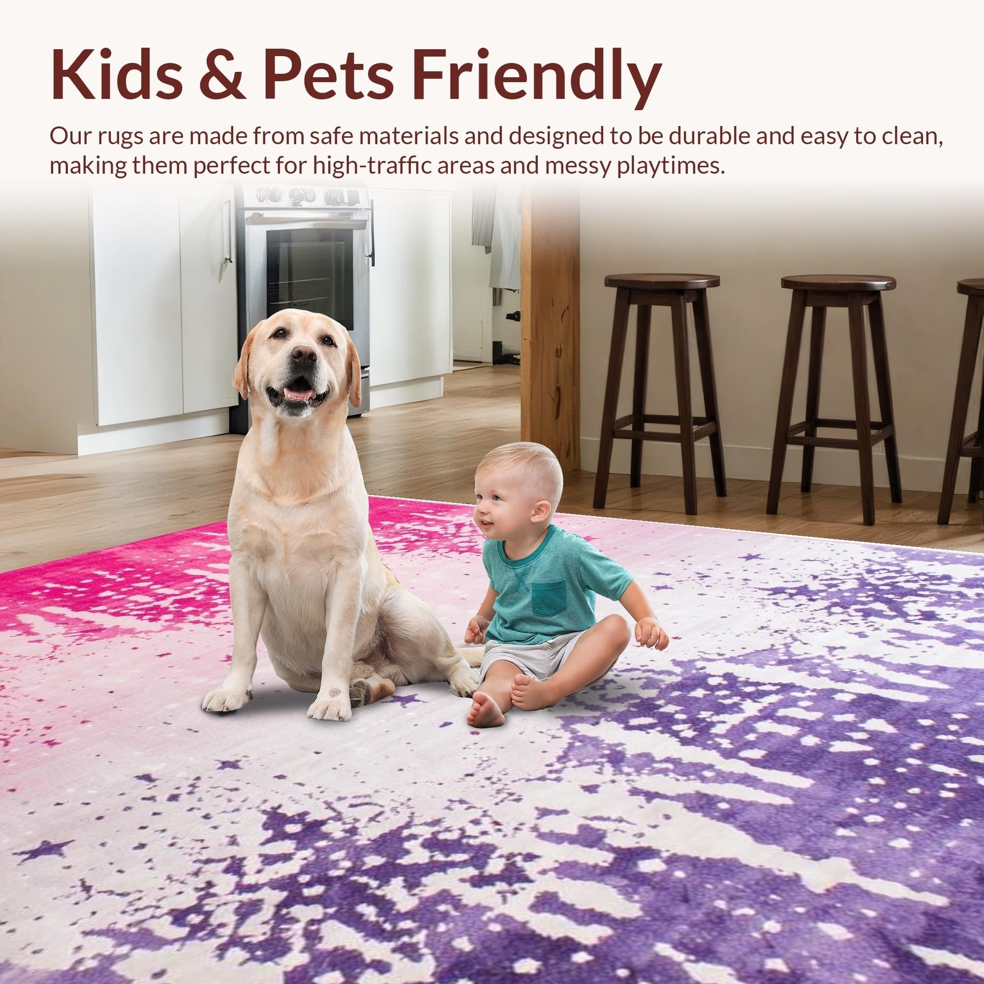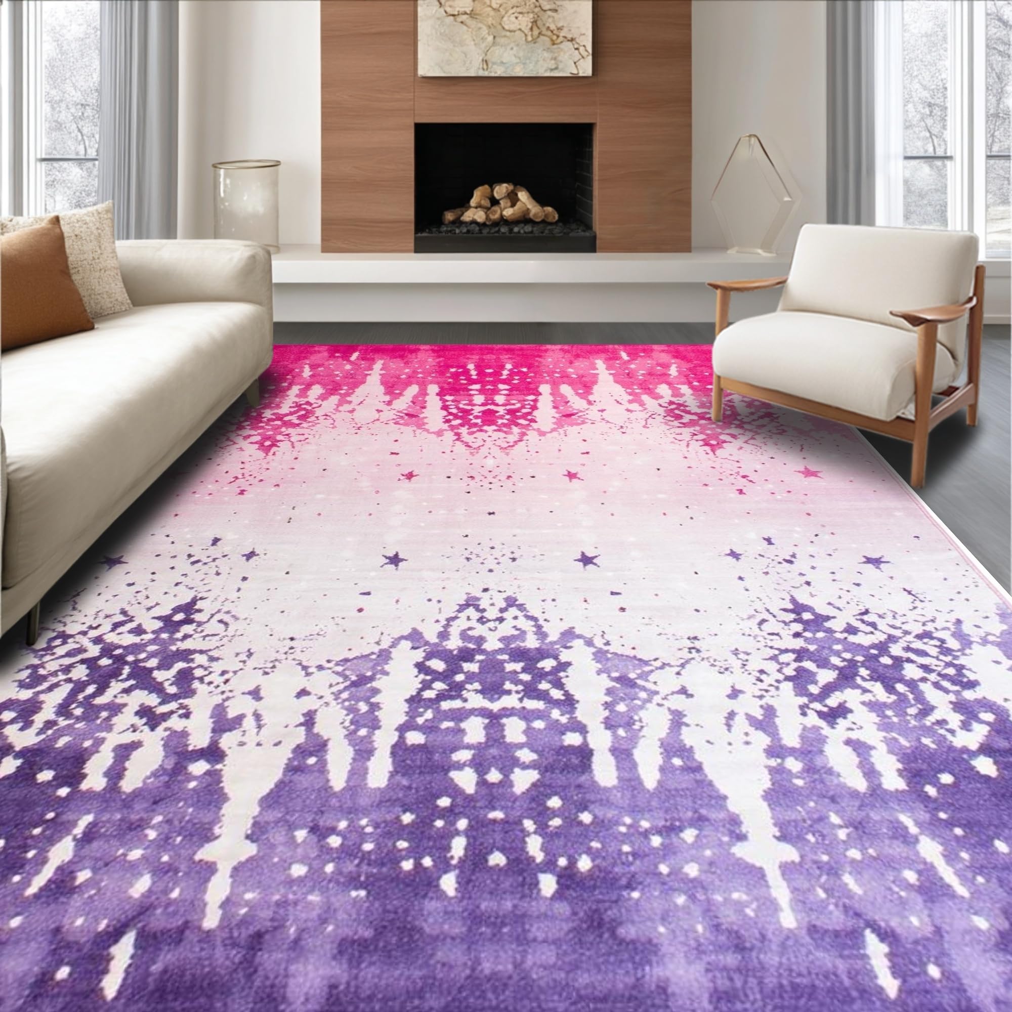 Ultra Soft Area Rug, Non Slip, Stain Resistant, Washable Area Rugs for Living Room, Bedroom, Lively Tie-Dye Dreamscape Effect(Pink) Overview: