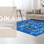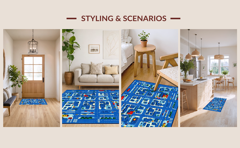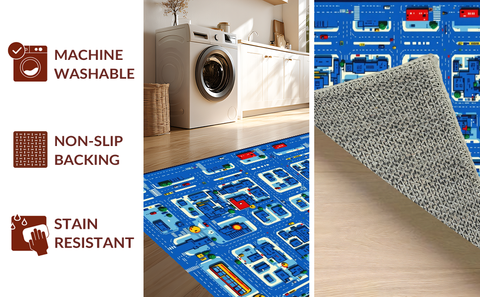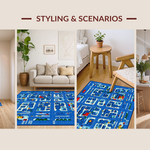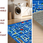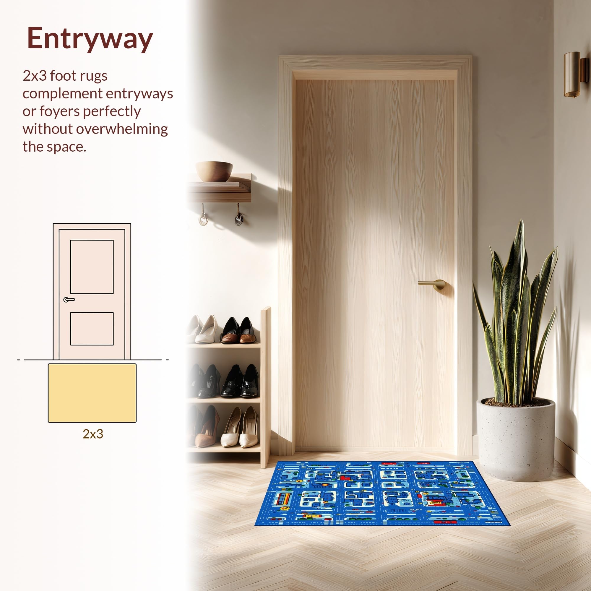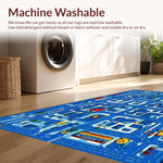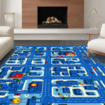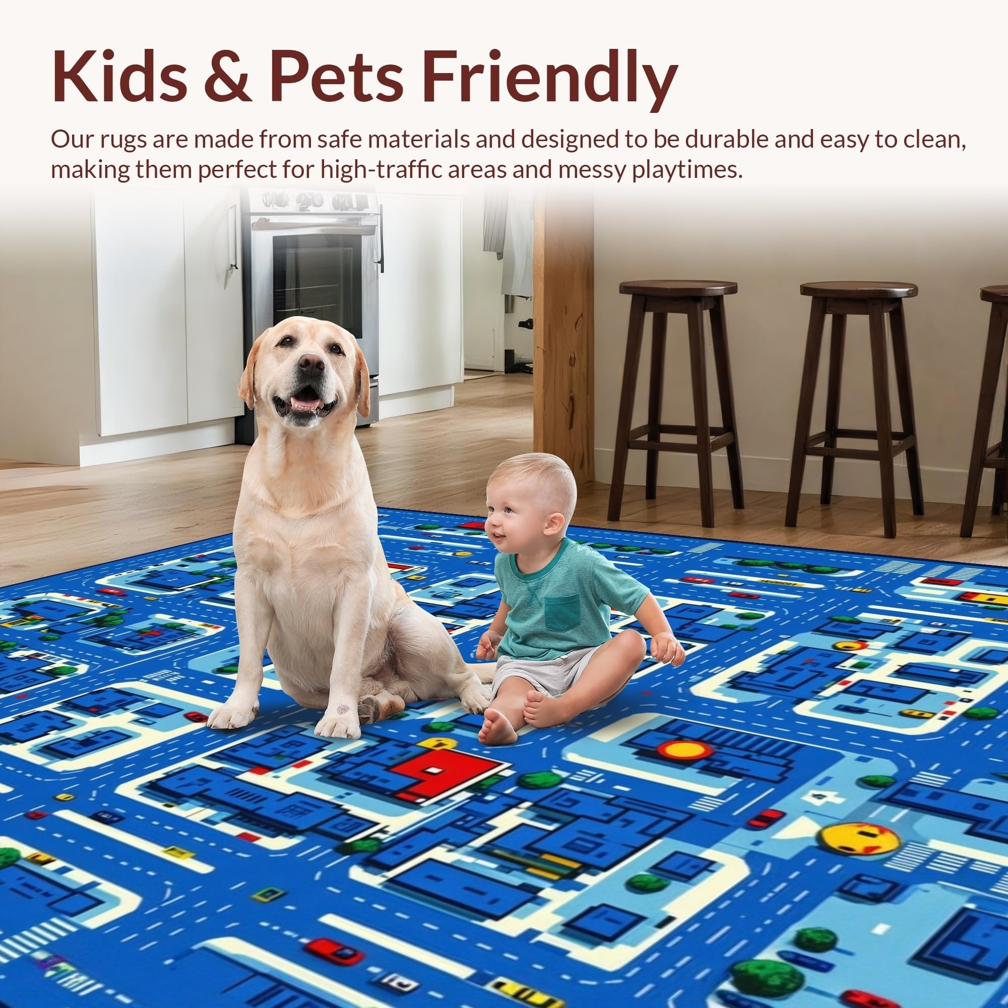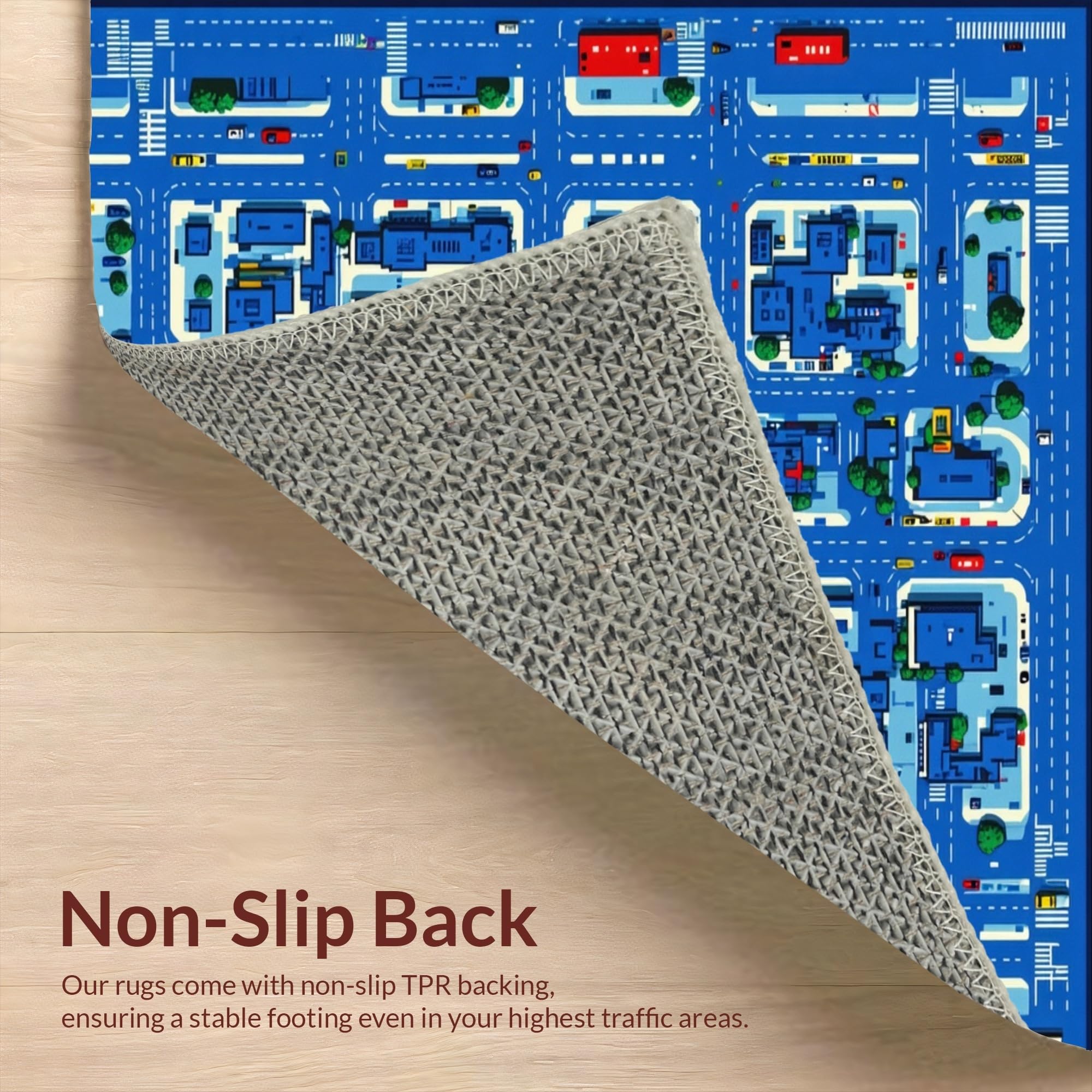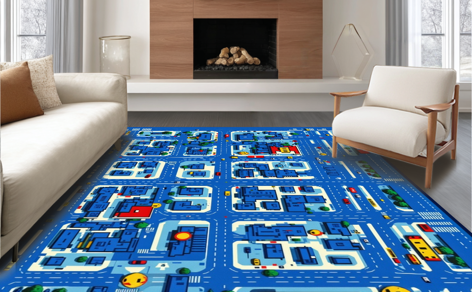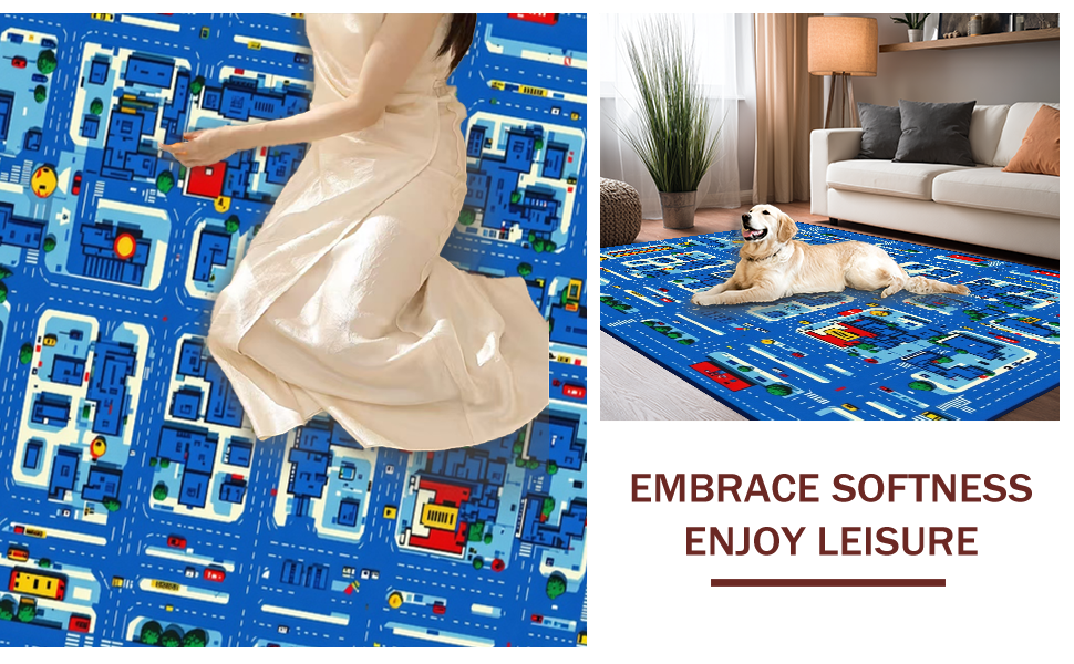 Ultra Soft Area Rug, Non Slip, Stain Resistant, Washable Area Rugs for Living Room, Bedroom, Lively Traffic and Building Illustration(Blue) Overview: