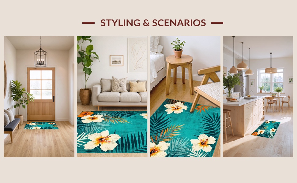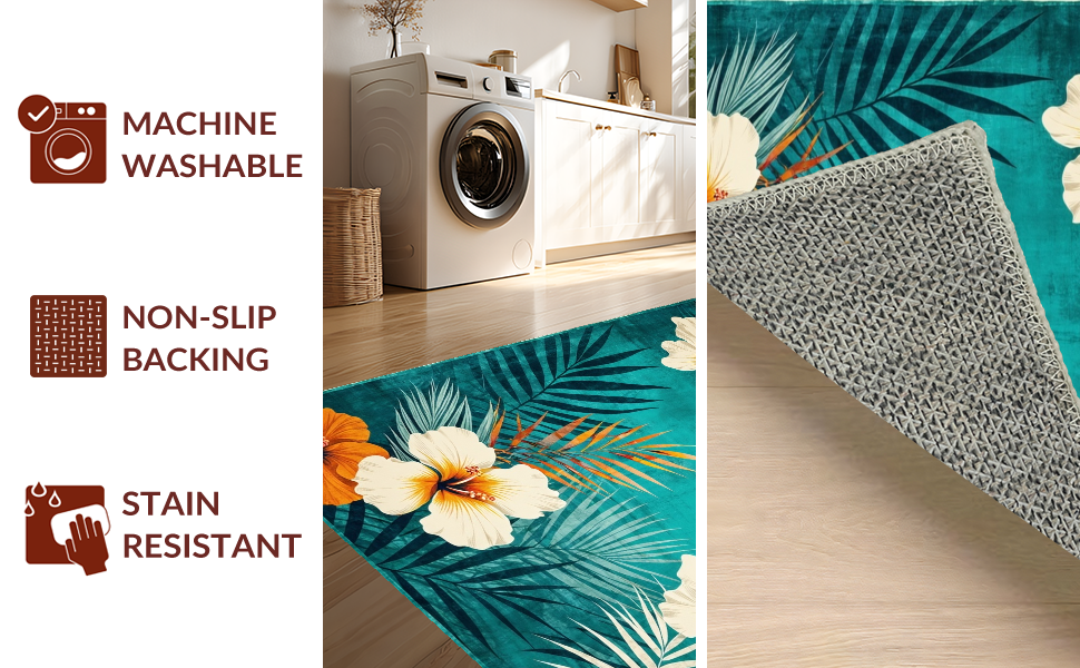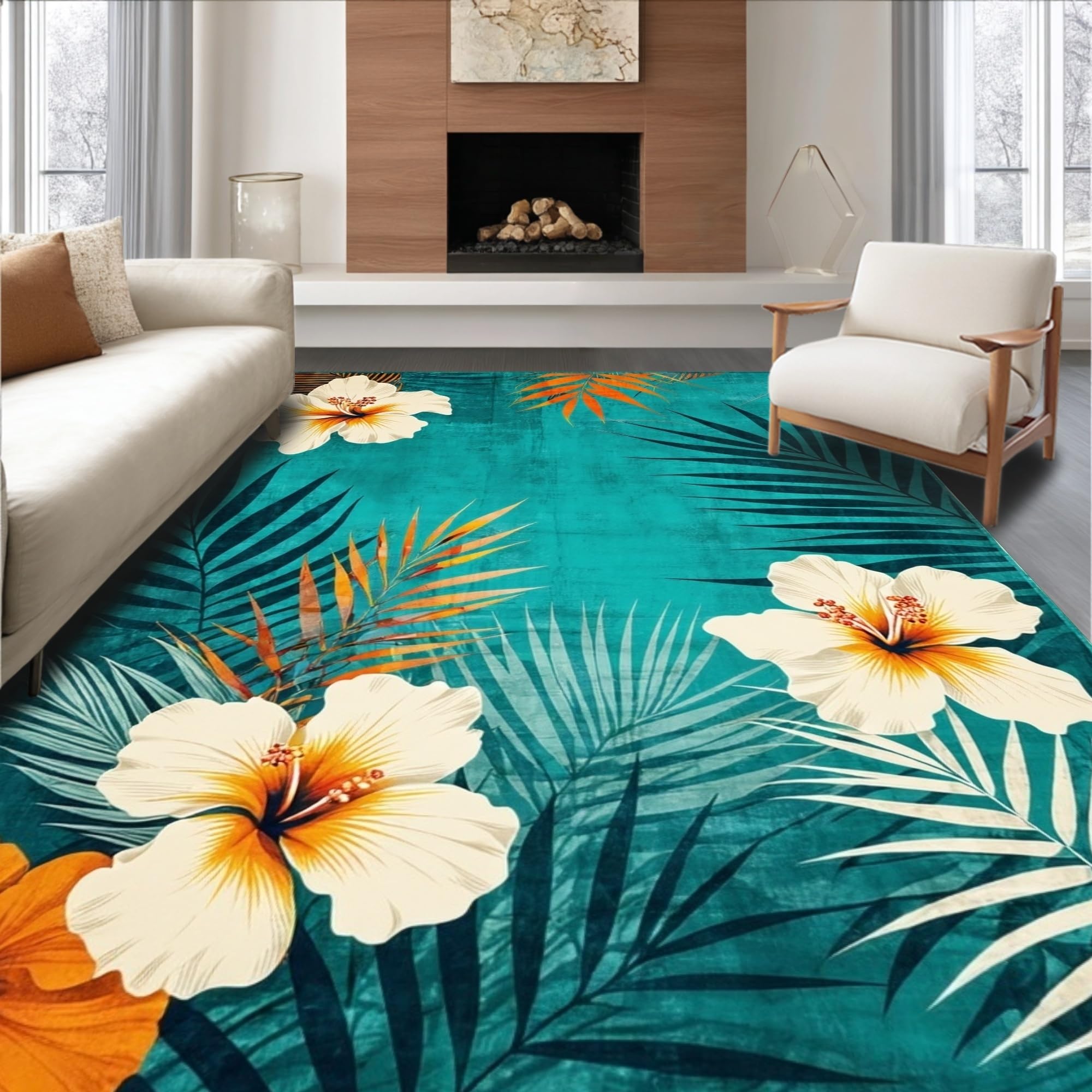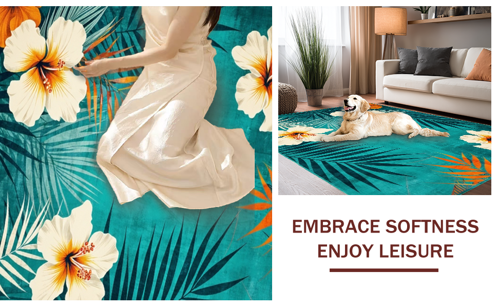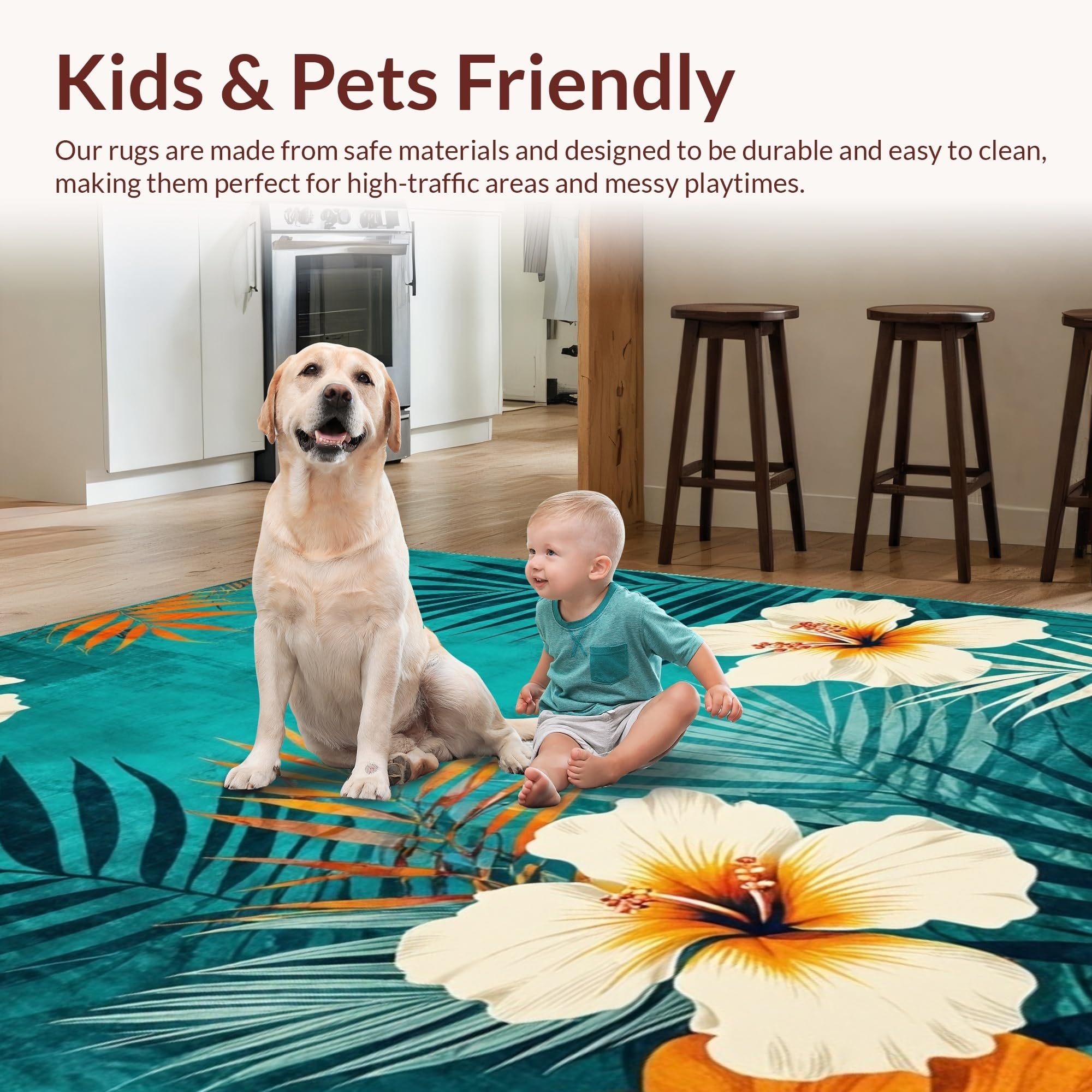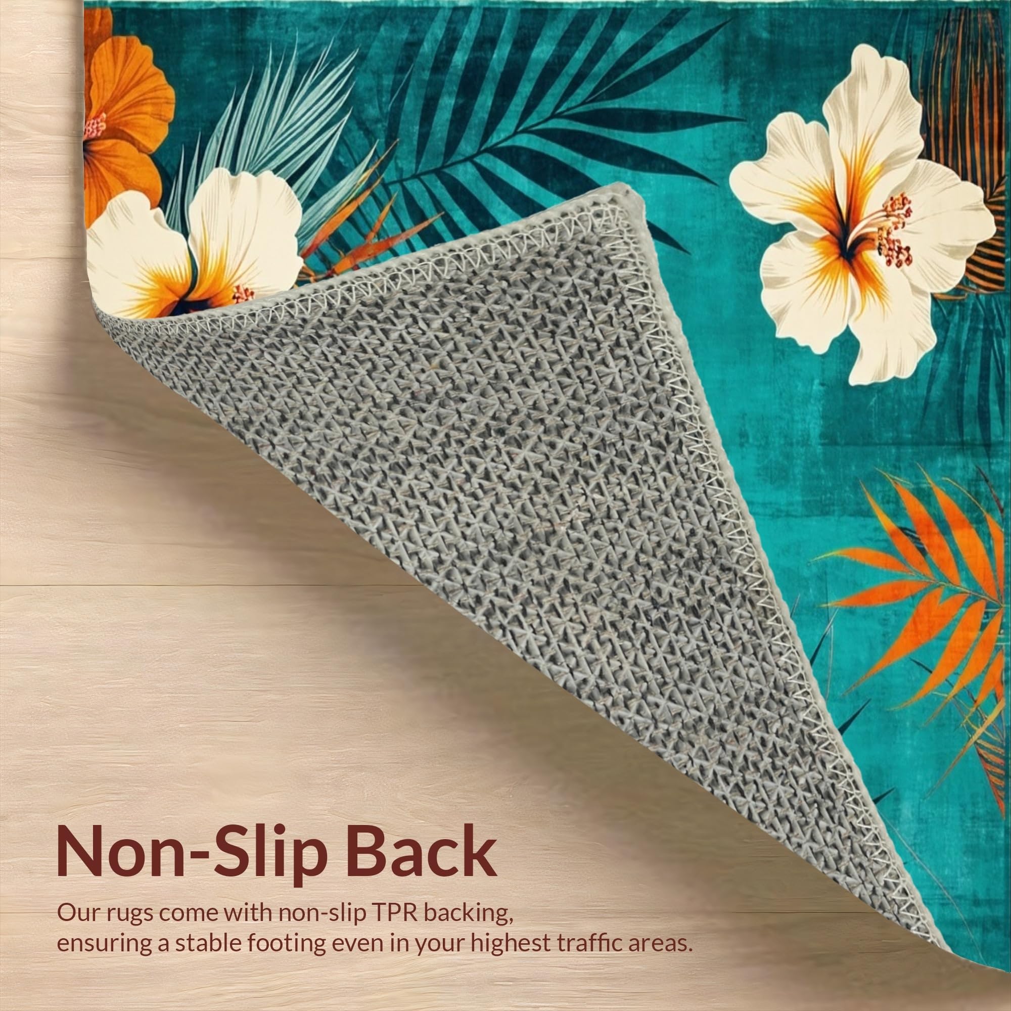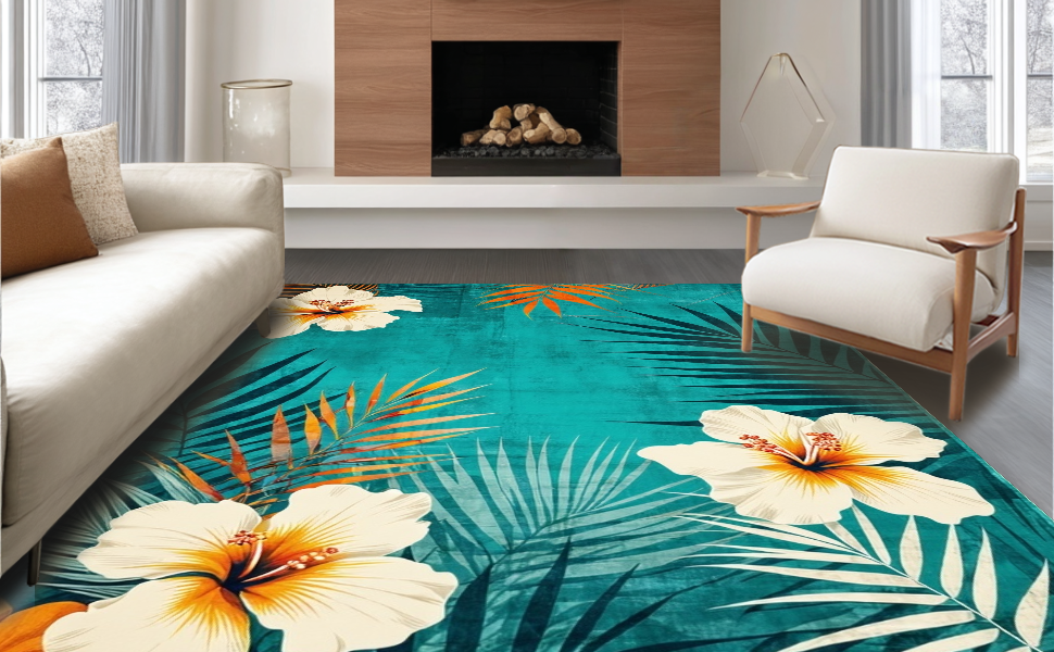 Ultra Soft Area Rug, Non Slip, Stain Resistant, Washable Area Rugs for Living Room, Bedroom, Lively Tropical Teal Design(Green) Overview:
