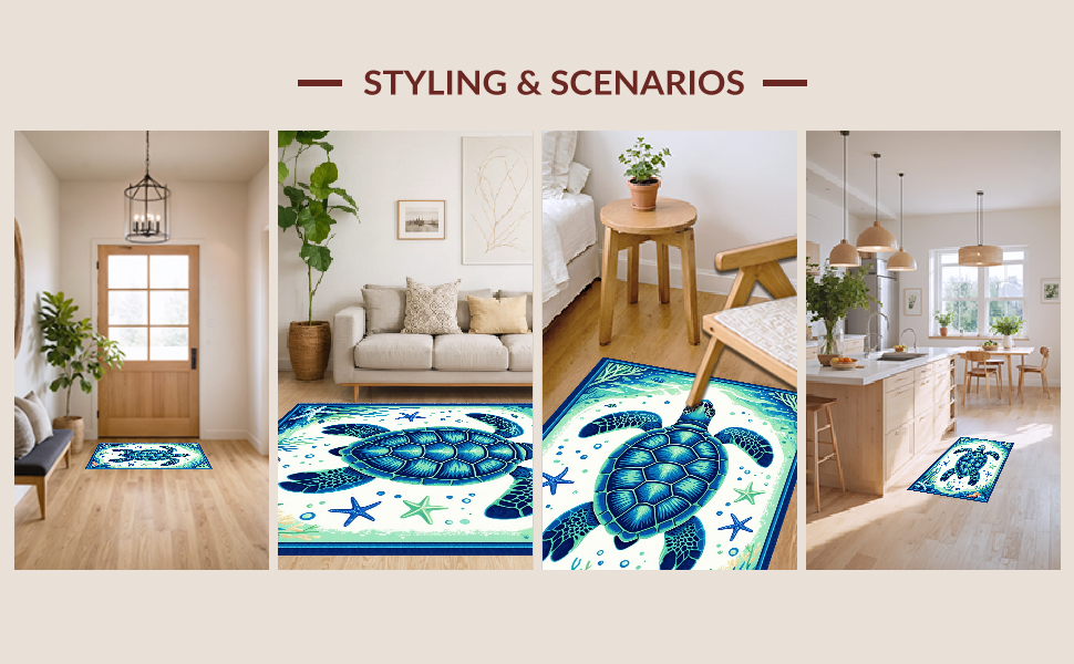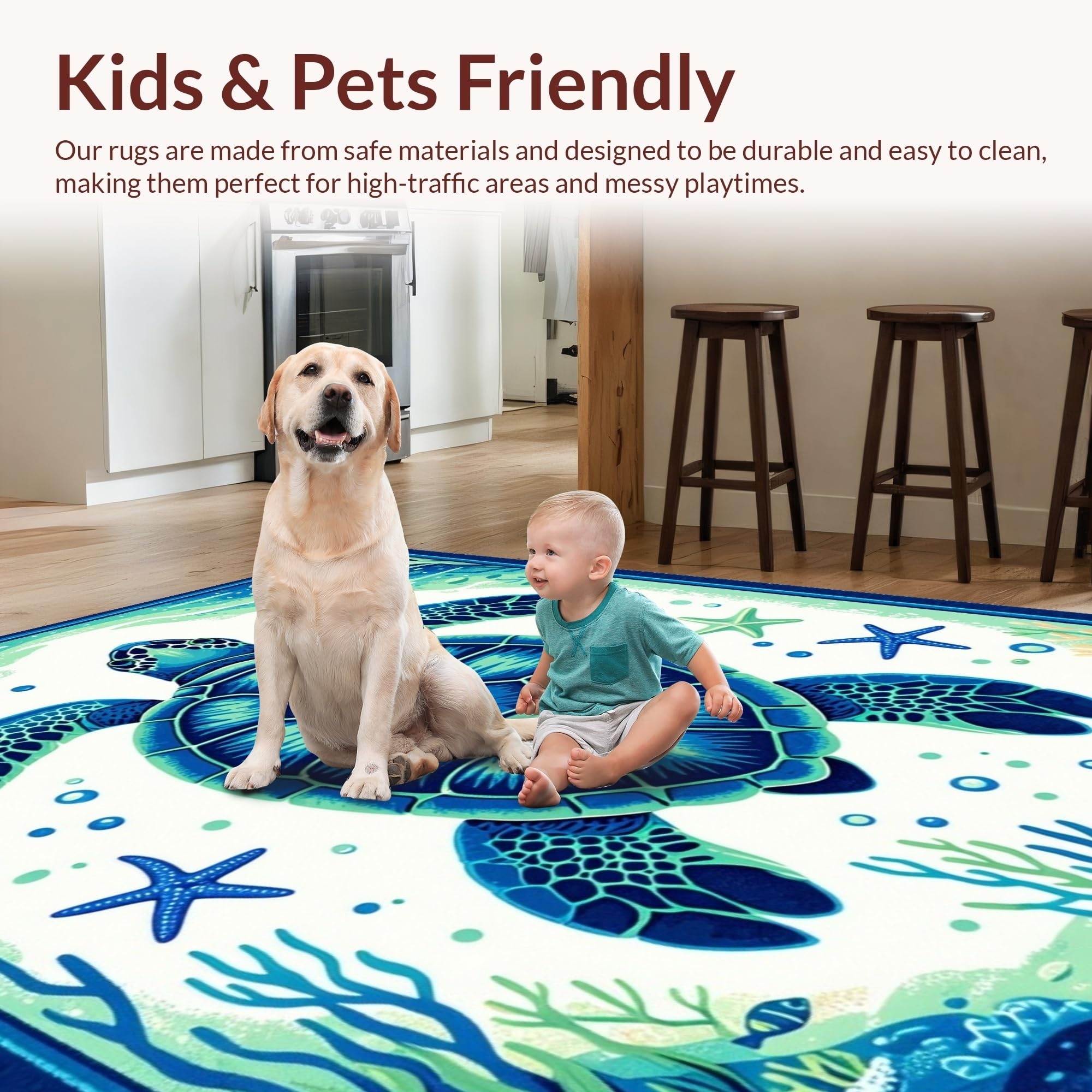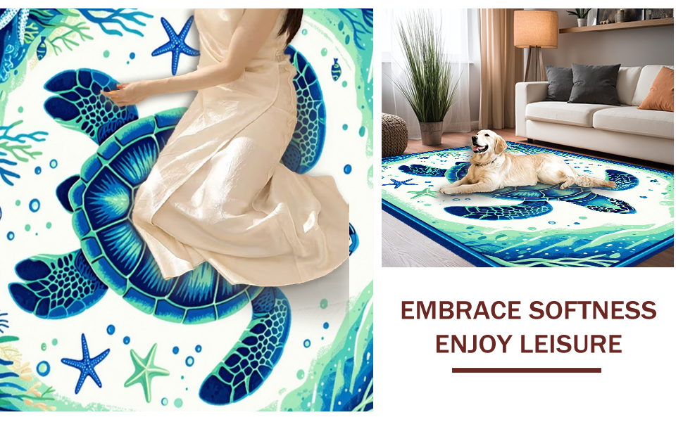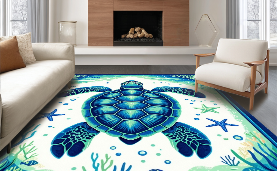 Ultra Soft Area Rug, Non Slip, Stain Resistant, Washable Area Rugs for Living Room, Bedroom, Lively Tropical Wave Aesthetic(Blue) Overview: