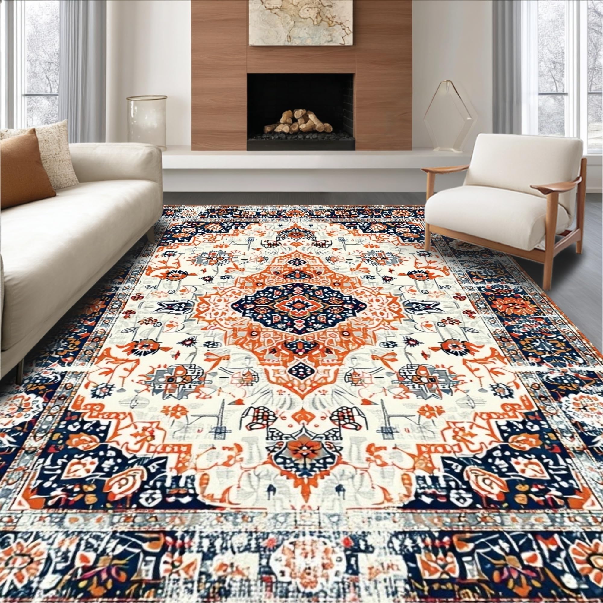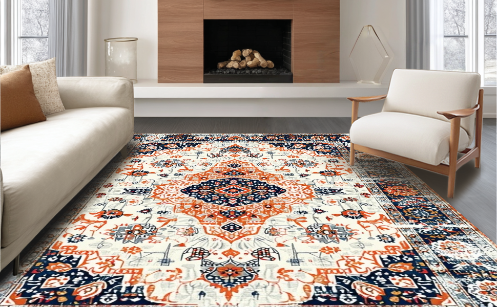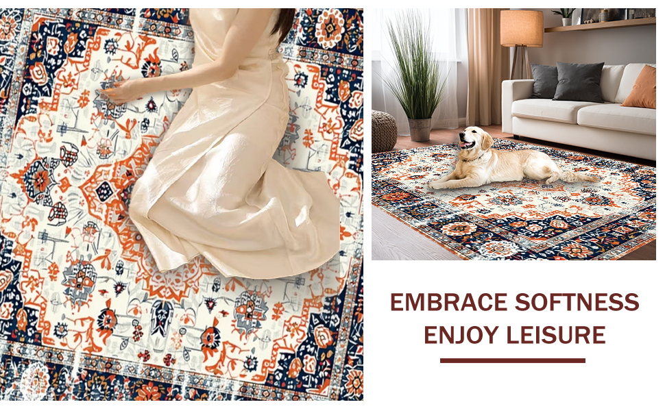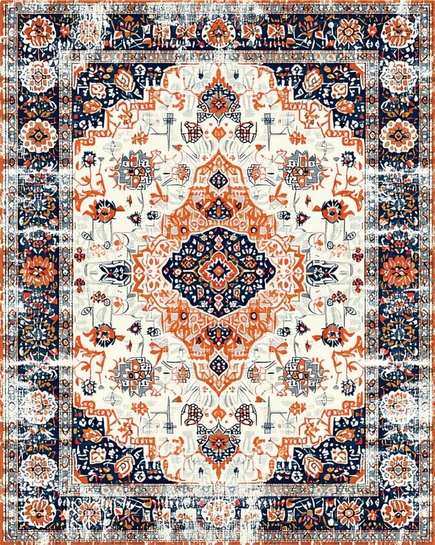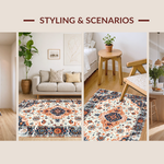 Ultra Soft Area Rug, Non Slip, Stain Resistant, Washable Area Rugs for Living Room, Bedroom, Lively Vintage-Inspired Floral Motif(White) Overview: