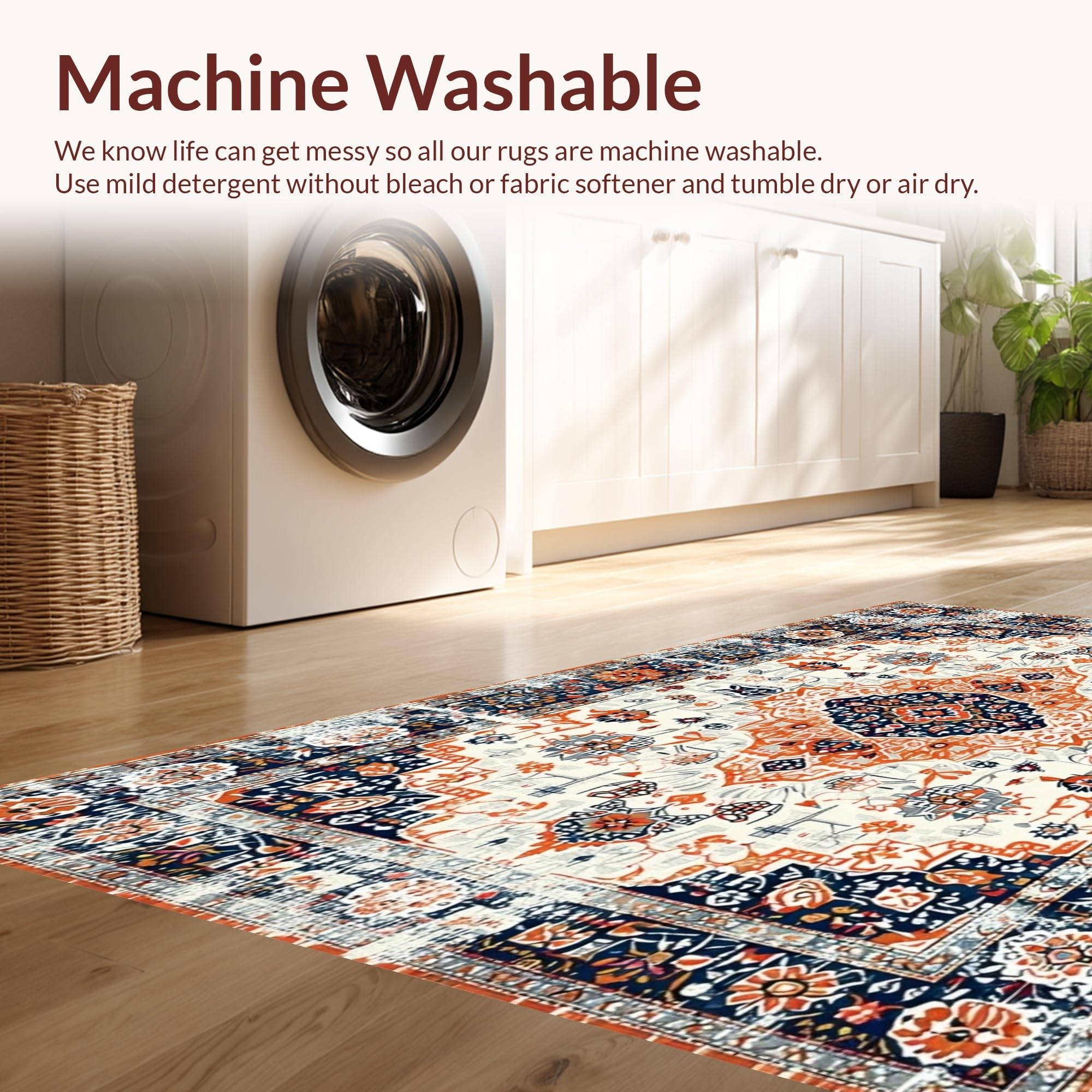 - Machine Washable: Our rugs can be easily thrown in the wash machine.