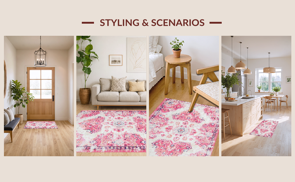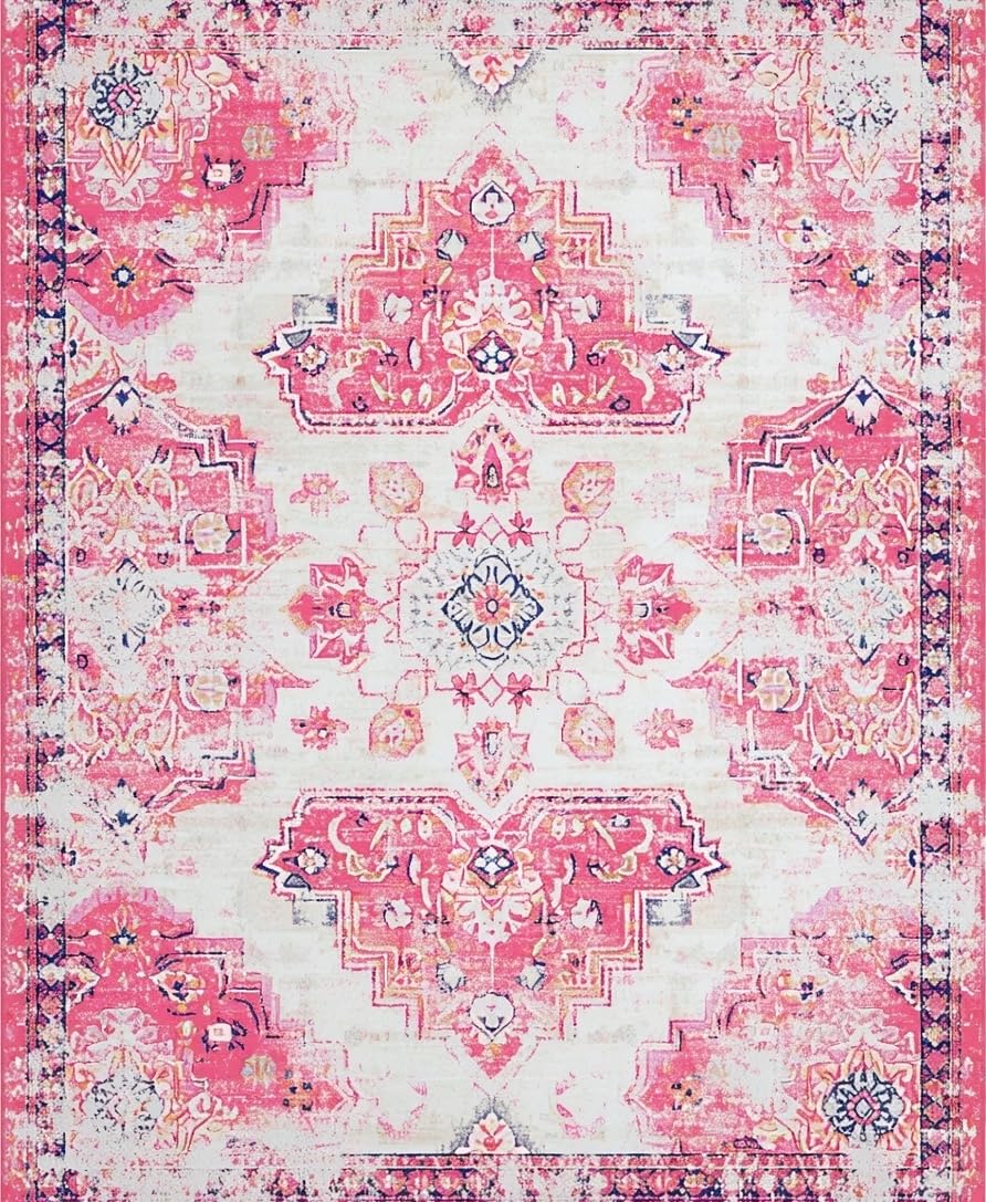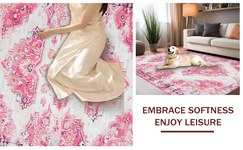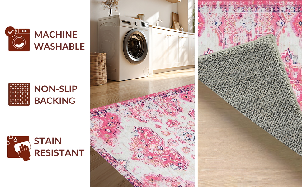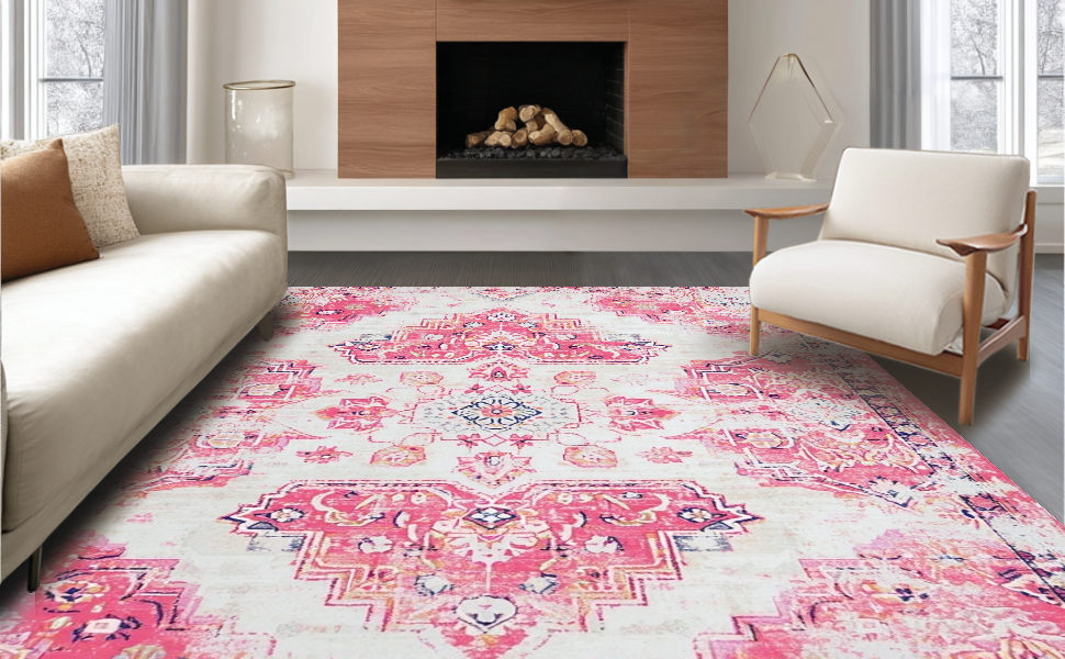 Ultra Soft Area Rug, Non Slip, Stain Resistant, Washable Area Rugs for Living Room, Bedroom, Lively Vintage Trellis Aesthetic(Pink) Overview: