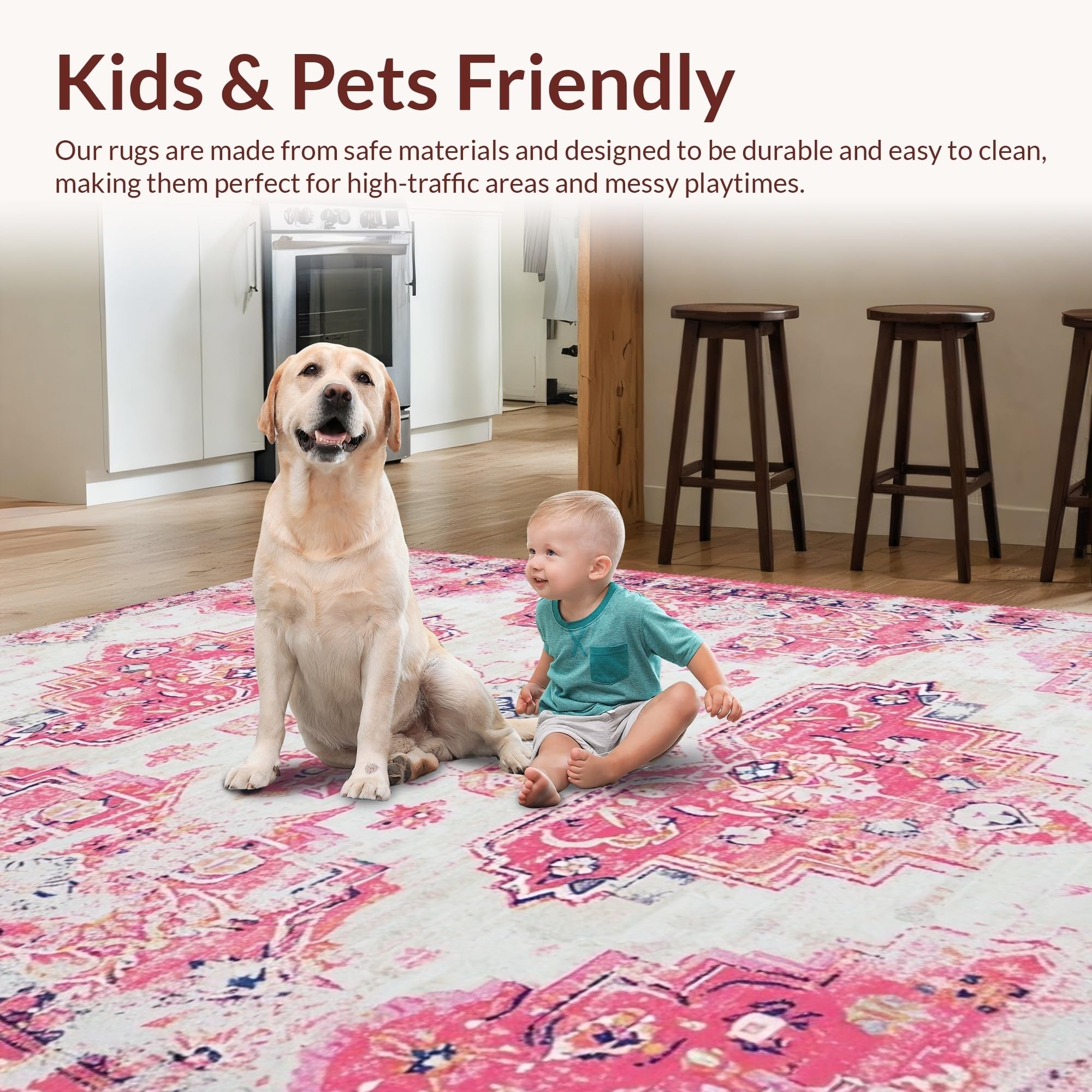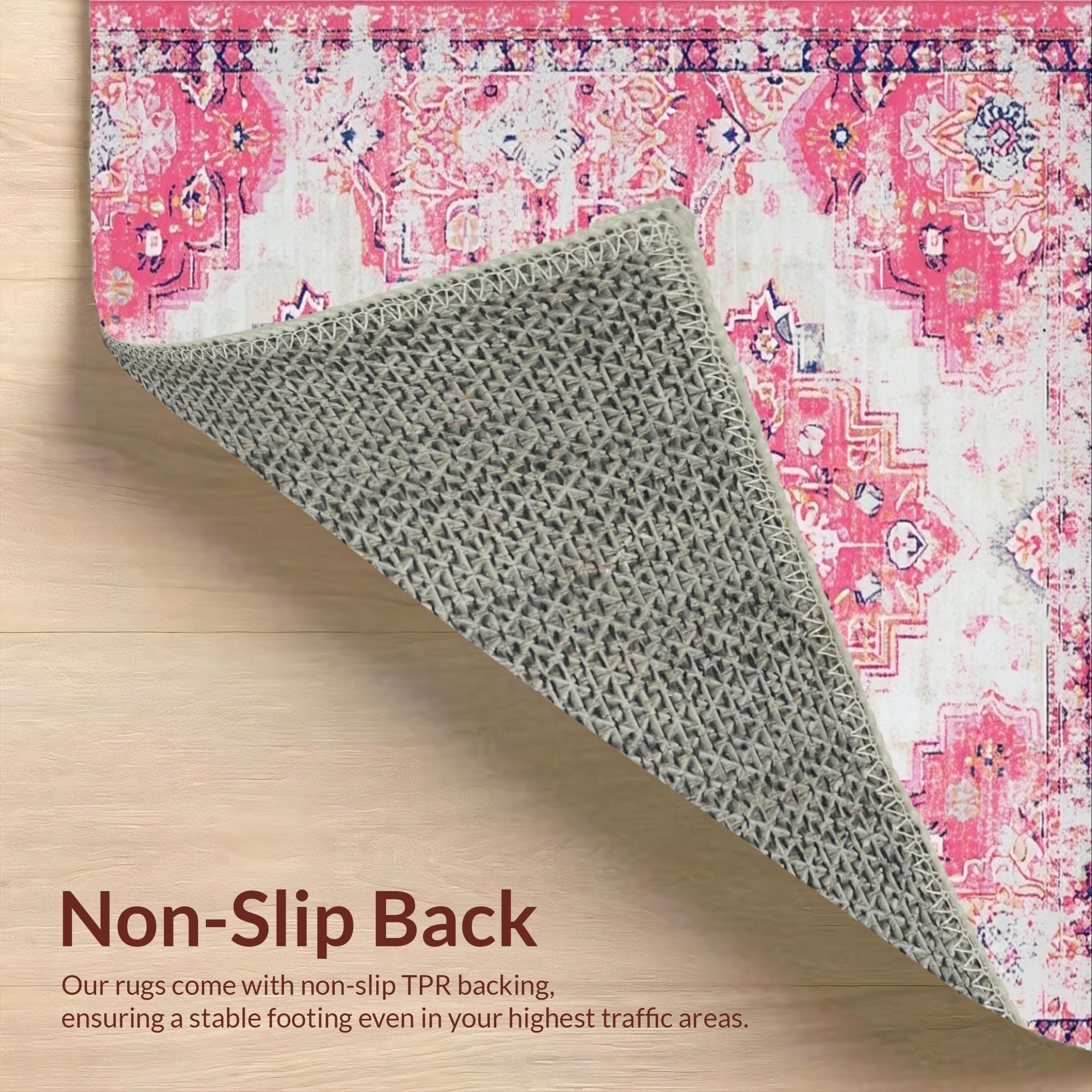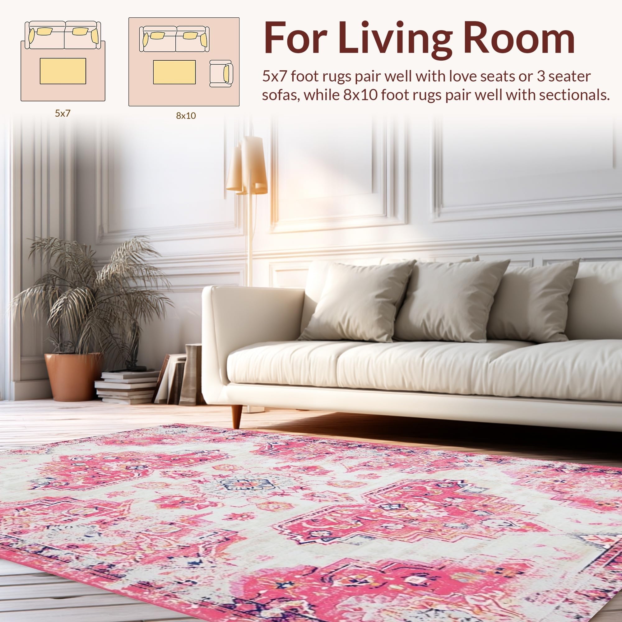 Ultra Soft Area Rug, Non Slip, Stain Resistant, Washable Area Rugs for Living Room, Bedroom, Lively Vintage Trellis Aesthetic(Pink) Overview: