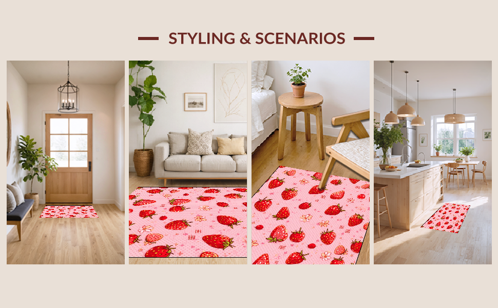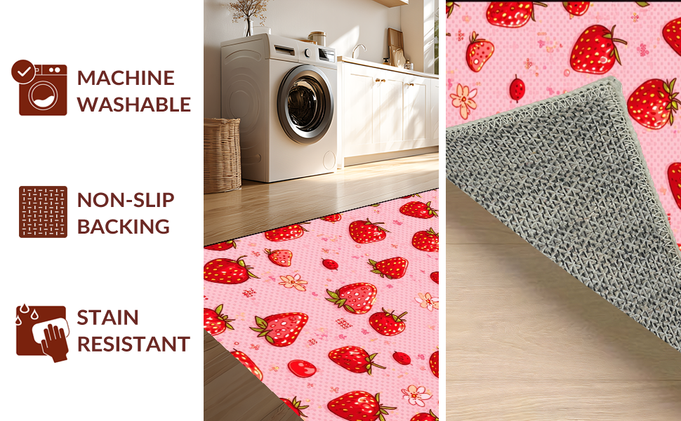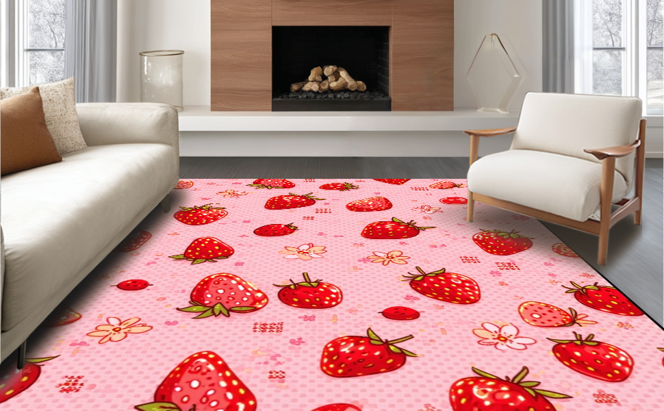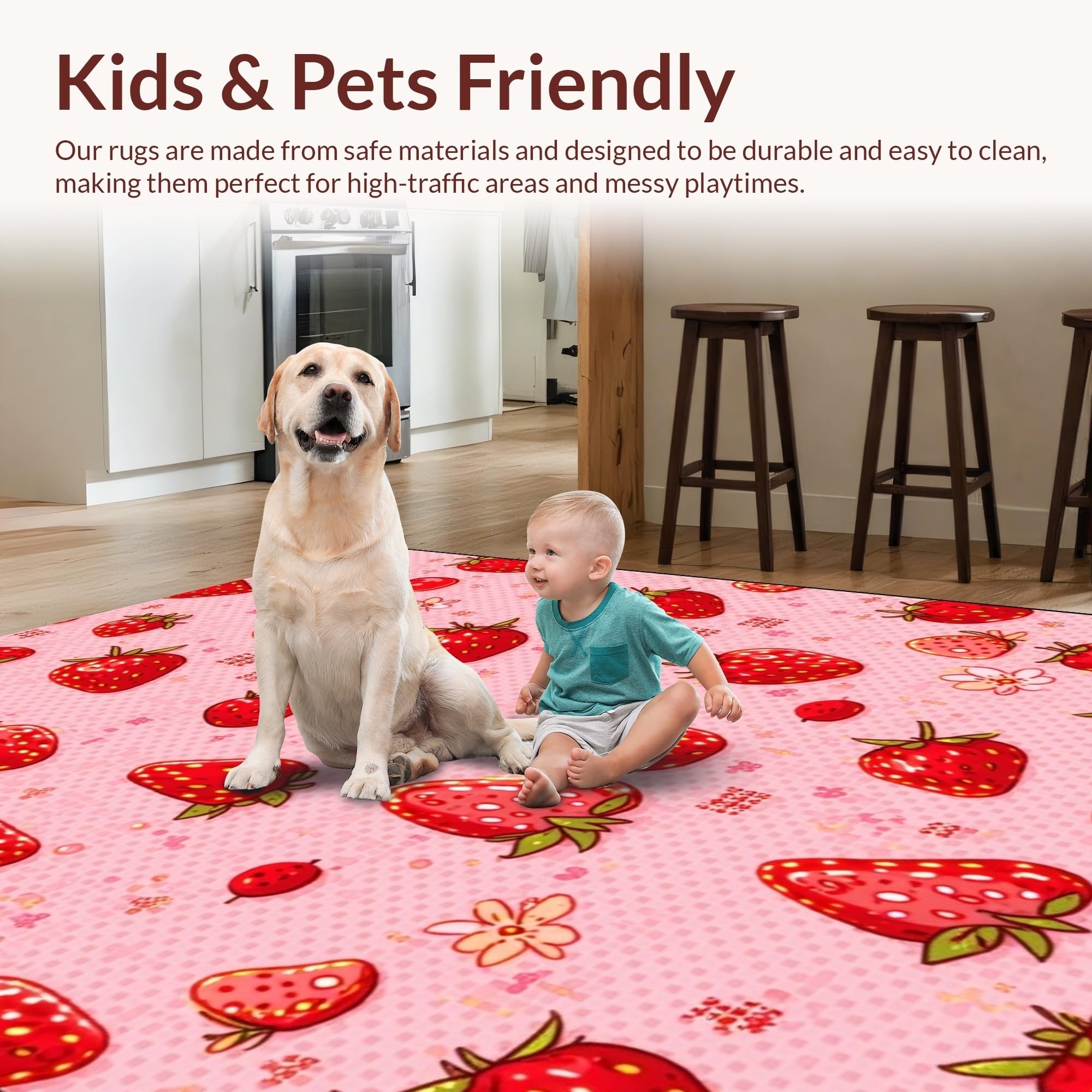 Ultra Soft Area Rug, Non Slip, Stain Resistant, Washable Area Rugs for Living Room, Bedroom, Lively Whimsical Botanical Print(Pink) Overview: