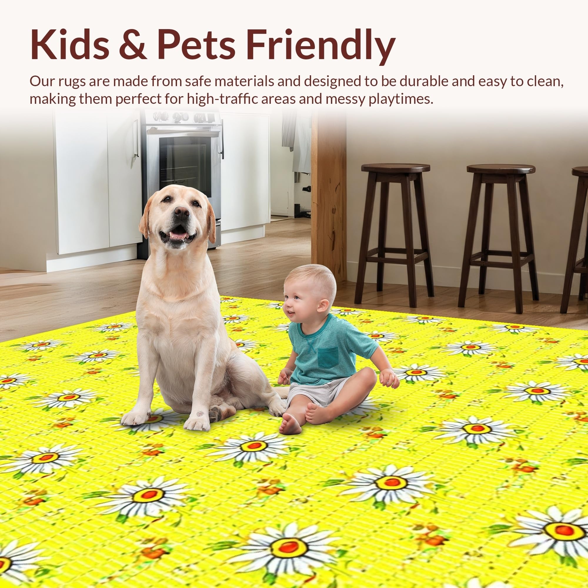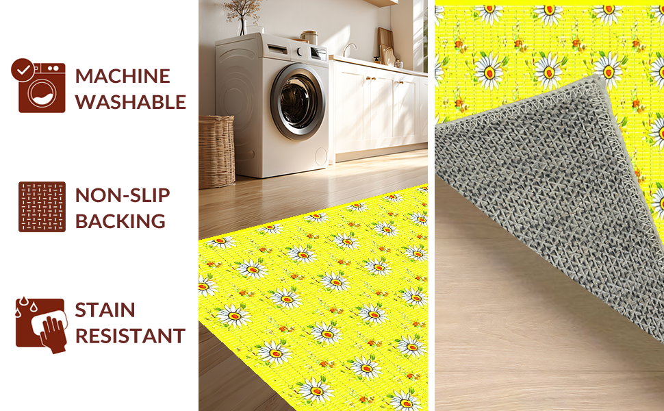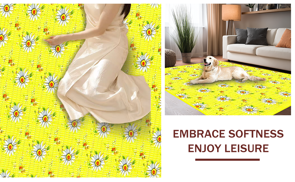 Ultra Soft Area Rug, Non Slip, Stain Resistant, Washable Area Rugs for Living Room, Bedroom, Lively Yellow Flower Composition(Yellow) Overview: