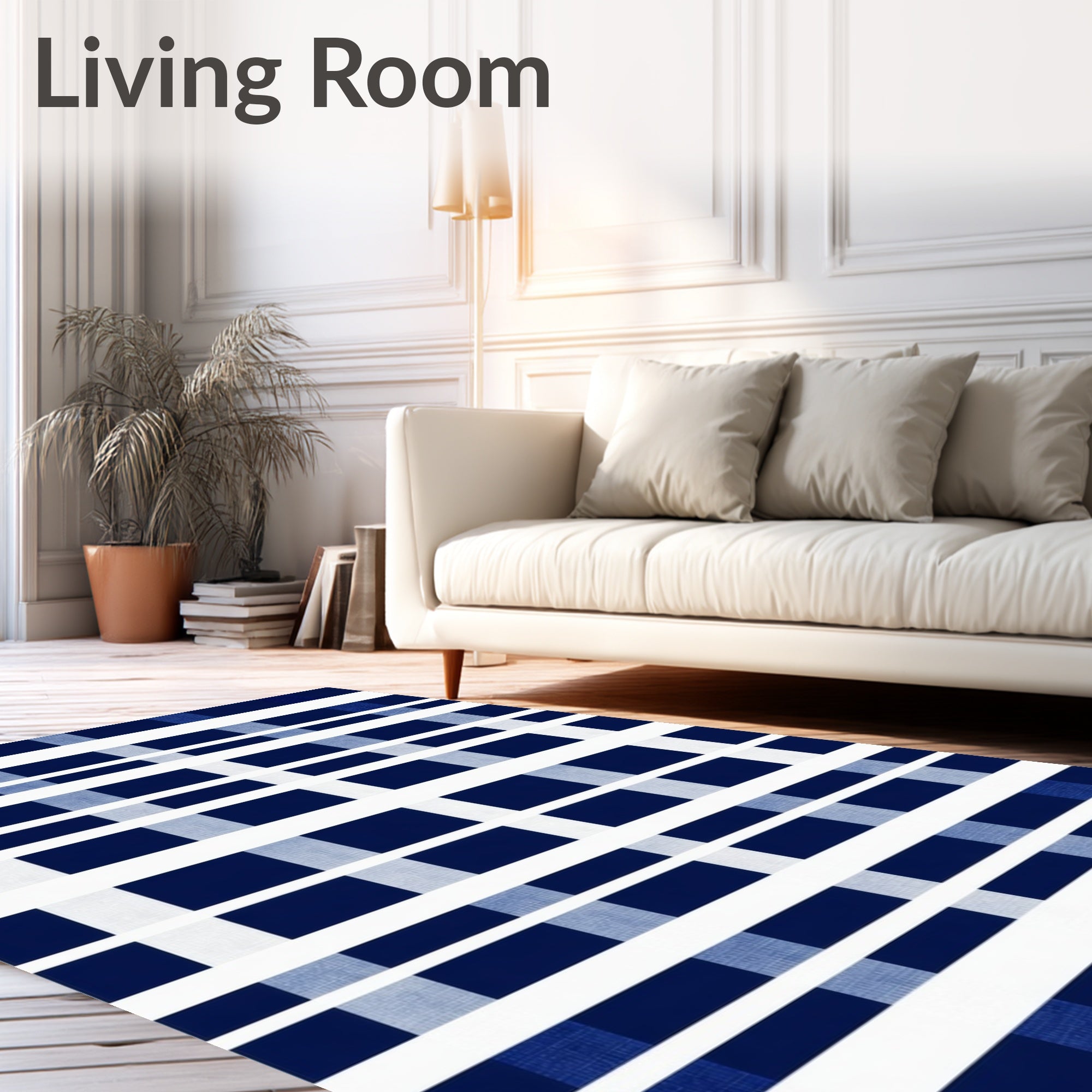 Ultra Soft Area Rug, Non Slip, Stain Resistant, Washable Area Rugs for Living Room, Bedroom, Living Room Stripe Rug Navy/White Stripes(Blue) Overview: