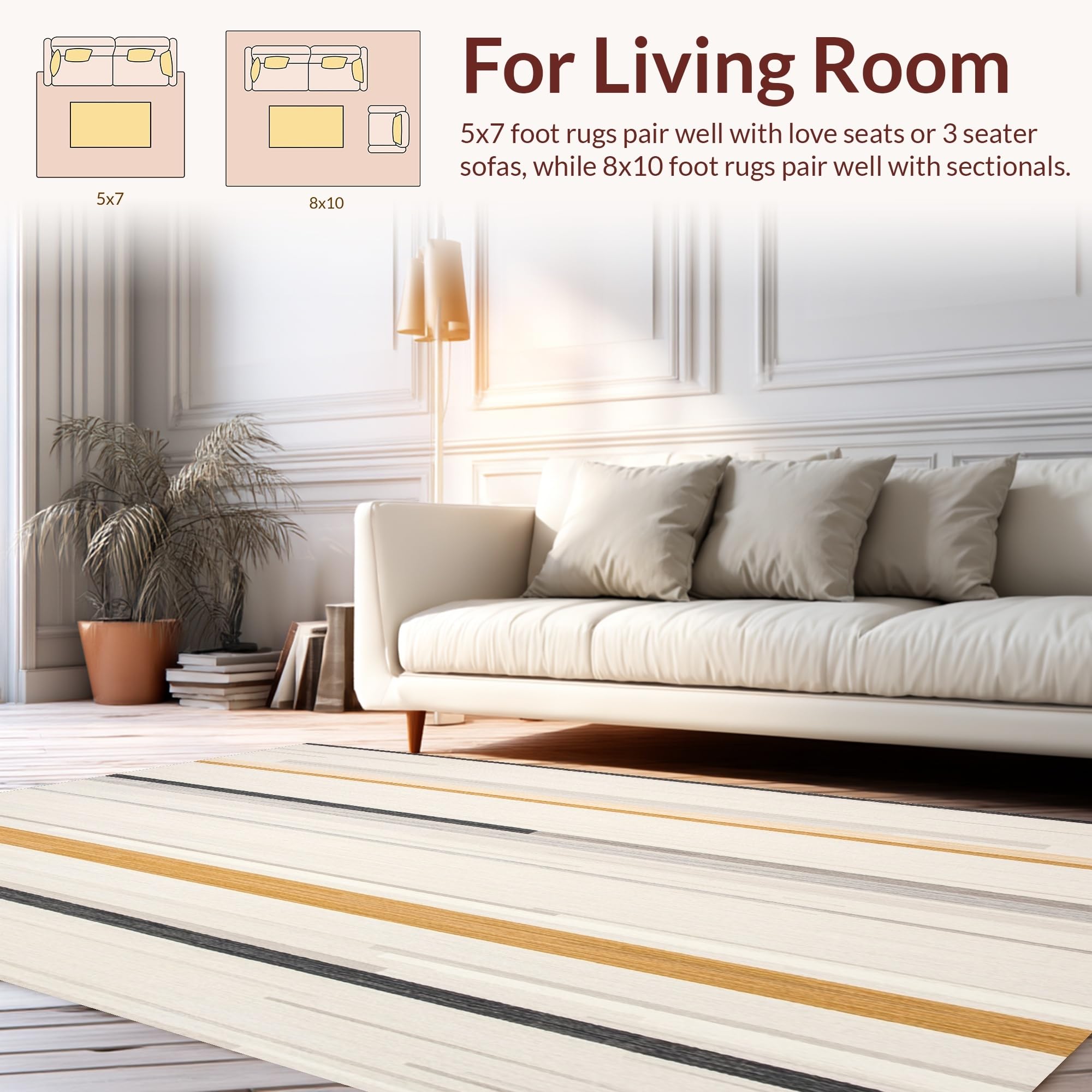 Ultra Soft Area Rug, Non Slip, Stain Resistant, Washable Area Rugs for Living Room, Bedroom, Long Runner Berber Stripes Heritage Trails Collection Beige(Beige) Overview: