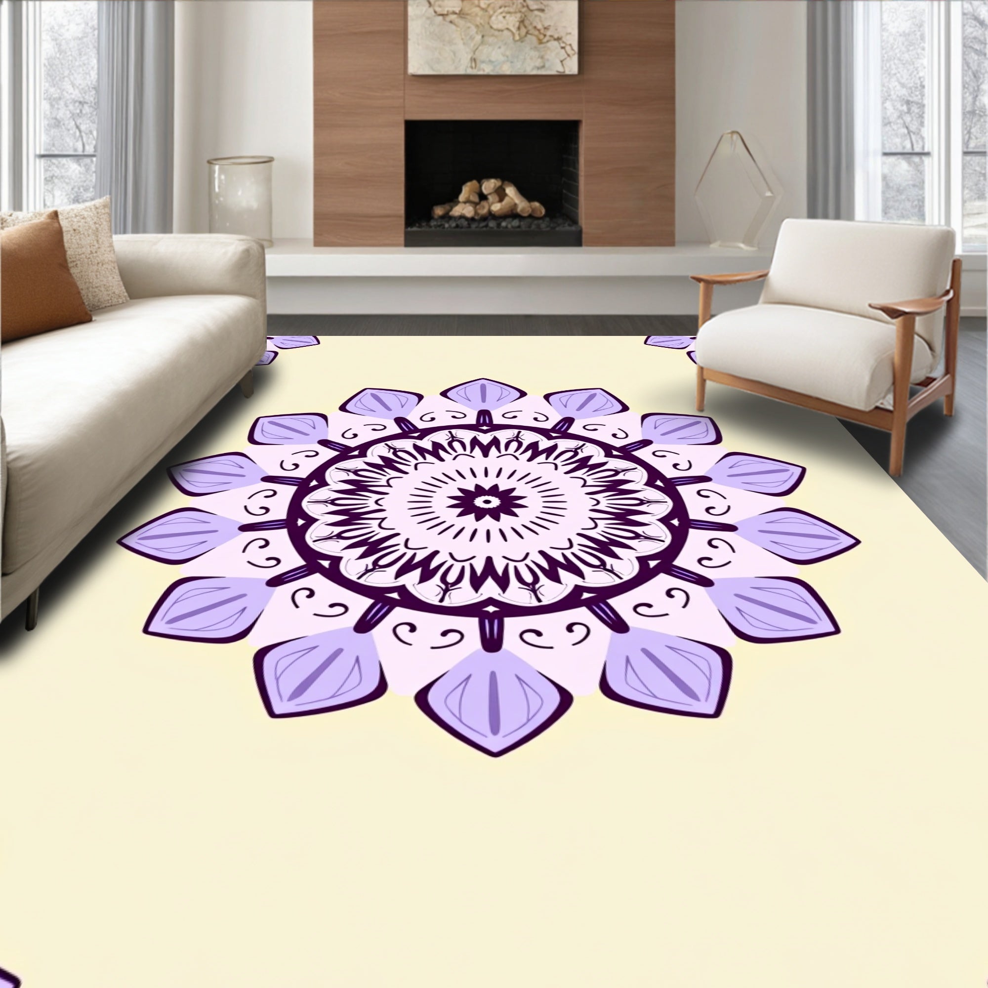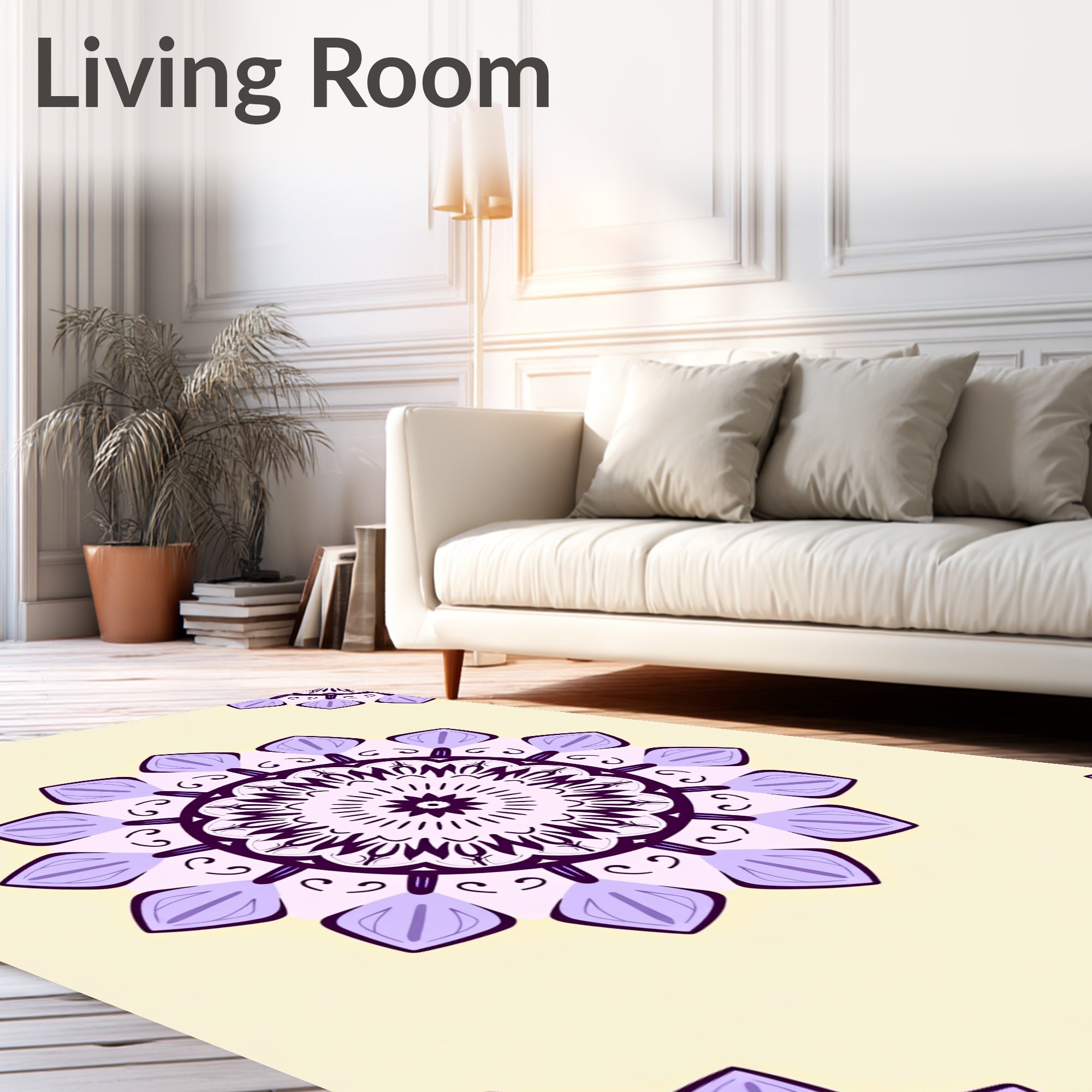 Flatwoven High Traffic Area Rug, Lotus Blossom Medallion, Non Slip, Stain Resistant, Washable Area Rugs for Living Room, Bedroom (Beige) Overview: