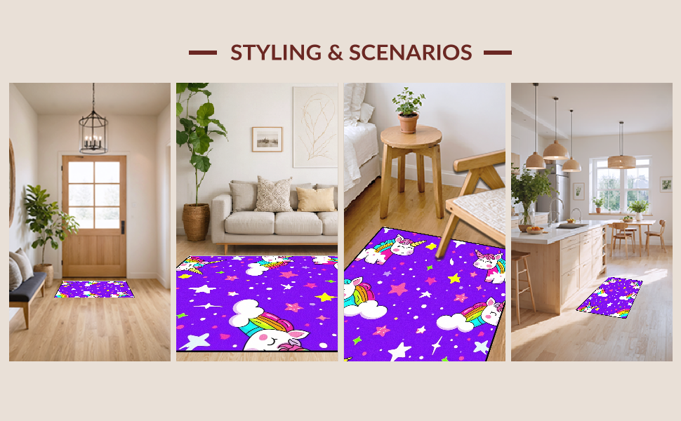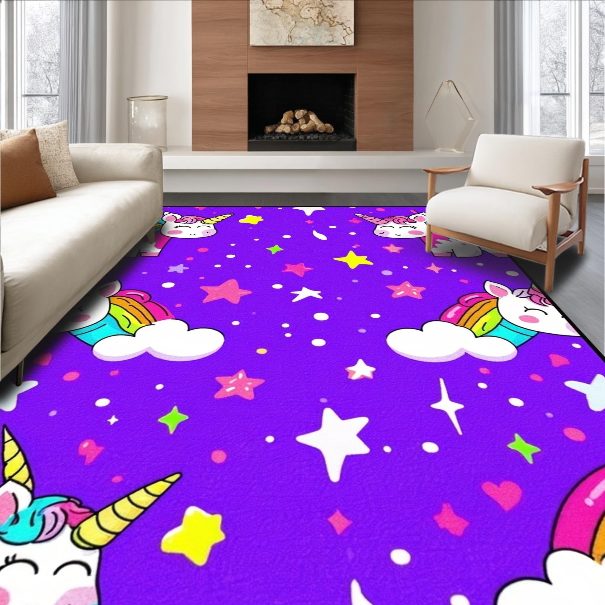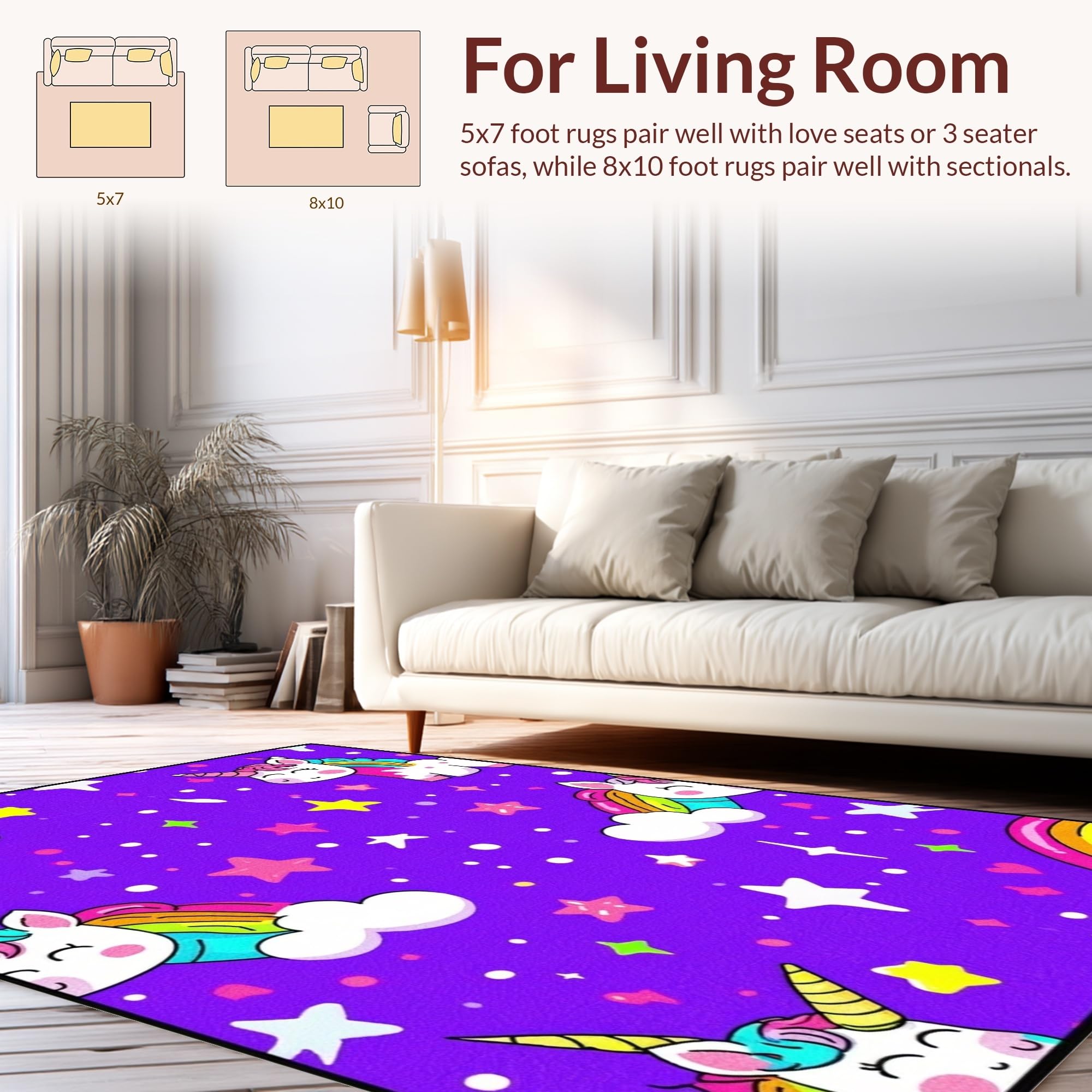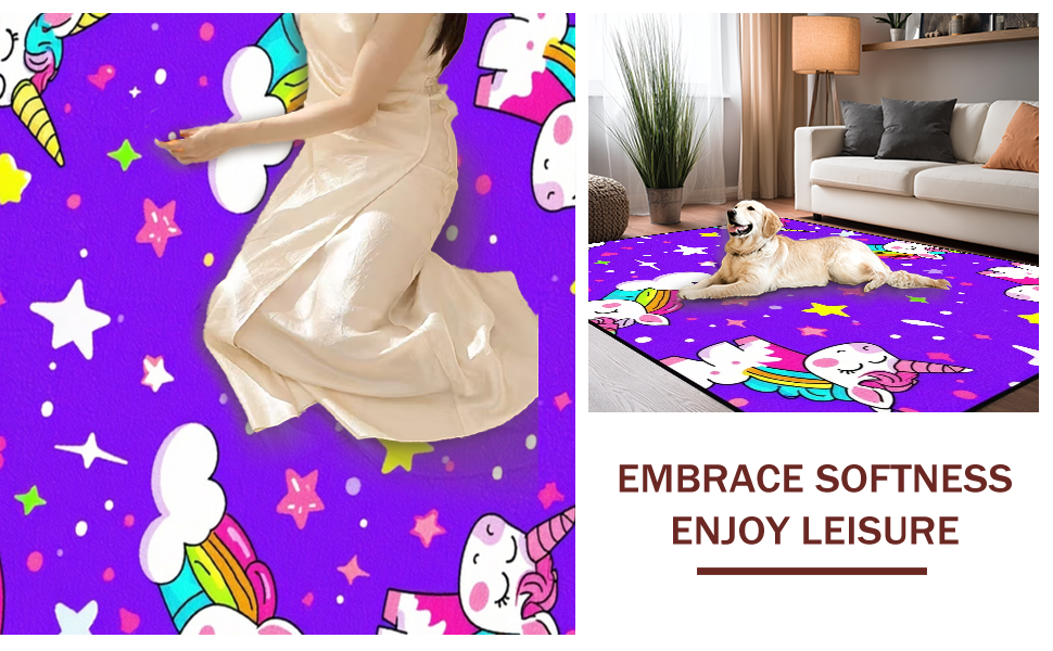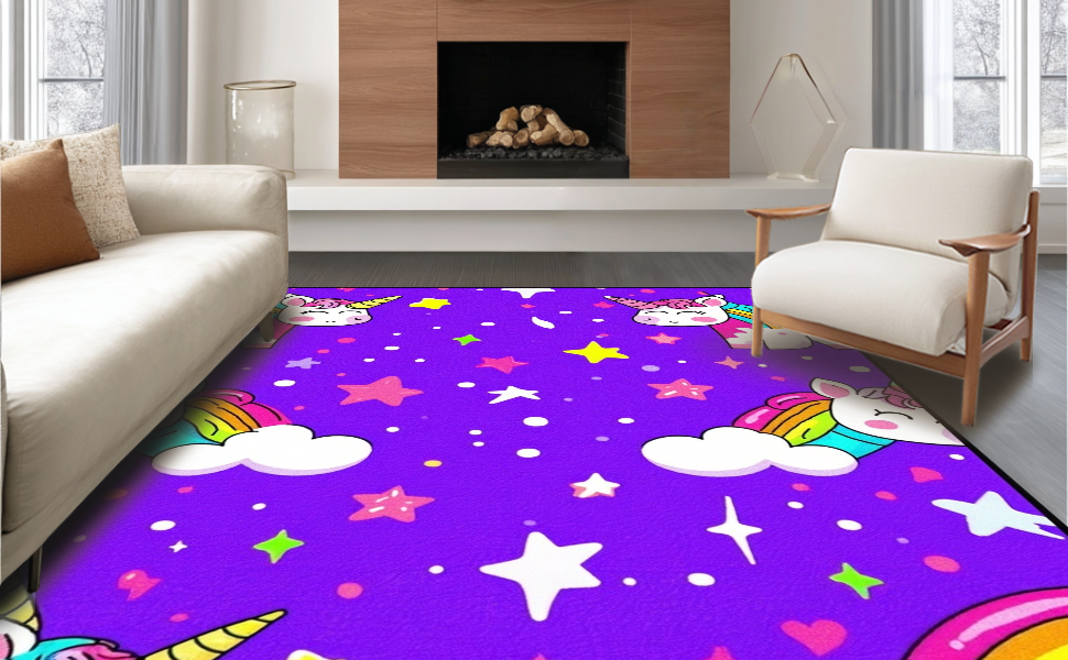 Ultra Soft Area Rug, Non Slip, Stain Resistant, Washable Area Rugs for Living Room, Bedroom, Lovely Cartoonish Whirlwind of Colors(Purple) Overview: