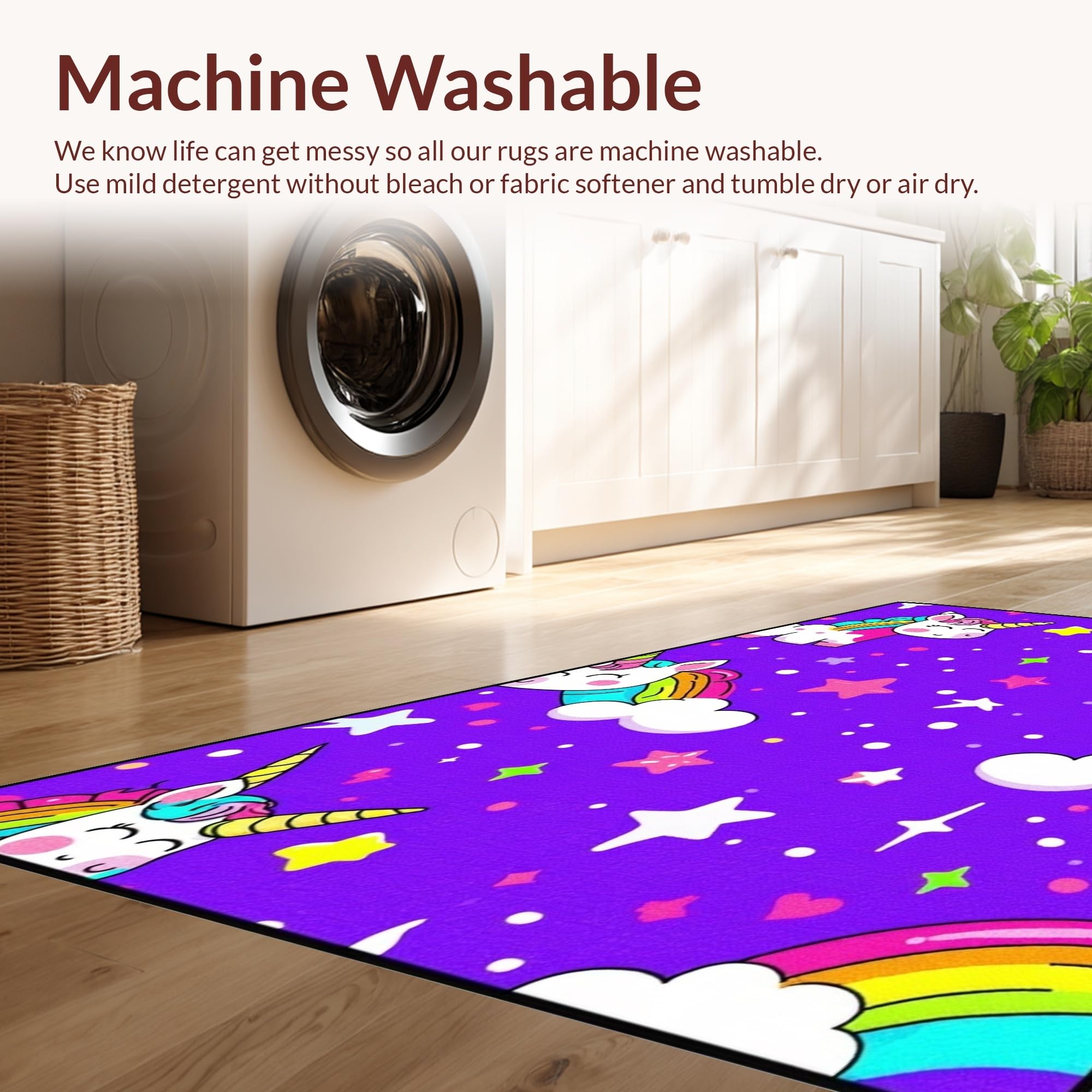 - Machine Washable: Our rugs can be easily thrown in the wash machine.