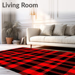Ultra Soft Area Rug, Non Slip, Stain Resistant, Washable Area Rugs for Living Room, Bedroom, Lumberjack Plaid with Vintage Crosshatch Detailing(Red) Overview: