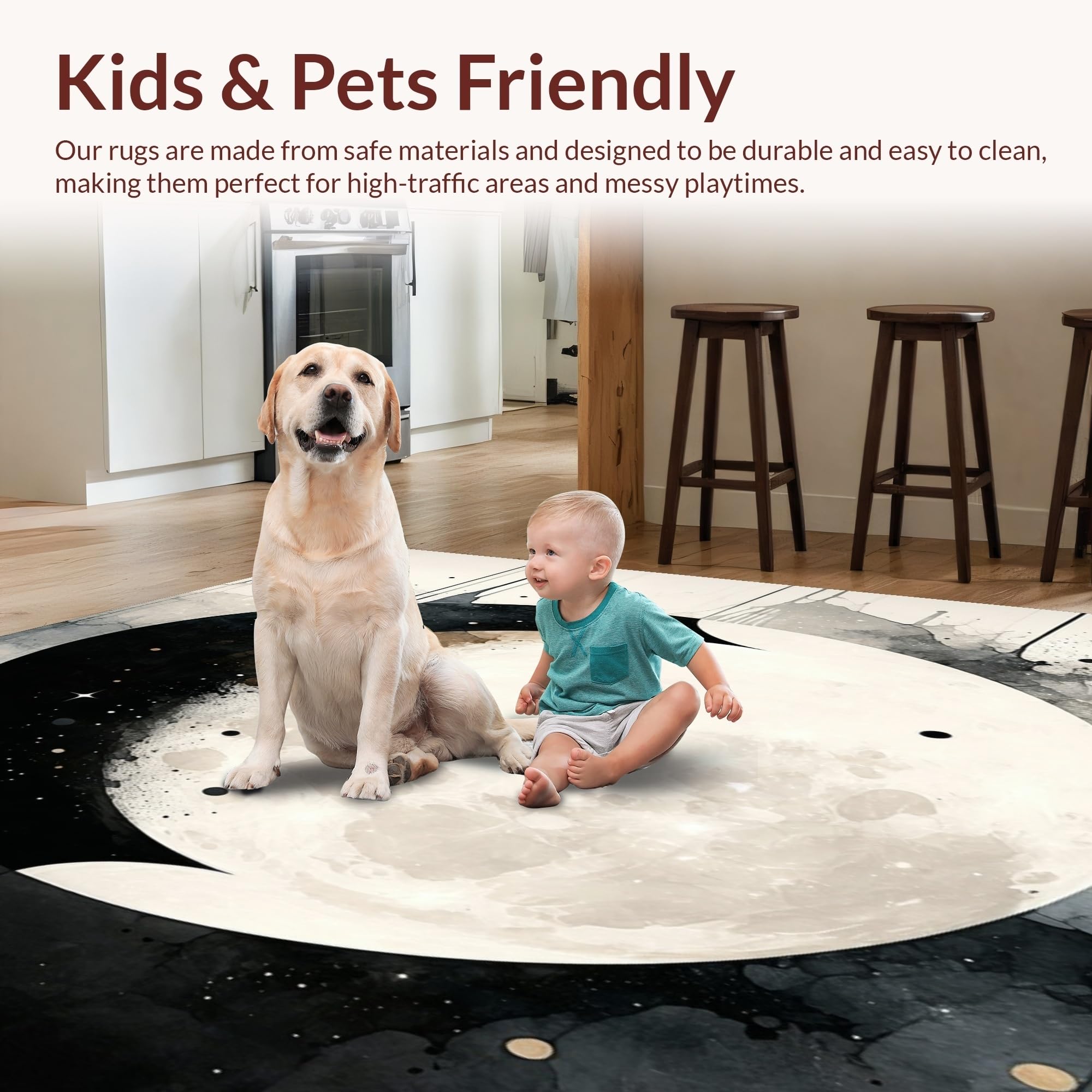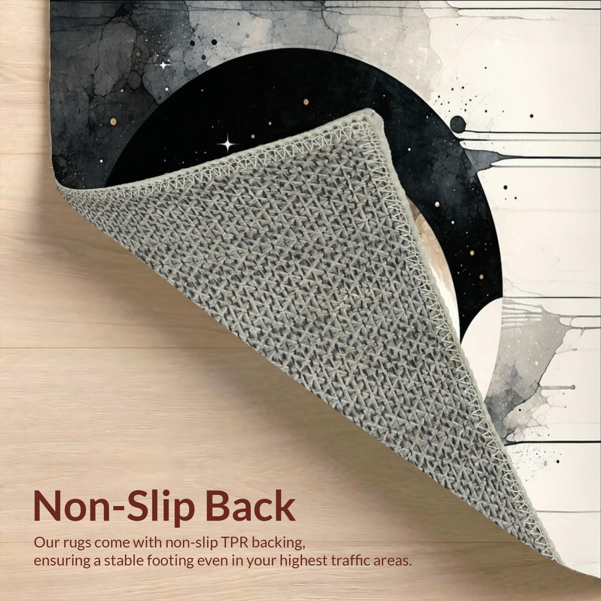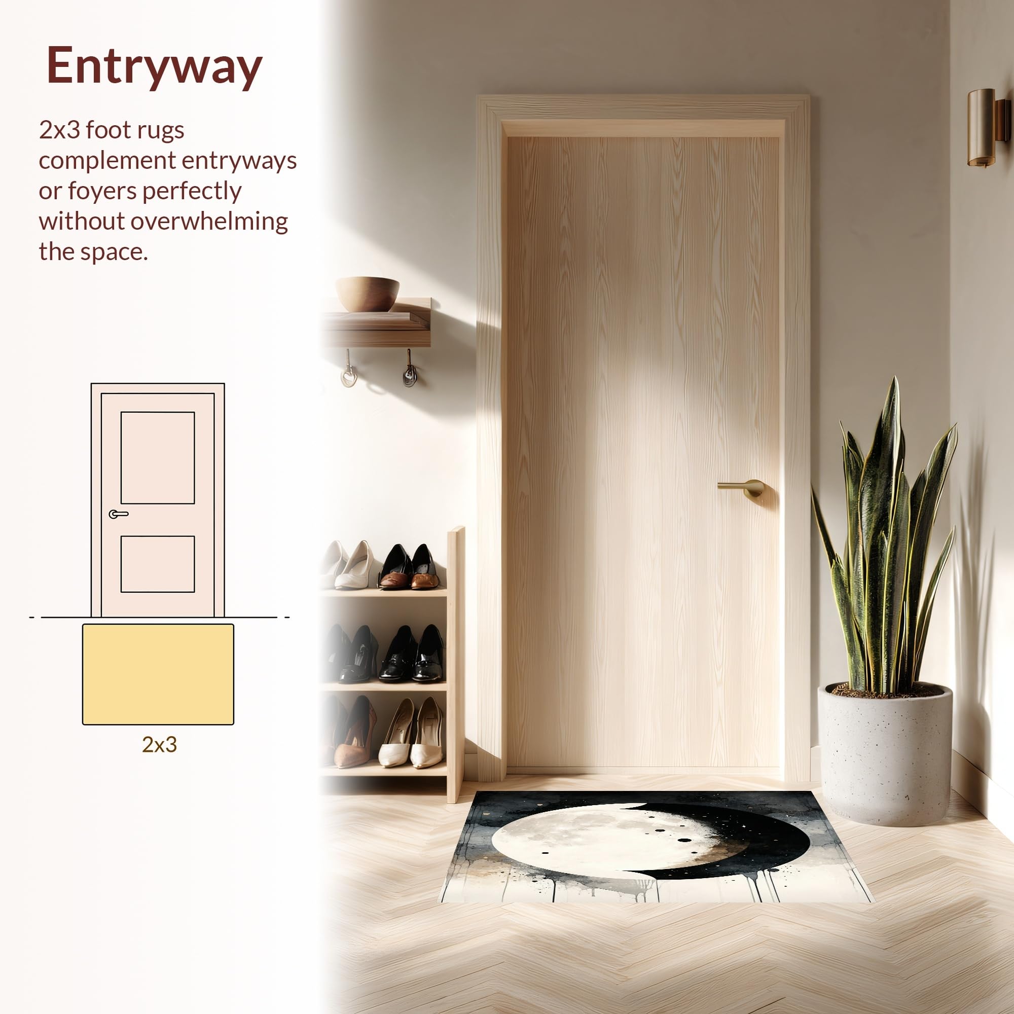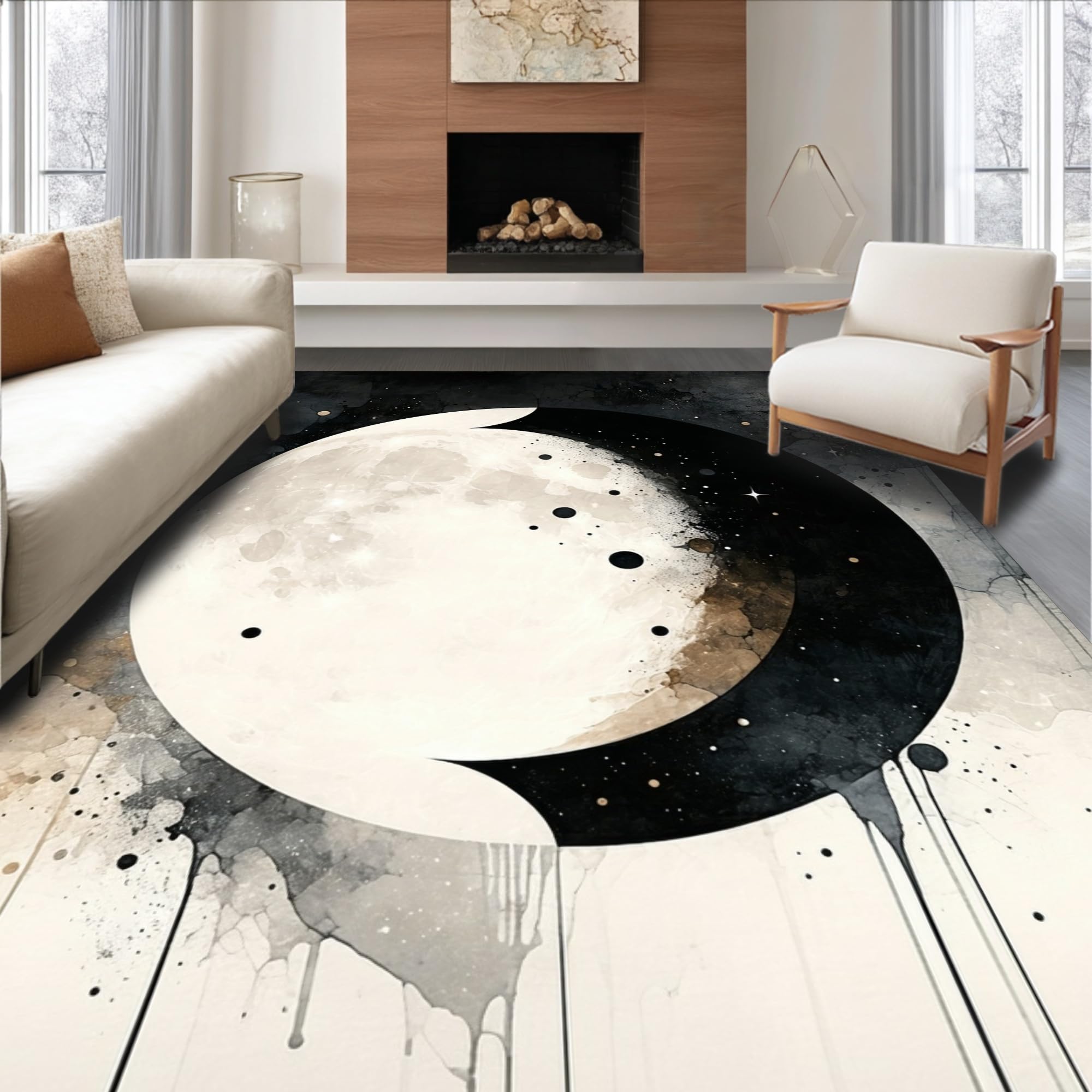 Ultra Soft Area Rug, Non Slip, Stain Resistant, Washable Area Rugs for Living Room, Bedroom, Lunar Eclipse Area Taupe & Cream Moon Phase Witchy Accent(Gray) Overview: