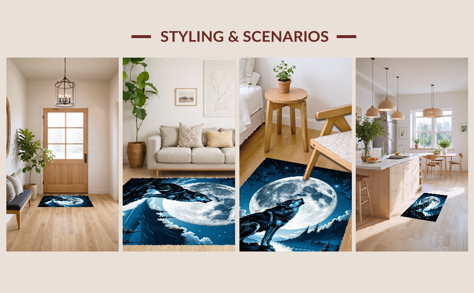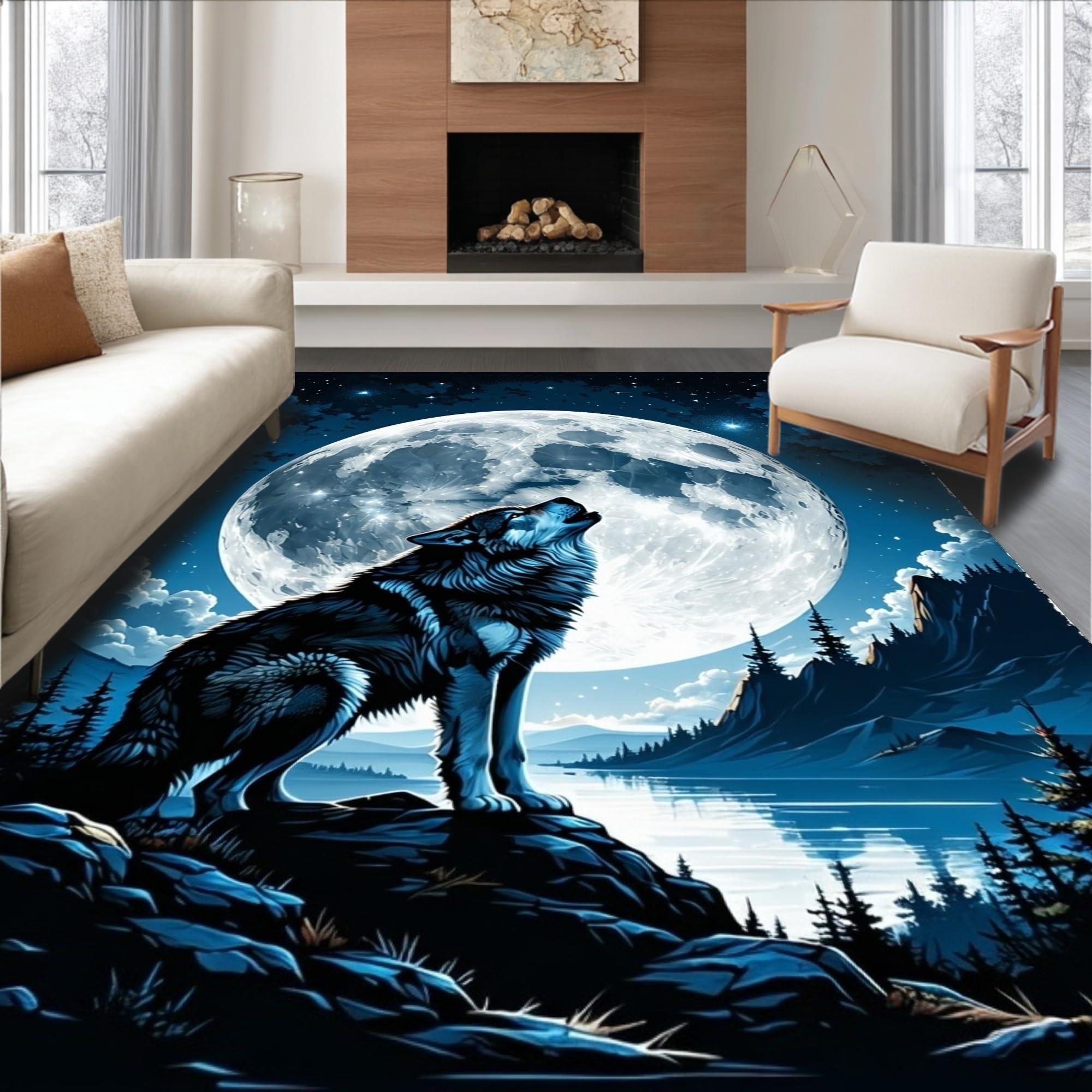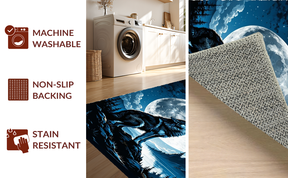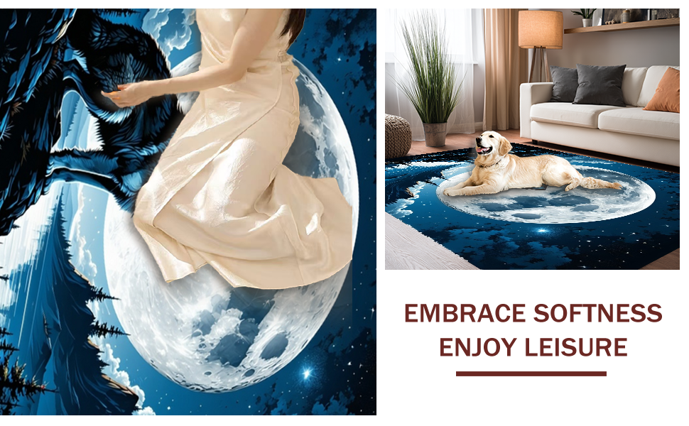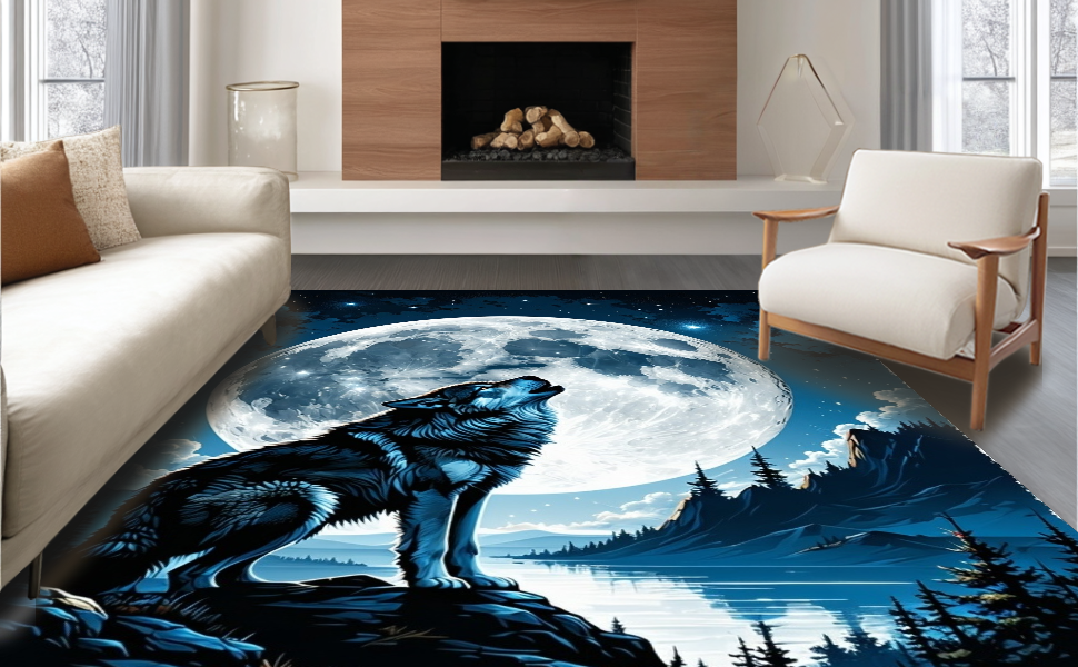 Ultra Soft Area Rug, Non Slip, Stain Resistant, Washable Area Rugs for Living Room, Bedroom, Lunar Howl Inspired Rustic Elegance(Black) Overview: