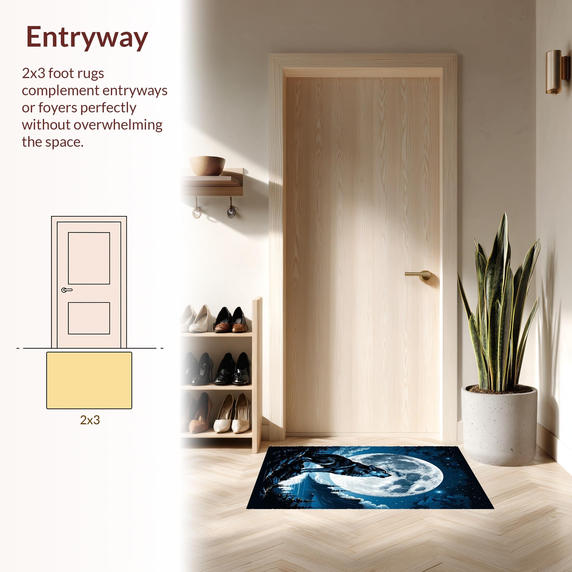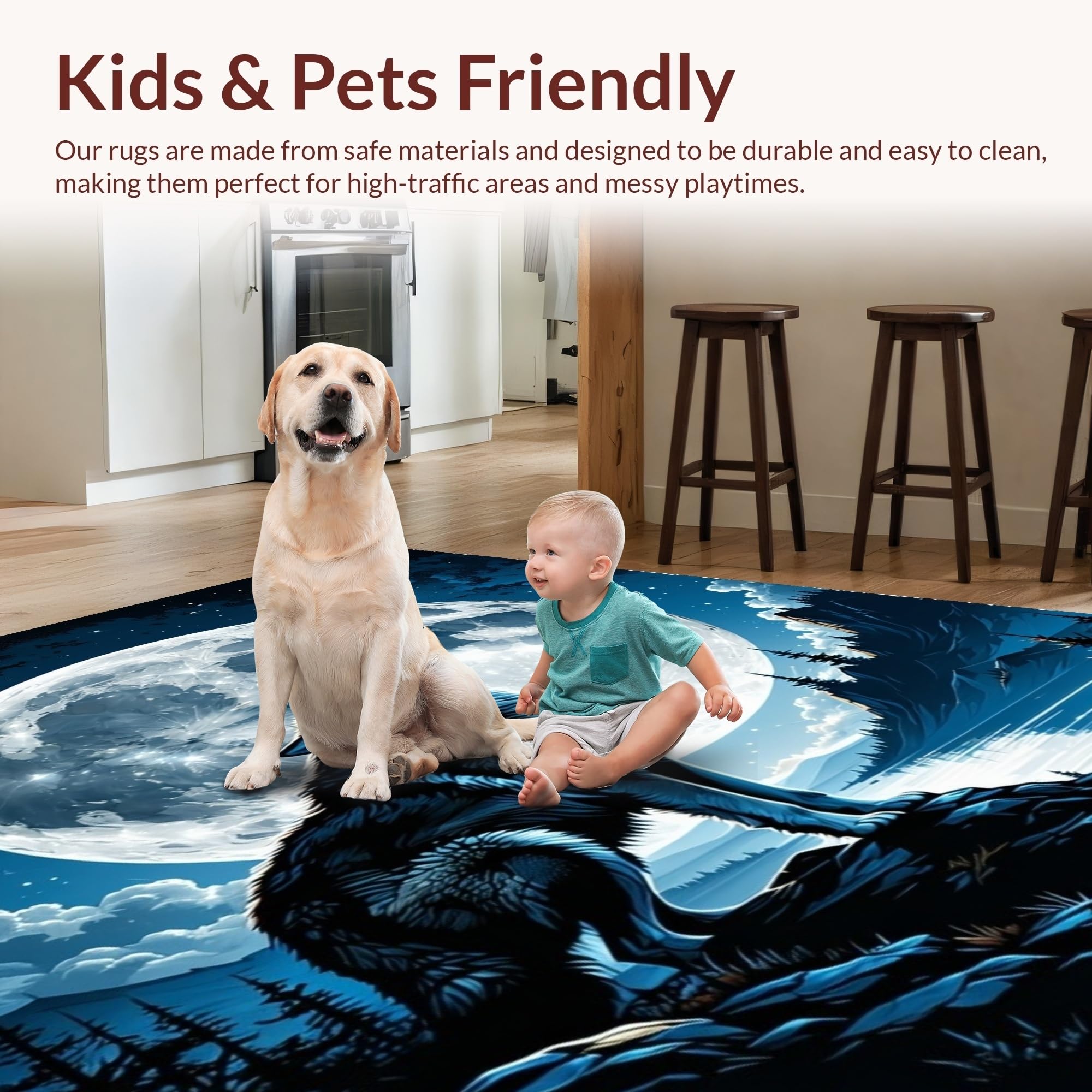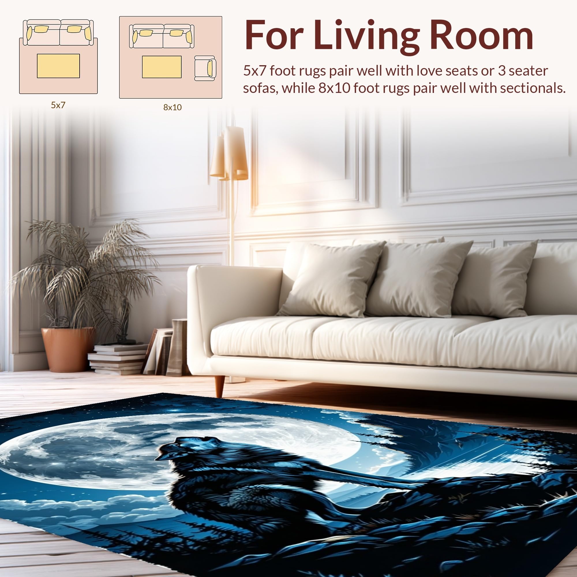 Ultra Soft Area Rug, Non Slip, Stain Resistant, Washable Area Rugs for Living Room, Bedroom, Lunar Howl Inspired Rustic Elegance(Black) Overview: