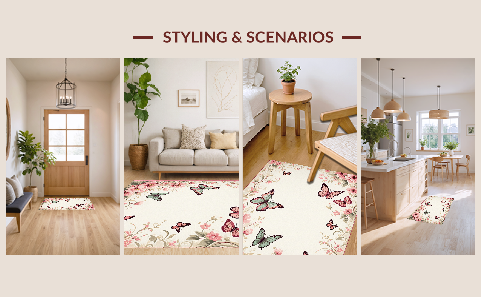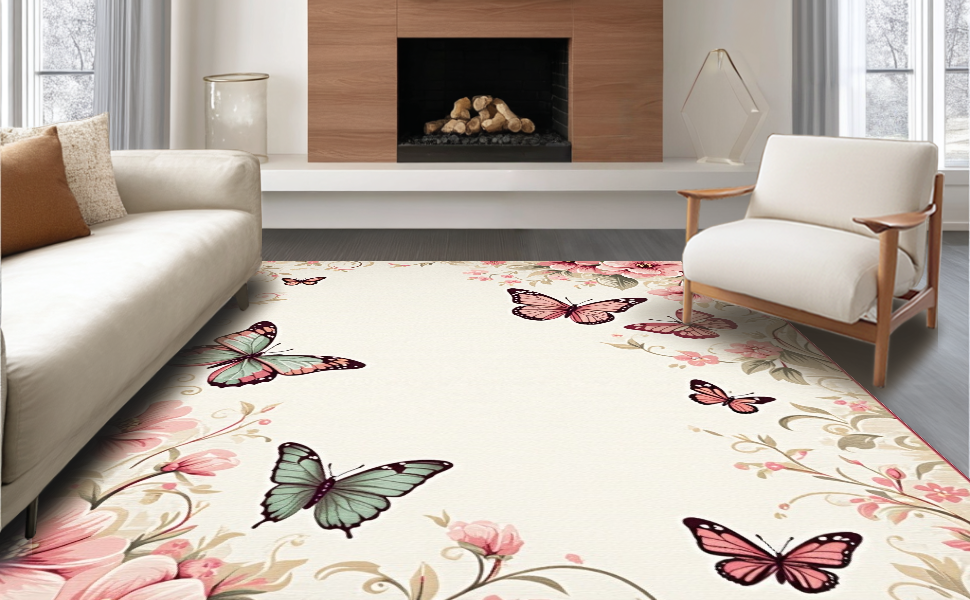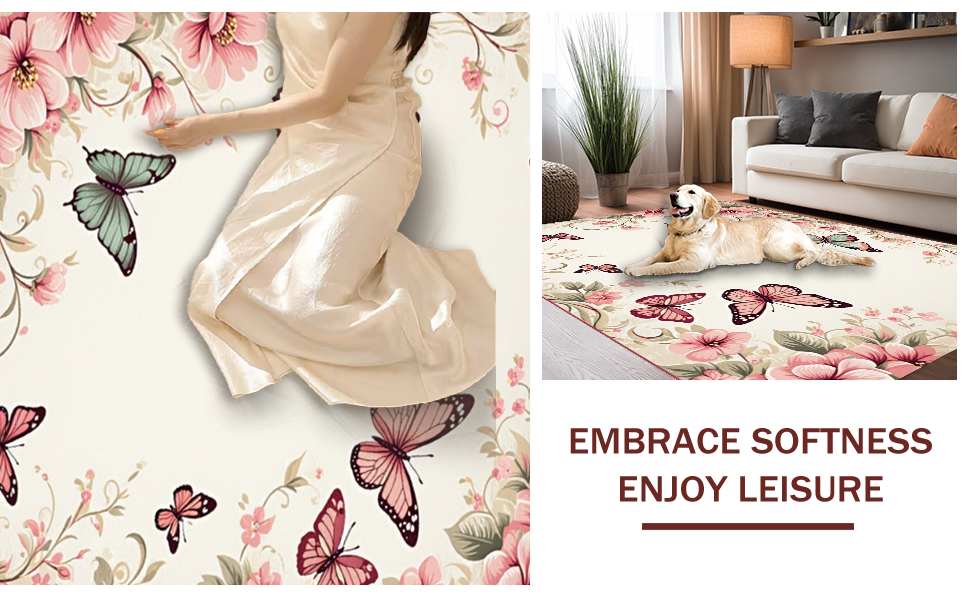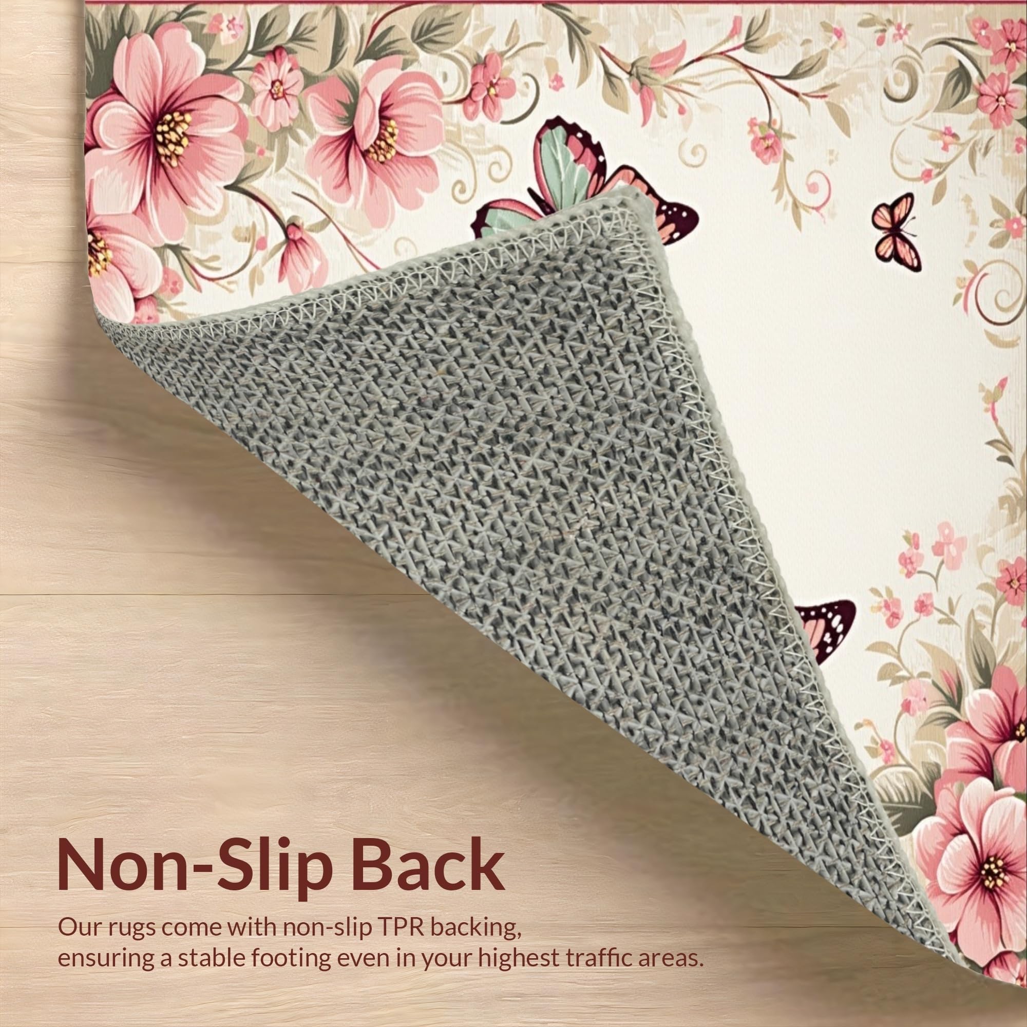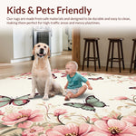 Ultra Soft Area Rug, Non Slip, Stain Resistant, Washable Area Rugs for Living Room, Bedroom, Lush Botanical Pink Fantasy Theme(Beige) Overview: