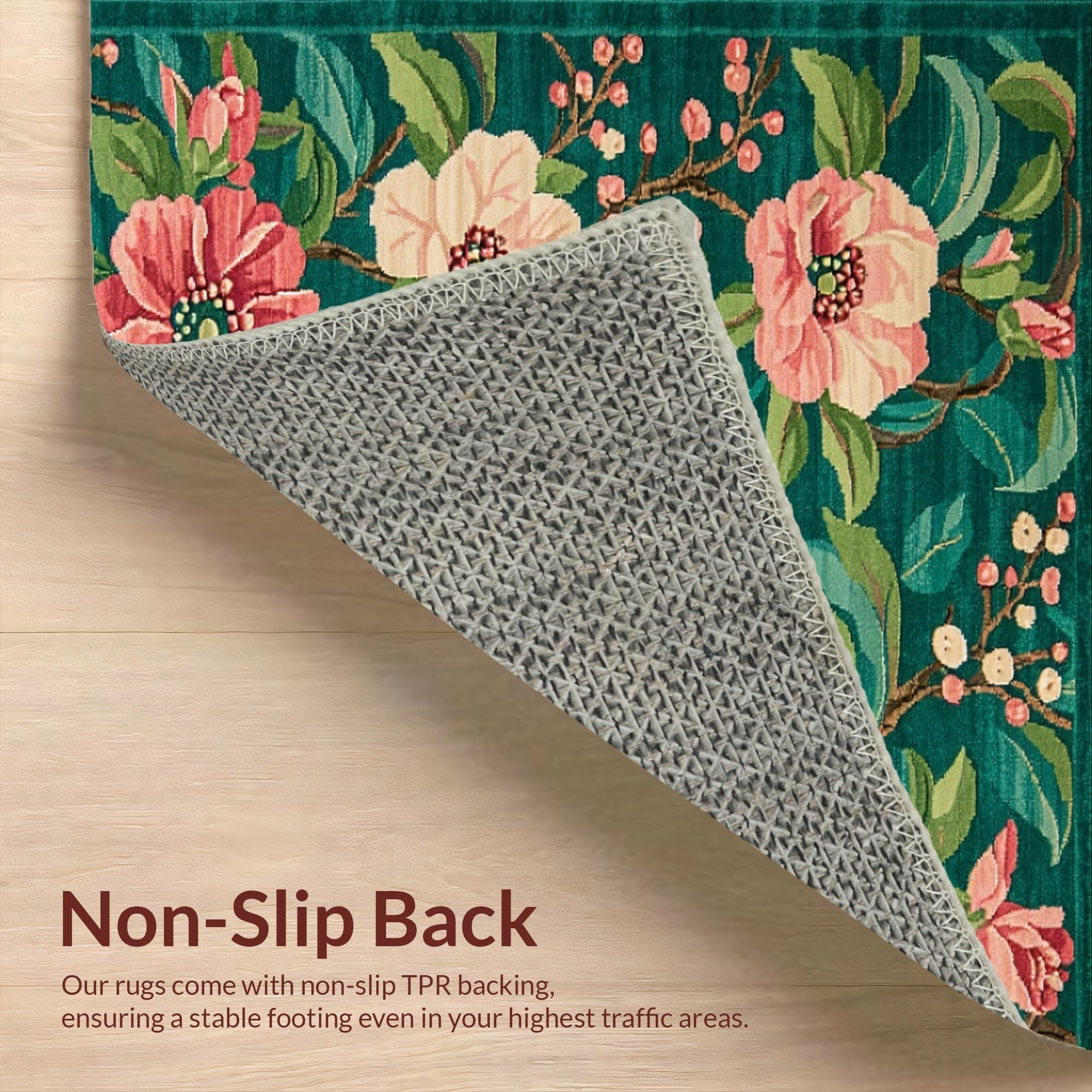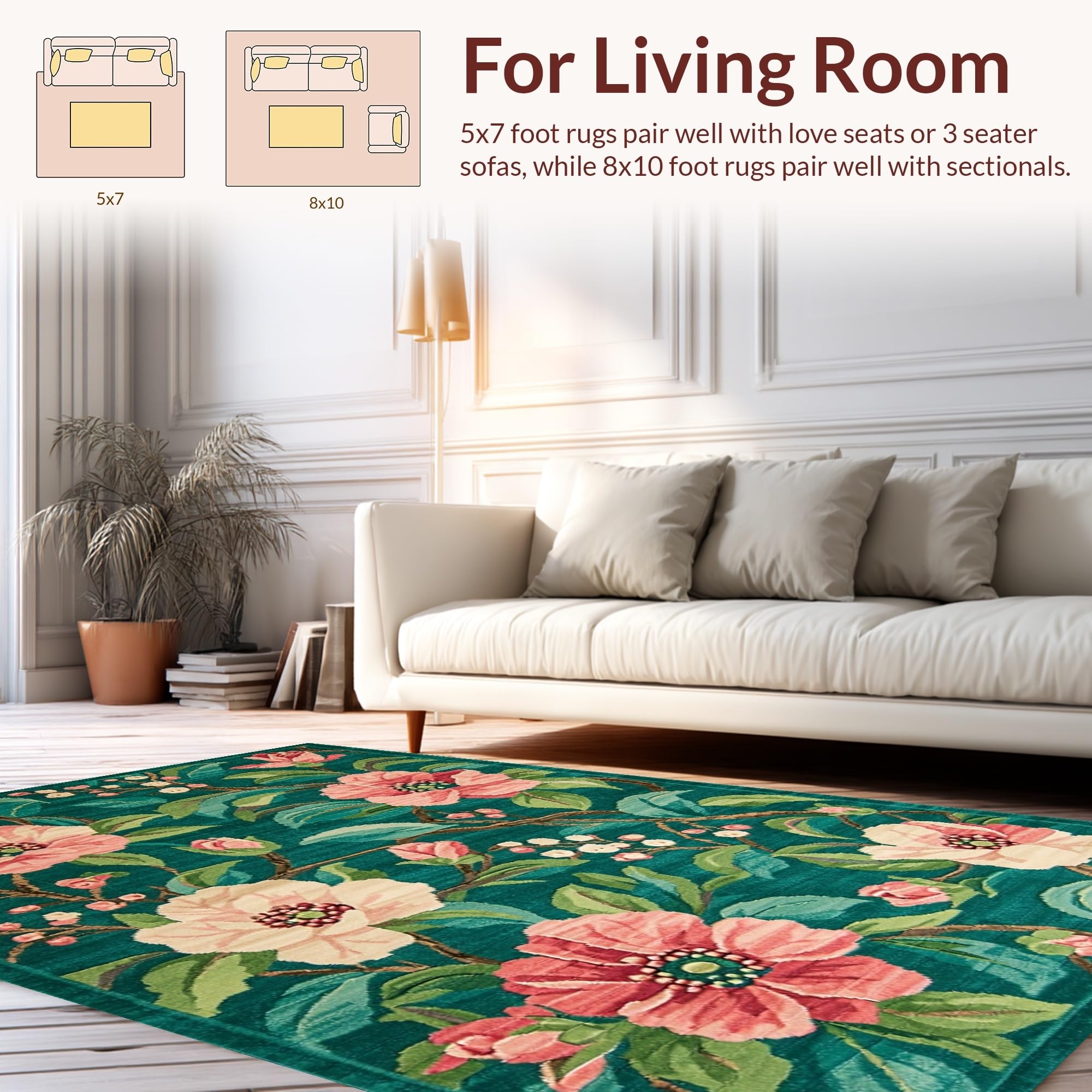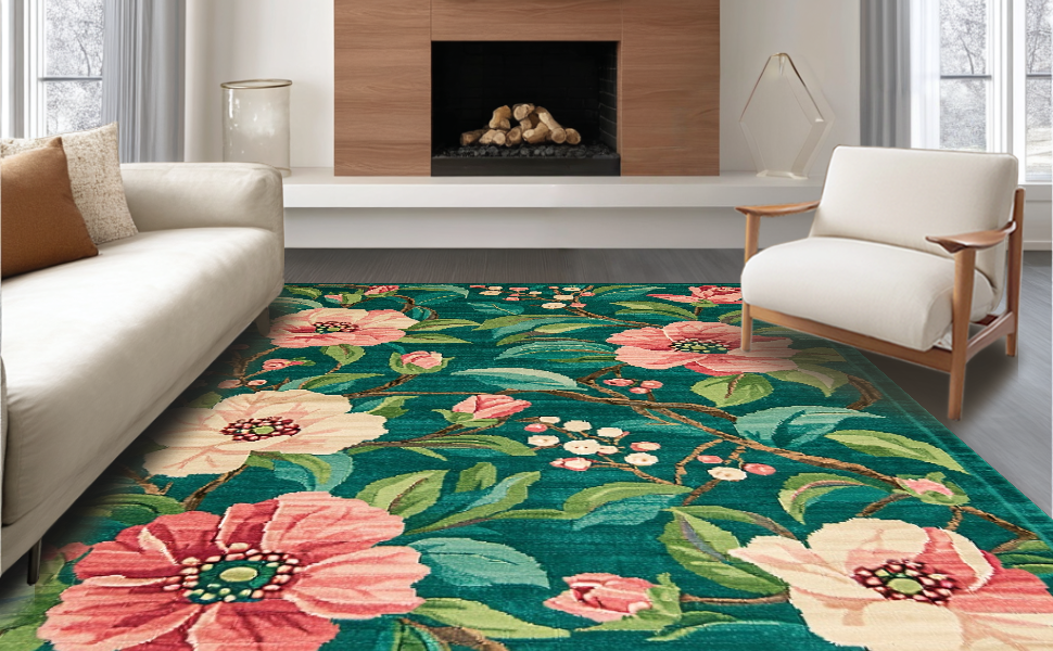 Ultra Soft Area Rug, Non Slip, Stain Resistant, Washable Area Rugs for Living Room, Bedroom, Lush Botanical Print Inspiration(Green) Overview: