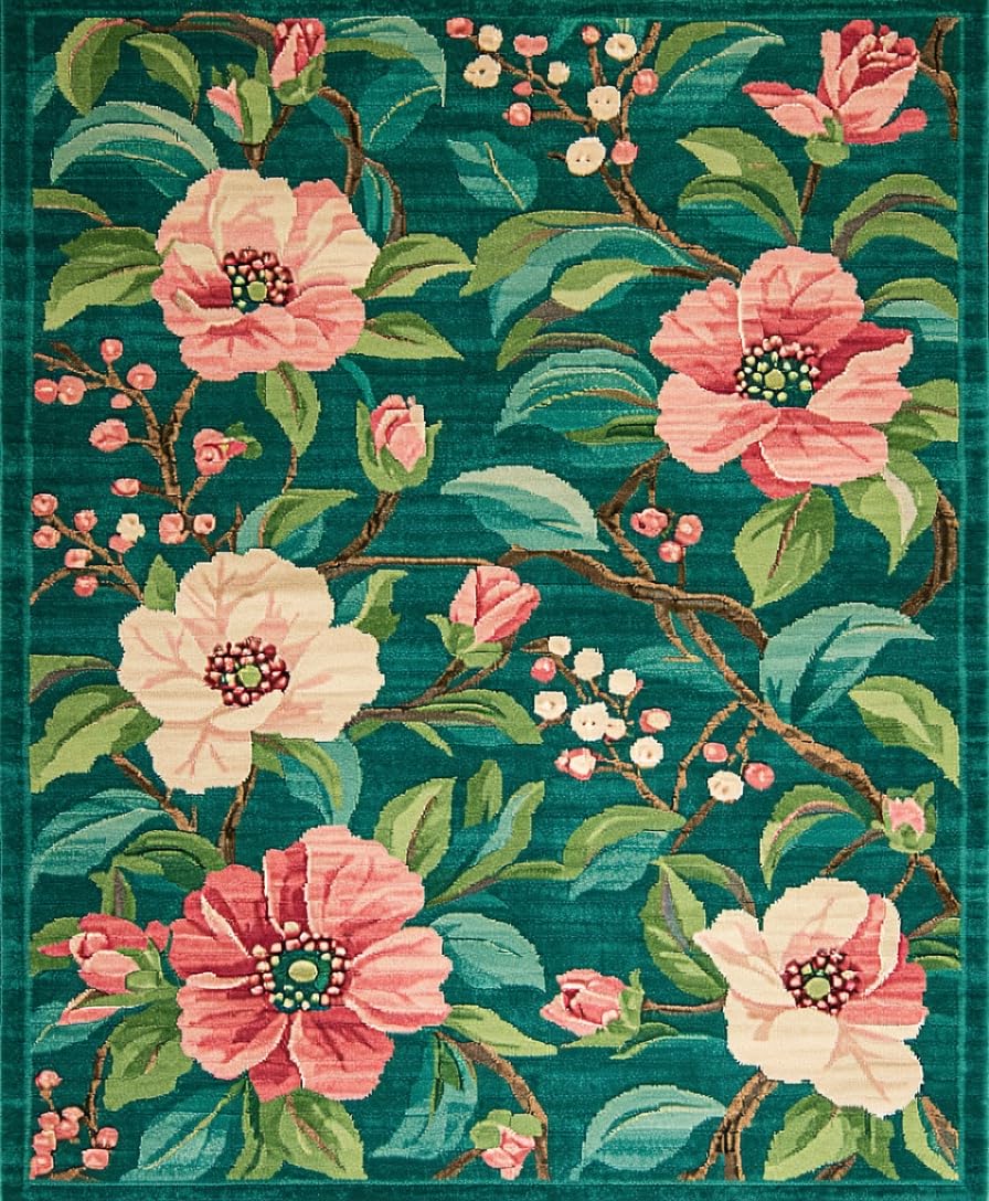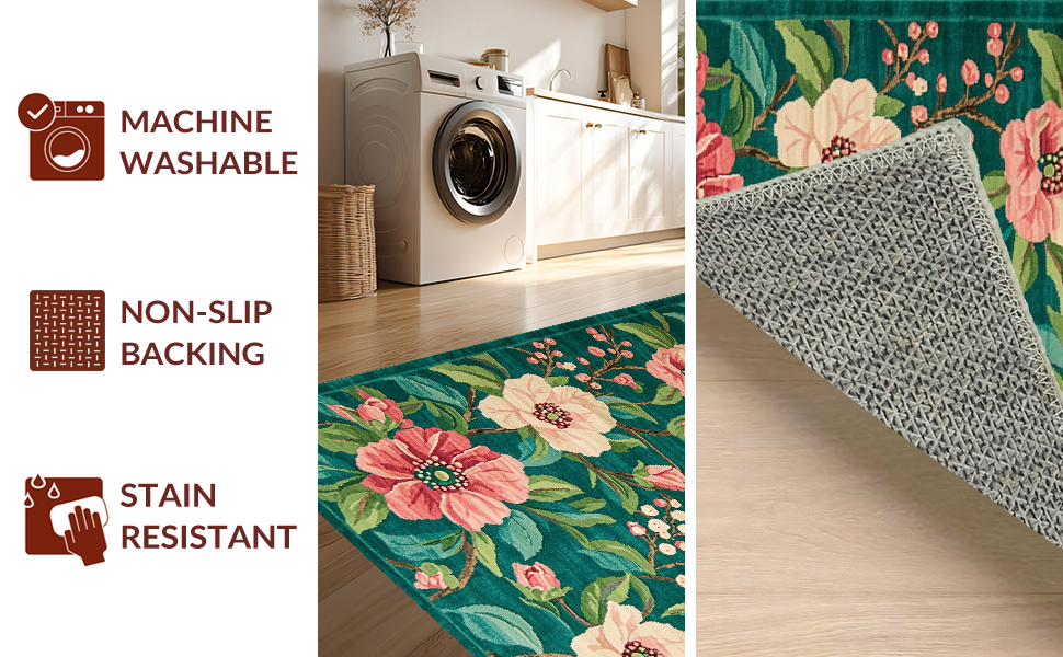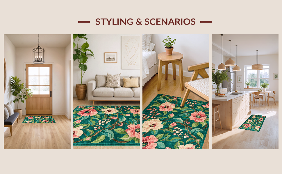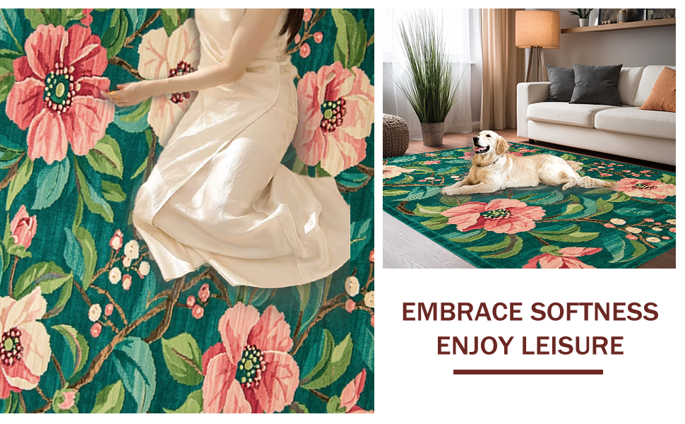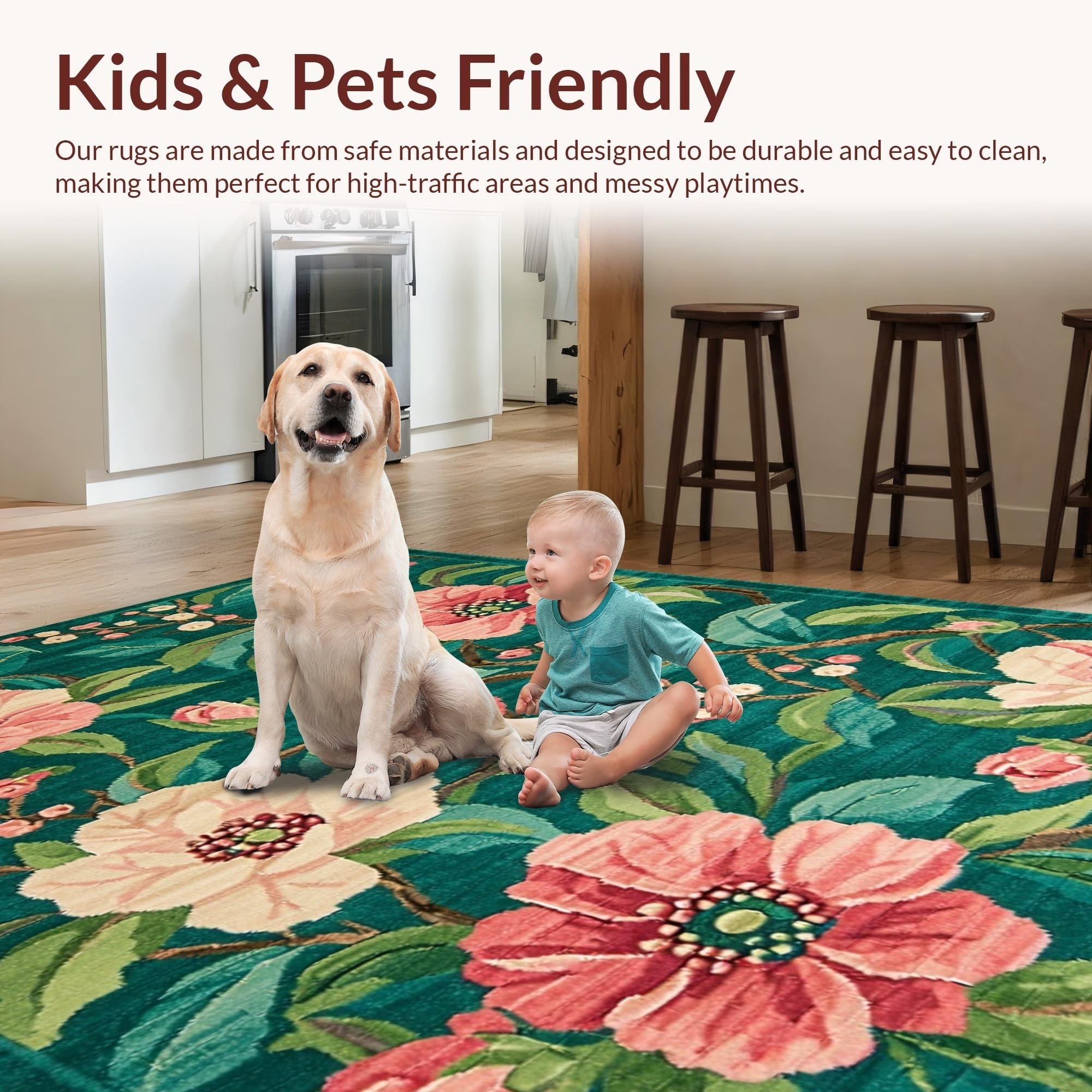 Ultra Soft Area Rug, Non Slip, Stain Resistant, Washable Area Rugs for Living Room, Bedroom, Lush Botanical Print Inspiration(Green) Overview: