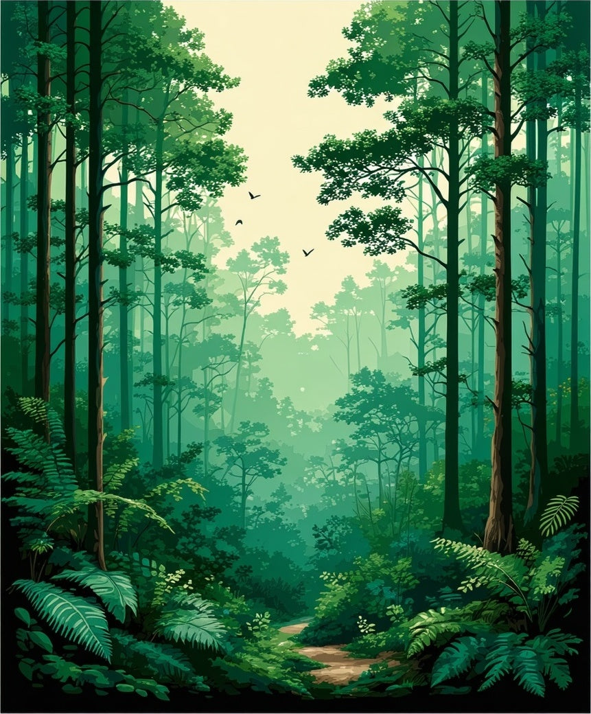 Lush Canopy Forest Green & Beige Blended Abstract(Green)