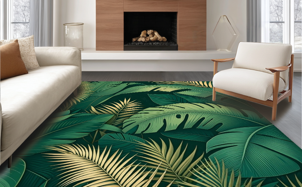 Ultra Soft Area Rug, Non Slip, Stain Resistant, Washable Area Rugs for Living Room, Bedroom, Lush Earthy Tones Trellis Style(Green) Overview: