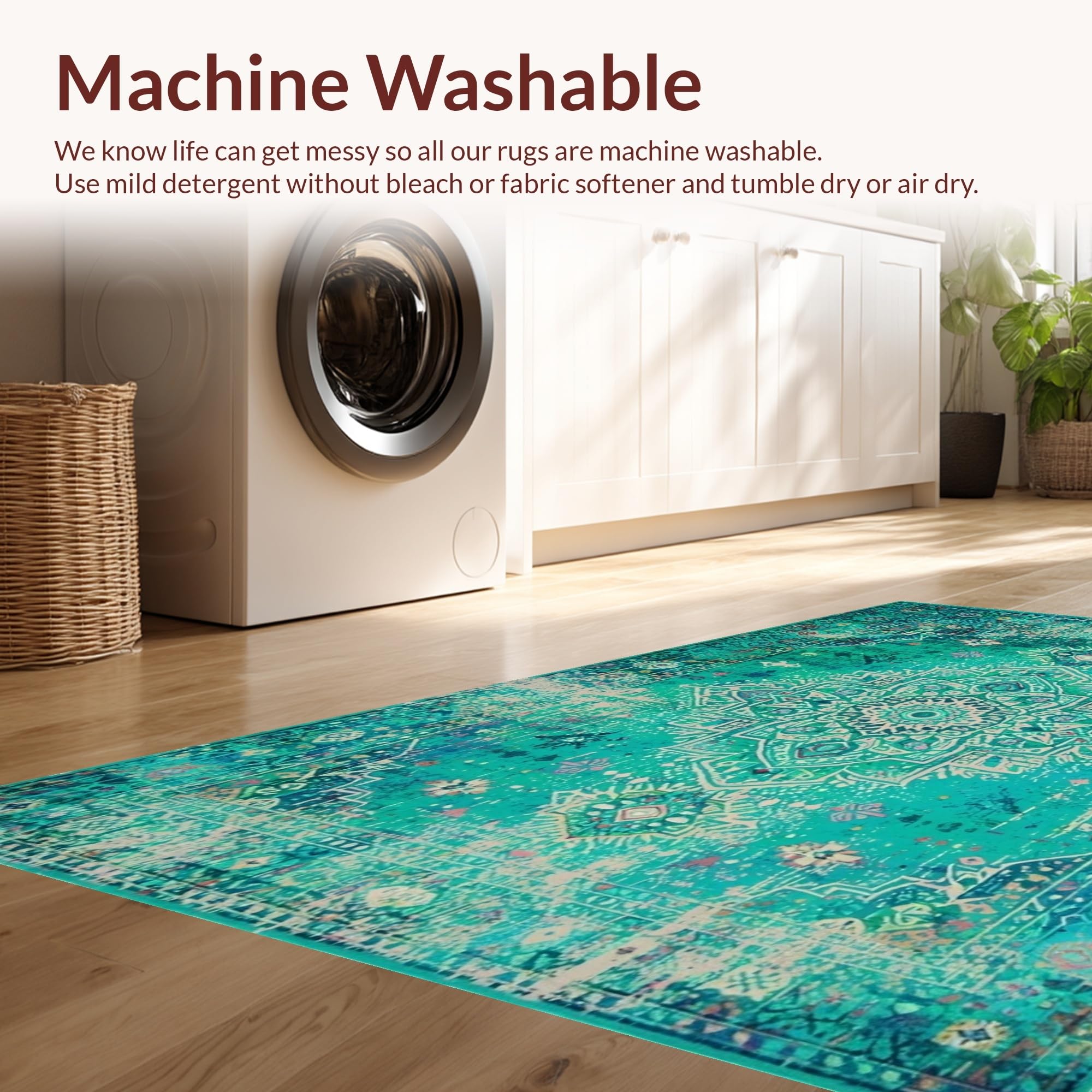 - Machine Washable: Our rugs can be easily thrown in the wash machine.