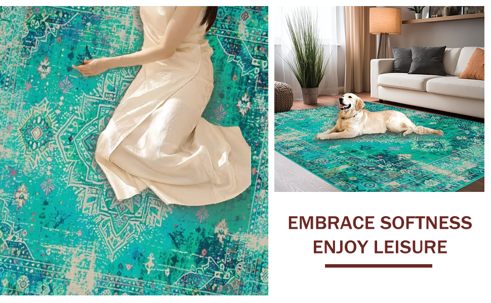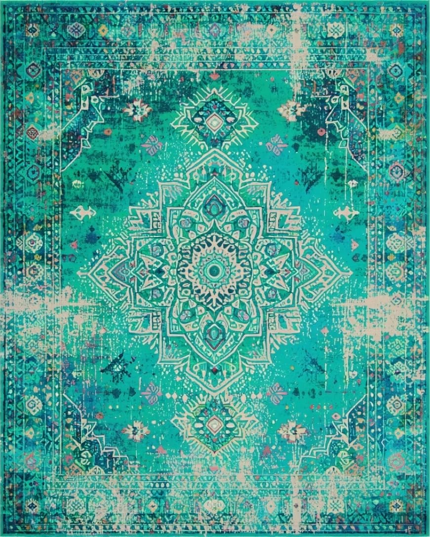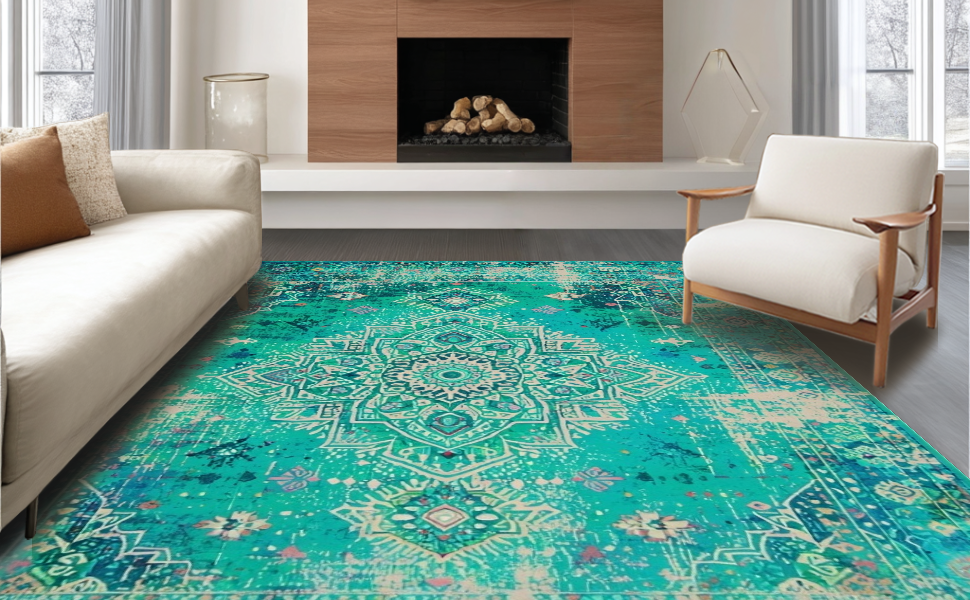 Ultra Soft Area Rug, Non Slip, Stain Resistant, Washable Area Rugs for Living Room, Bedroom, Lush Earthy Tones with Medallions(Blue) Overview: