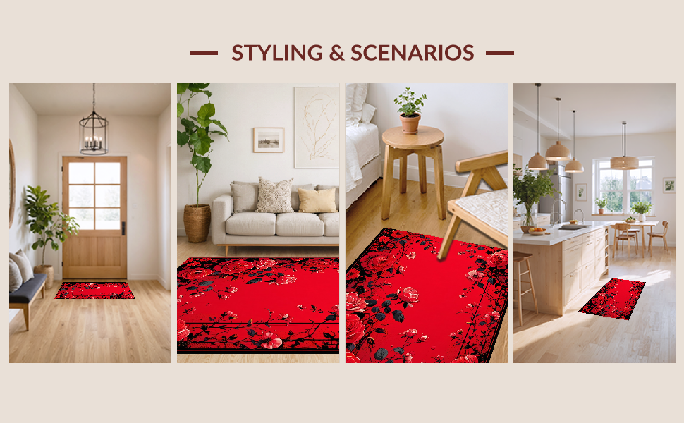 Ultra Soft Area Rug, Non Slip, Stain Resistant, Washable Area Rugs for Living Room, Bedroom, Lush Flower-Shaped Delight(Red) Overview: