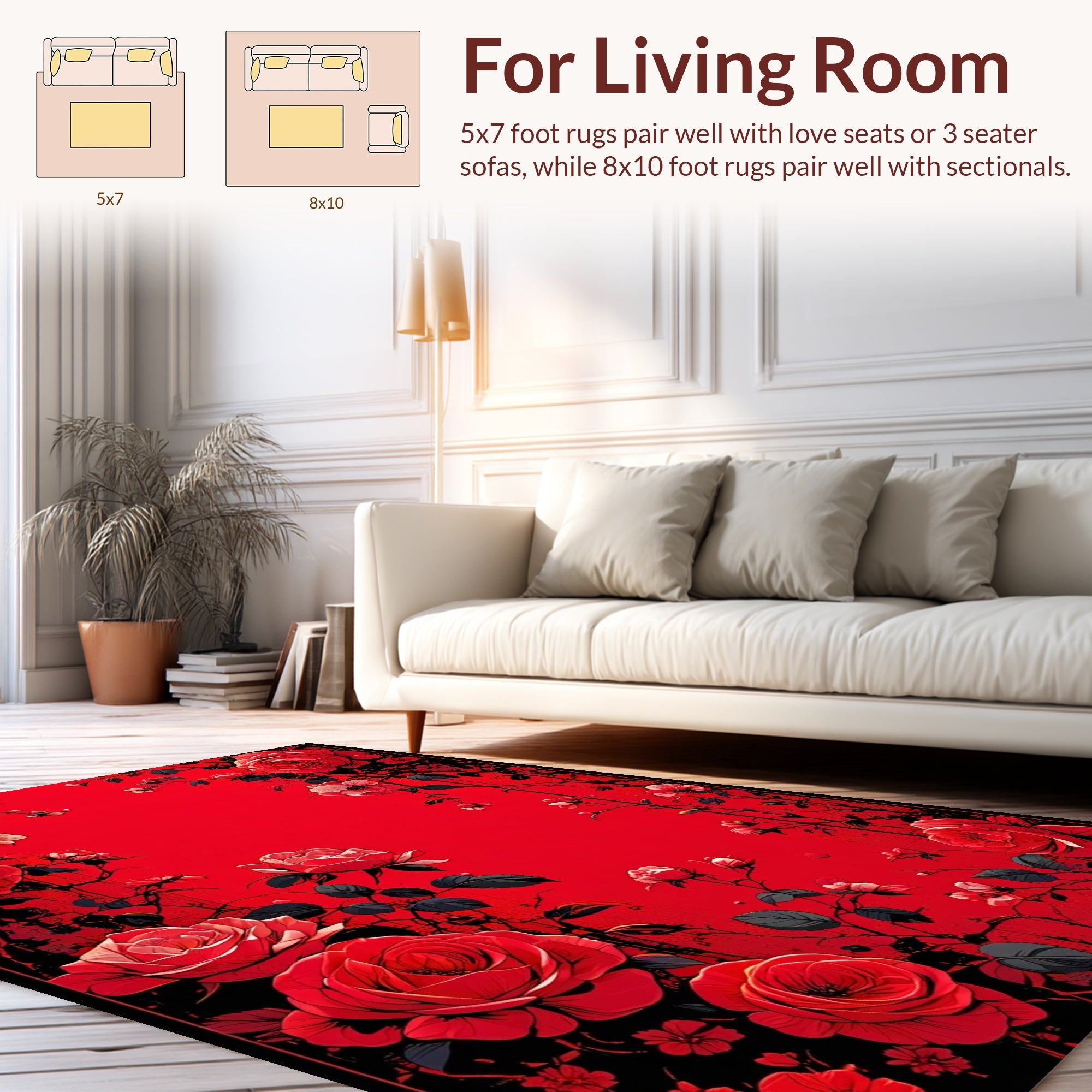 Flatwoven High Traffic Area Rug, Lush Flower Shaped Delight, Non Slip, Stain Resistant, Washable Area Rugs for Living Room, Bedroom (Red) Overview: