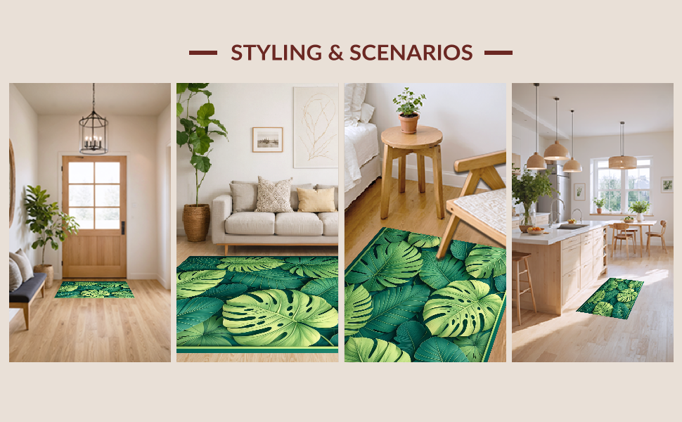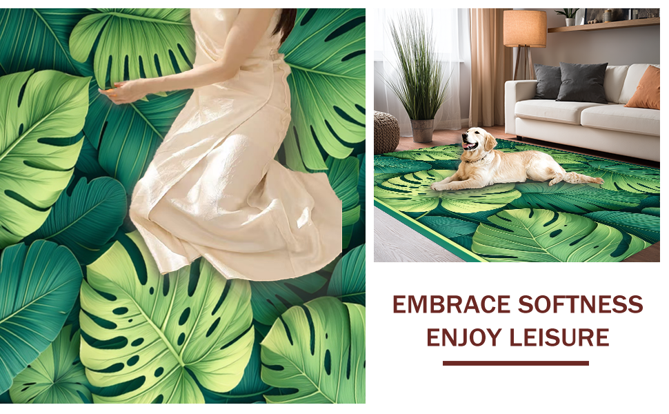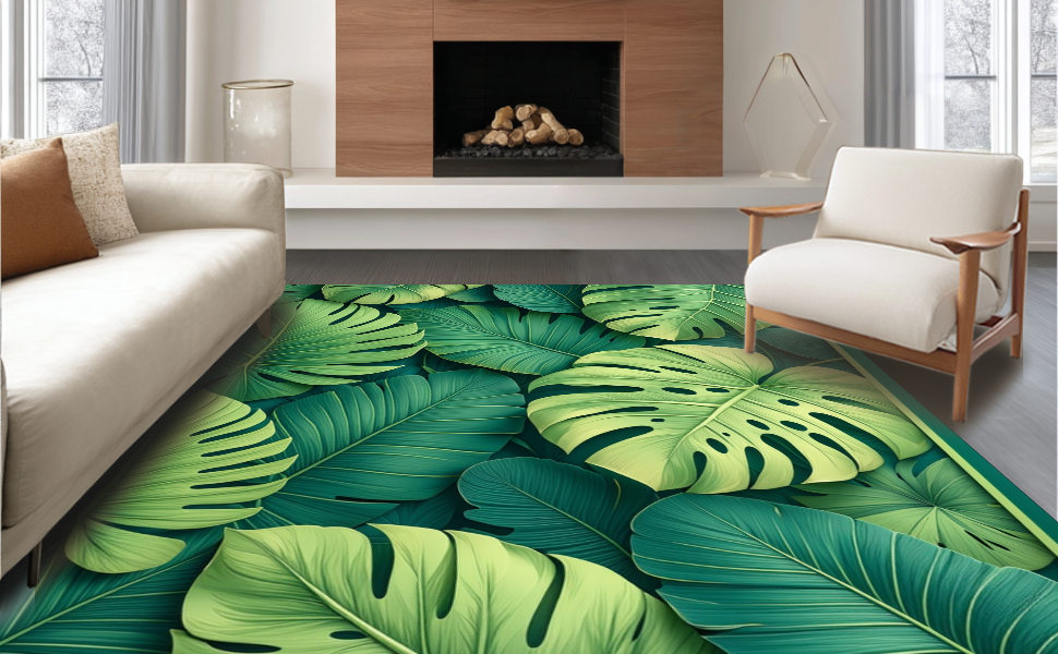 Ultra Soft Area Rug, Non Slip, Stain Resistant, Washable Area Rugs for Living Room, Bedroom, Lush Foliage Visionary Style(Green) Overview: