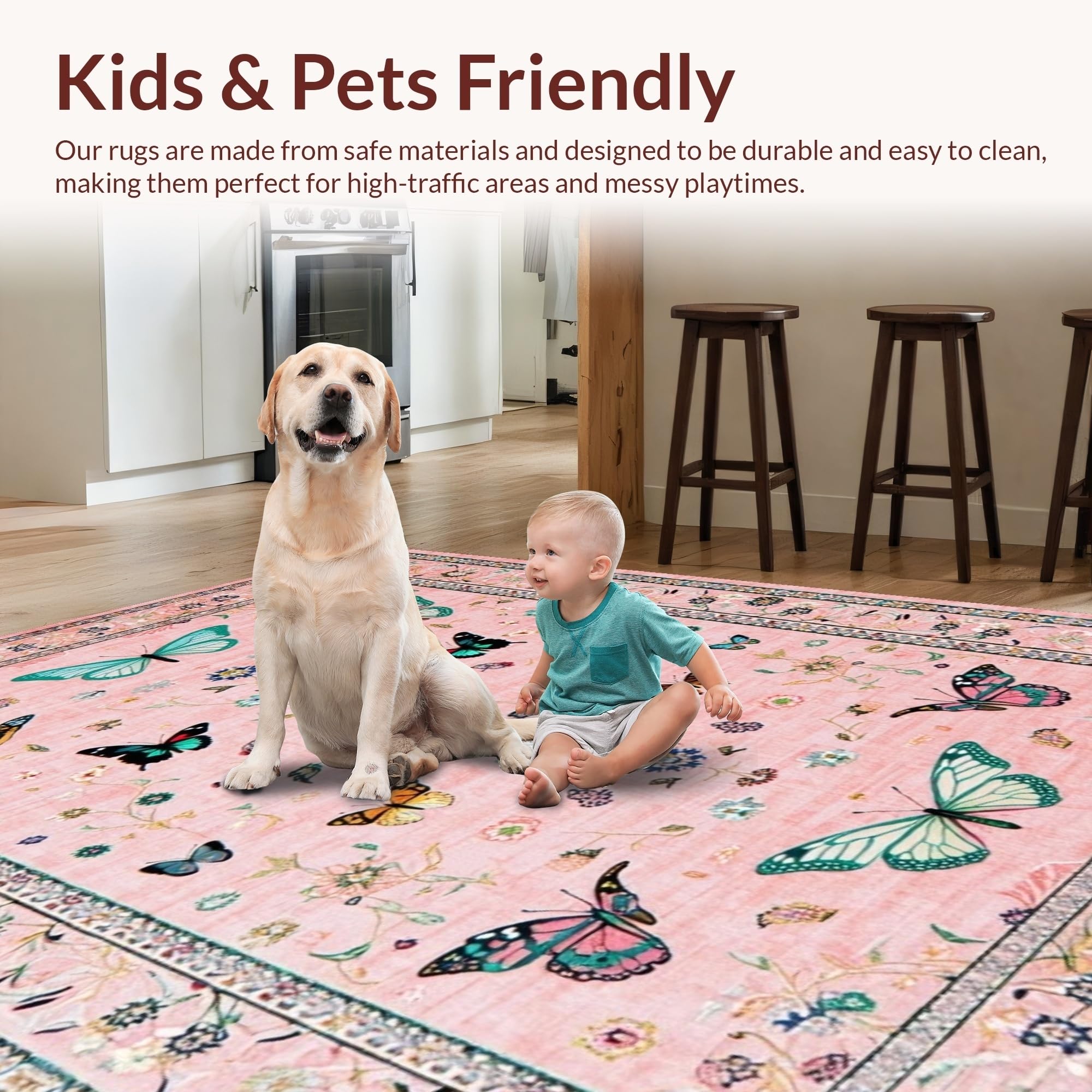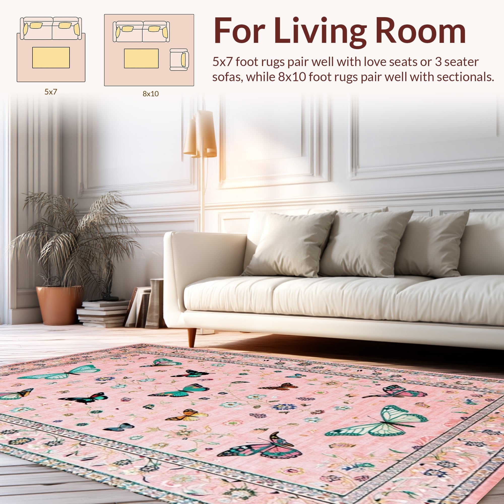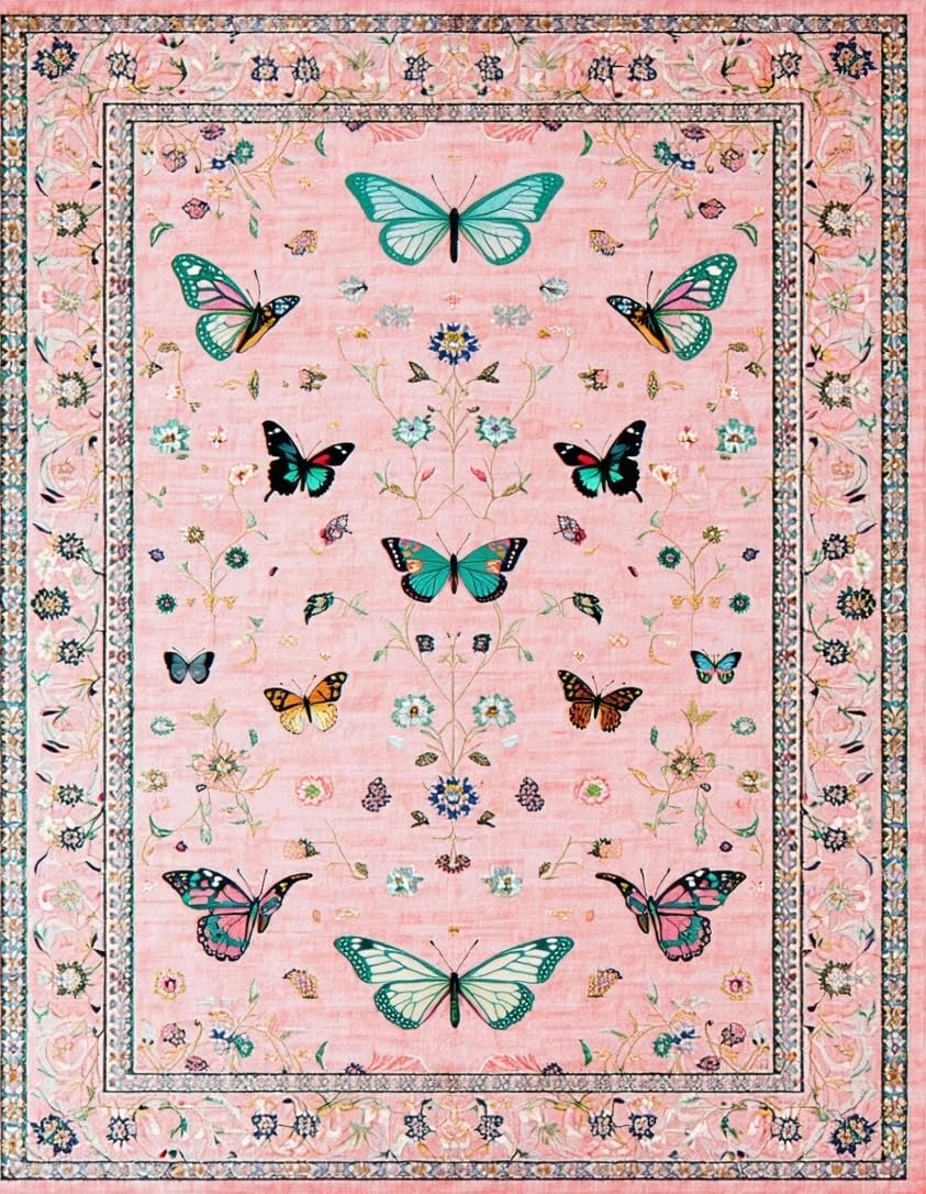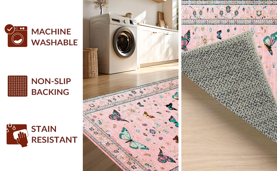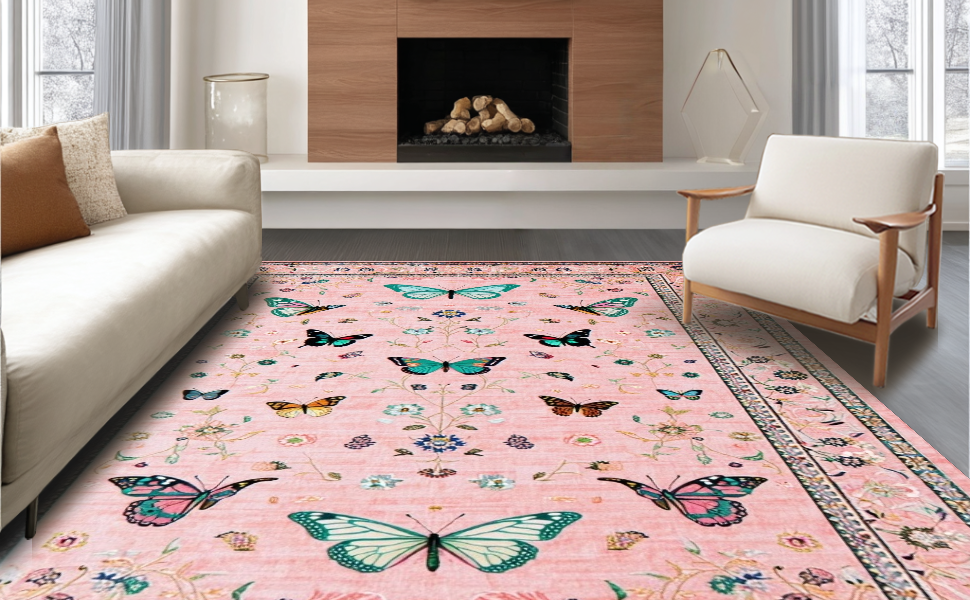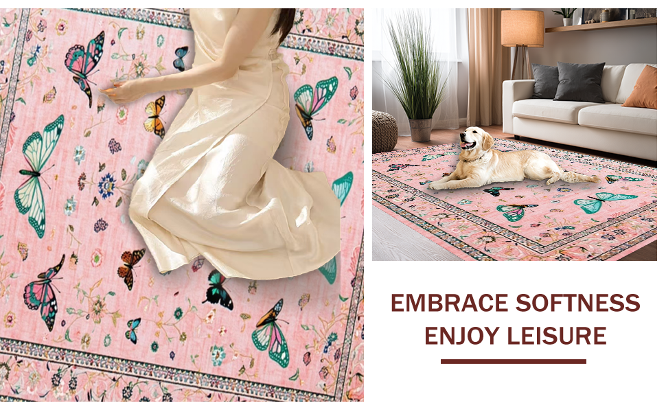 Ultra Soft Area Rug, Non Slip, Stain Resistant, Washable Area Rugs for Living Room, Bedroom, Lush Garden-Inspired Color Palette(Pink) Overview: