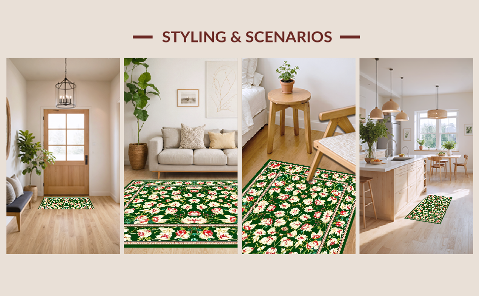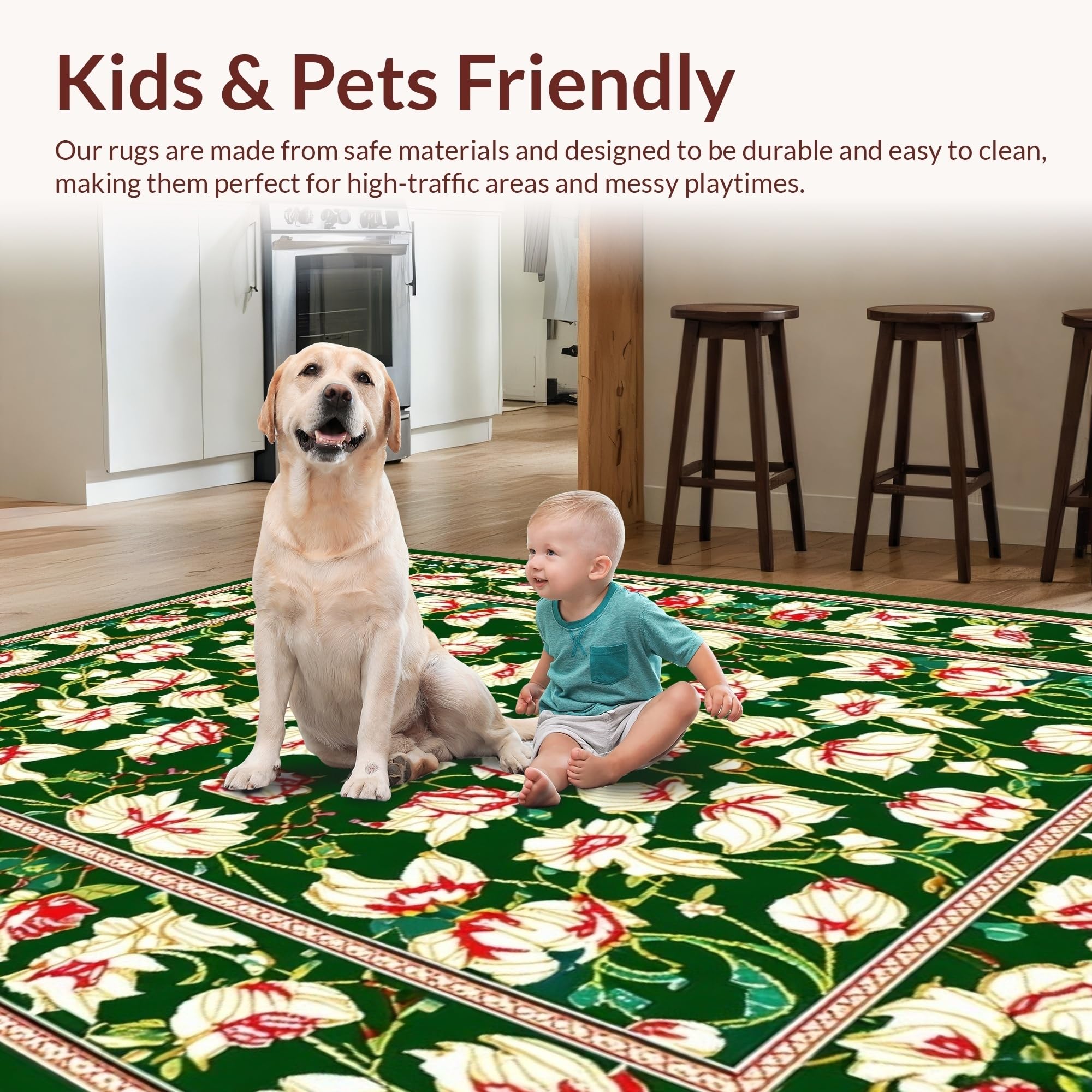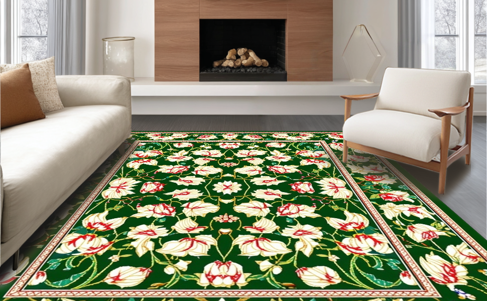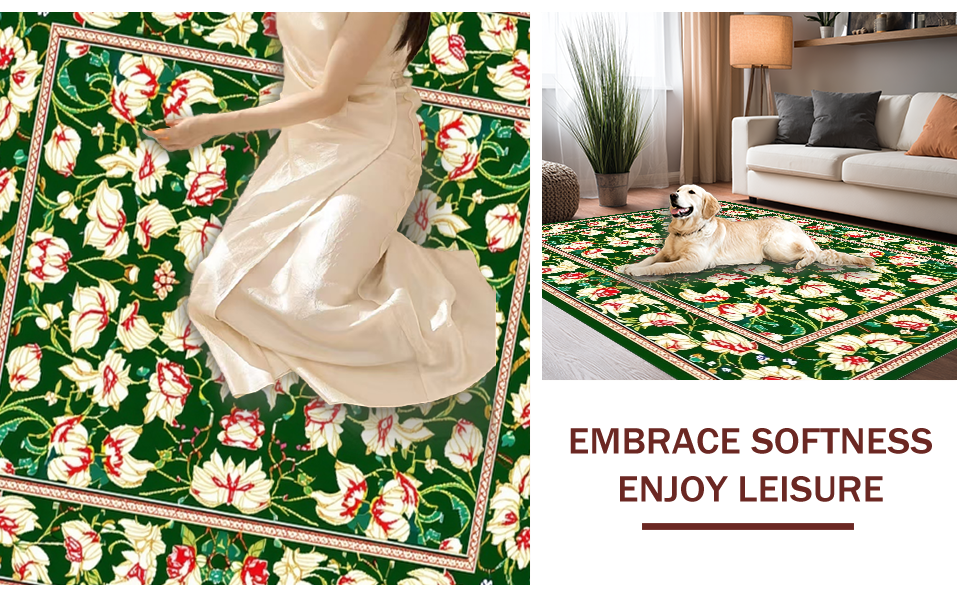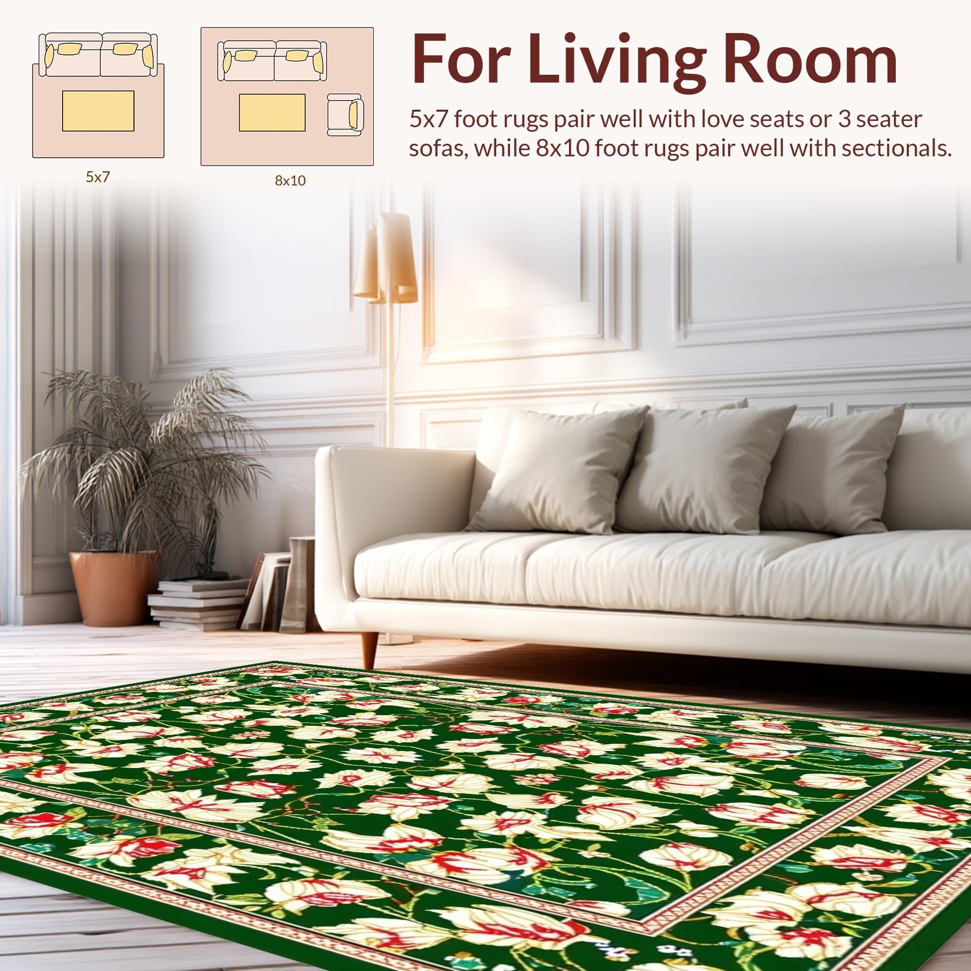 Ultra Soft Area Rug, Non Slip, Stain Resistant, Washable Area Rugs for Living Room, Bedroom, Lush Garden Motif with Depth(Green) Overview: