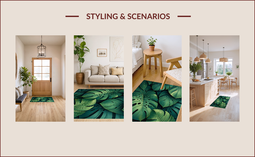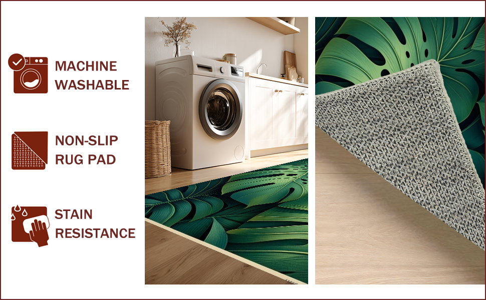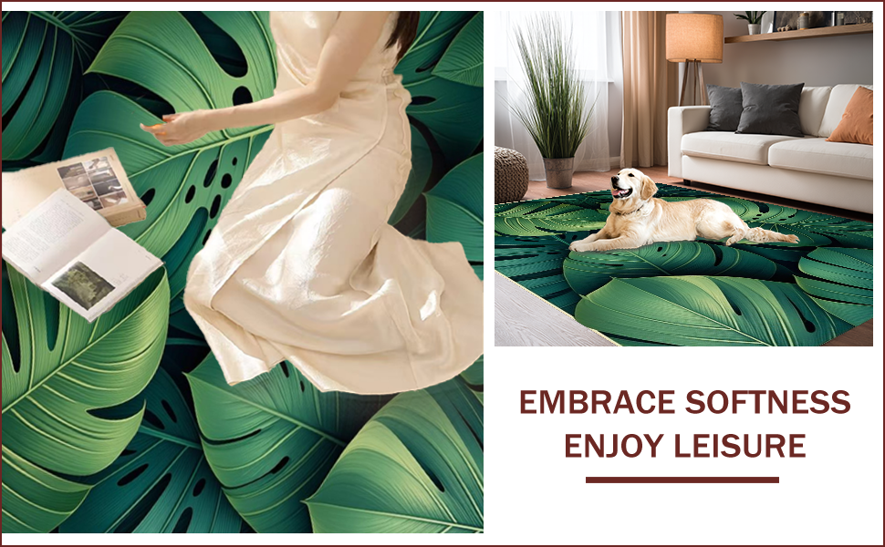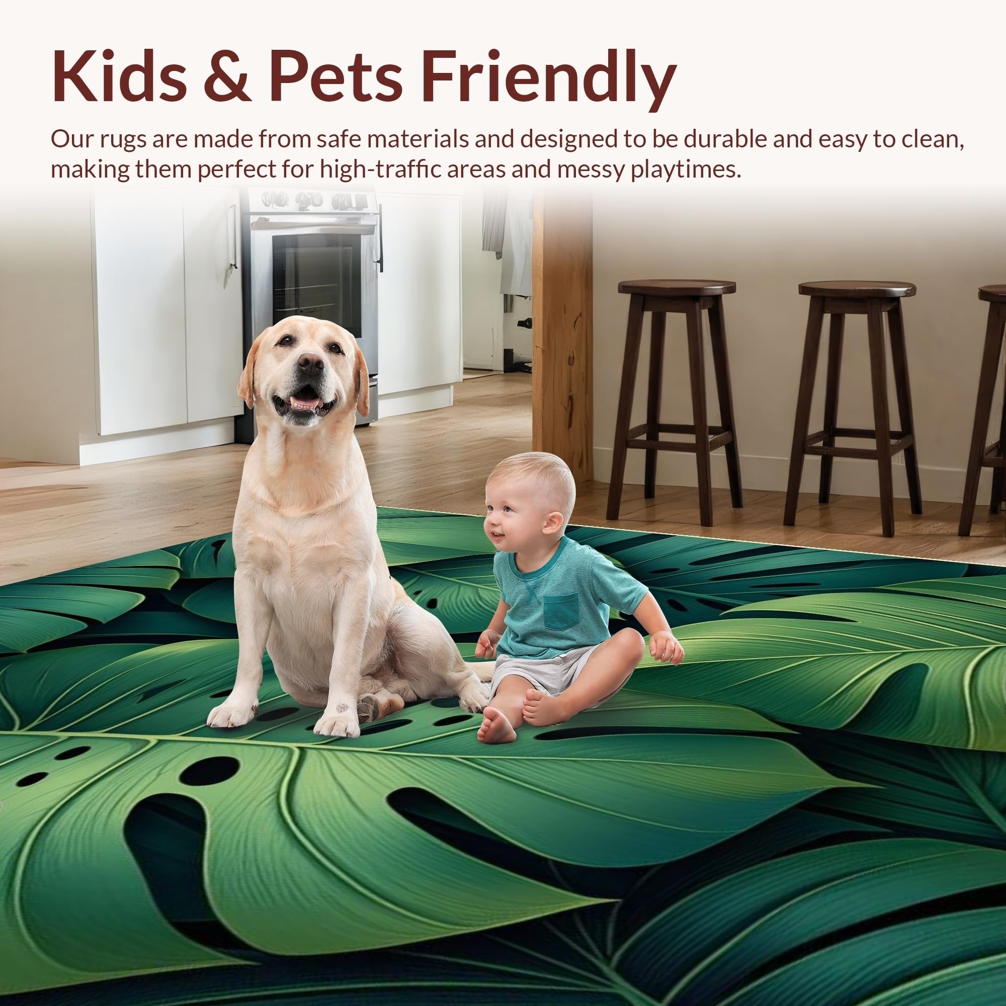 Ultra Soft Area Rug, Non Slip, Stain Resistant, Washable Area Rugs for Living Room, Bedroom, Lush Green Botanical Aesthetic(Green) Overview: