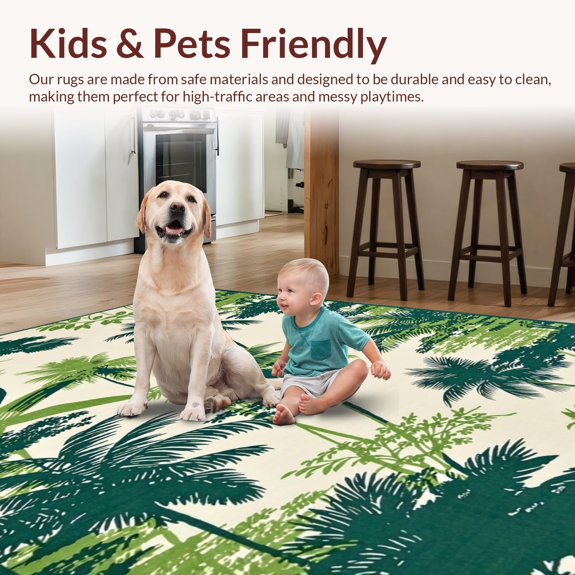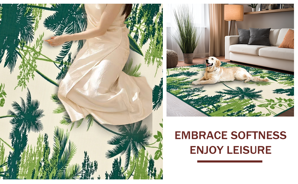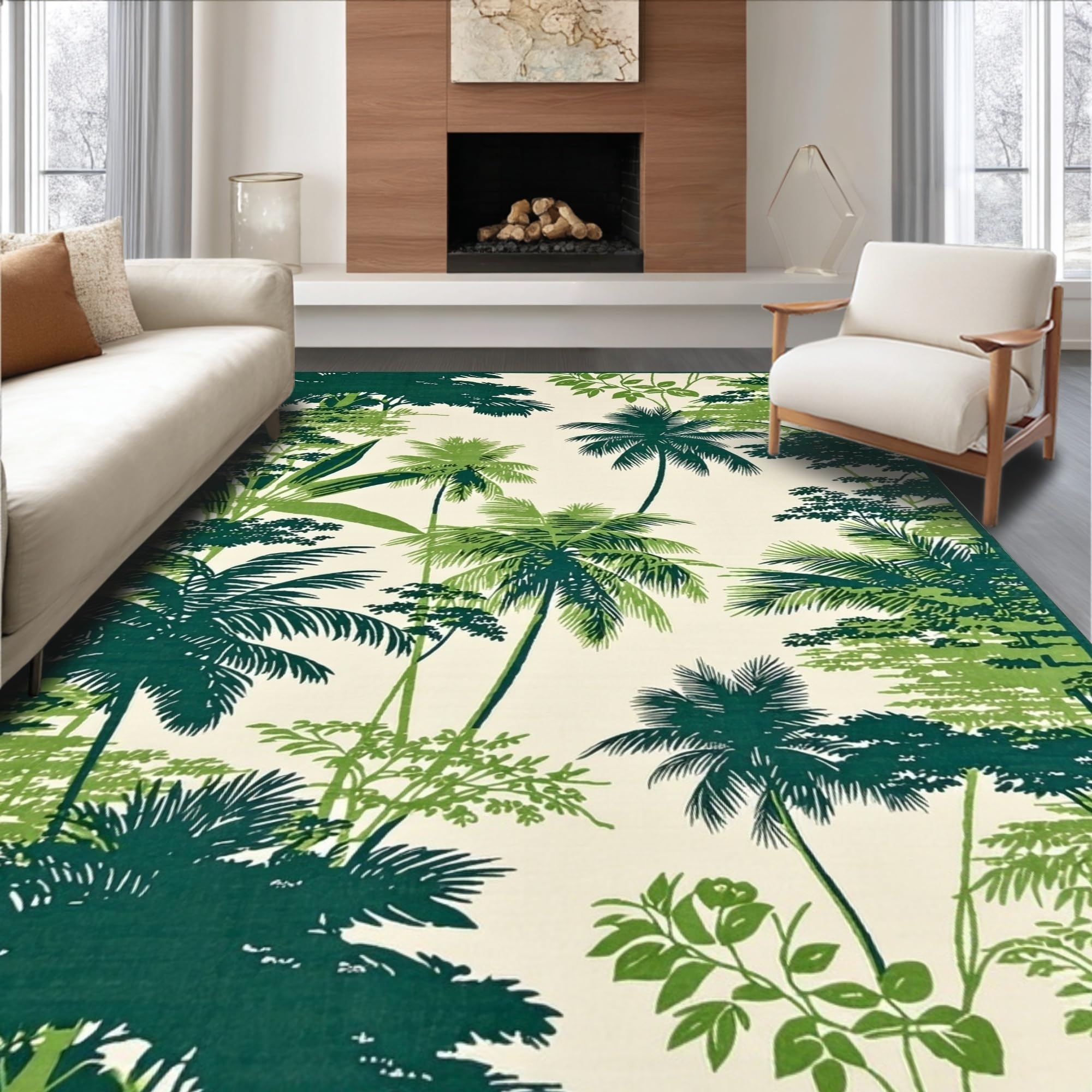 Ultra Soft Area Rug, Non Slip, Stain Resistant, Washable Area Rugs for Living Room, Bedroom, Lush Green Tropical Elegance(Green) Overview: