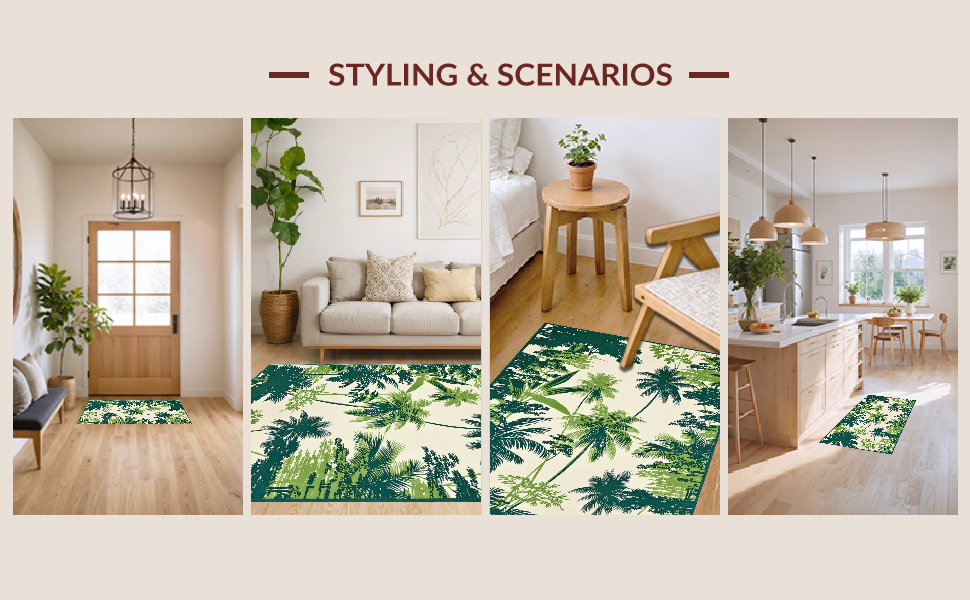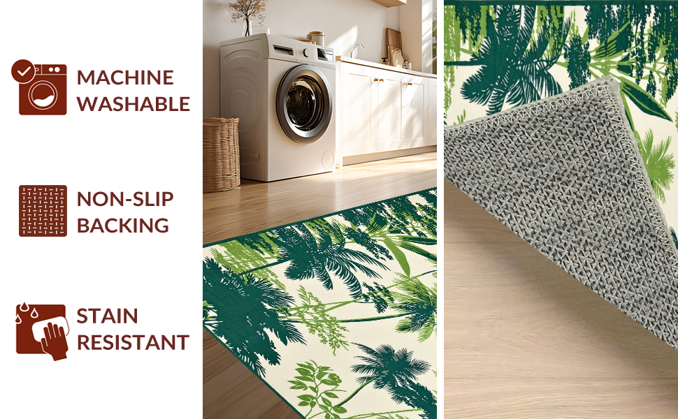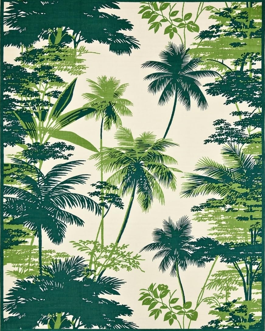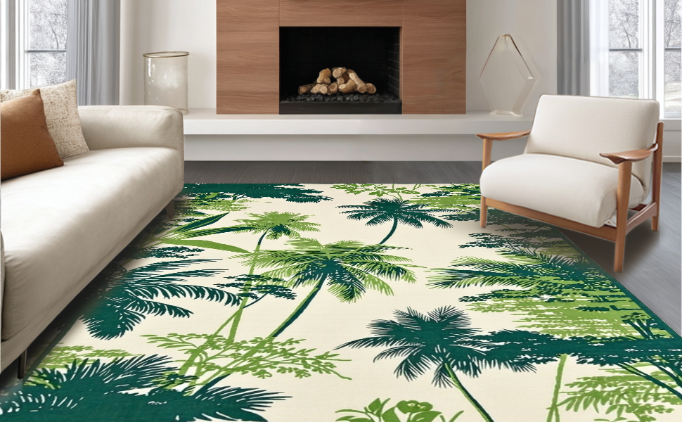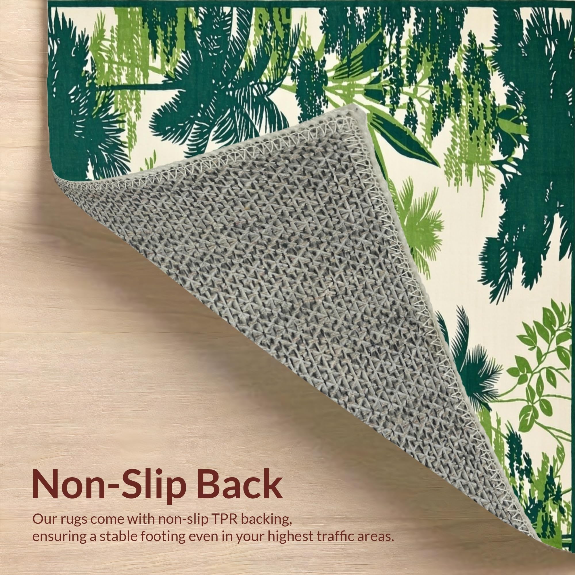 Ultra Soft Area Rug, Non Slip, Stain Resistant, Washable Area Rugs for Living Room, Bedroom, Lush Green Tropical Elegance(Green) Overview: