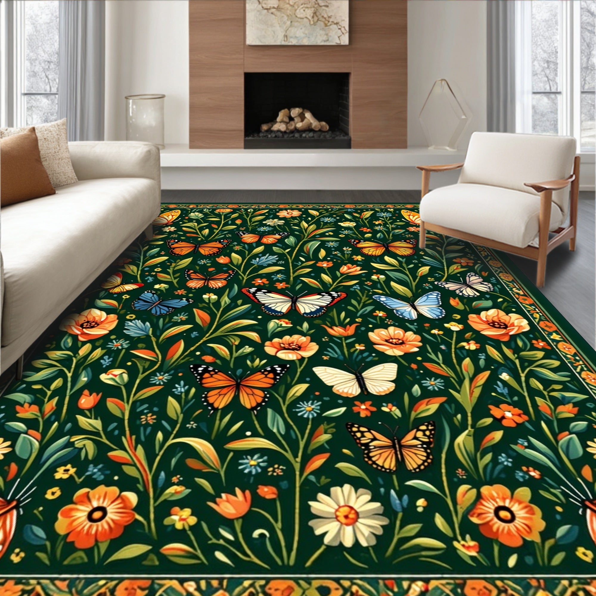 Flatwoven High Traffic Area Rug, Lush Green Vintage Floral Vibe, Non Slip, Stain Resistant, Washable Area Rugs for Living Room, Bedroom (Green) Overview: