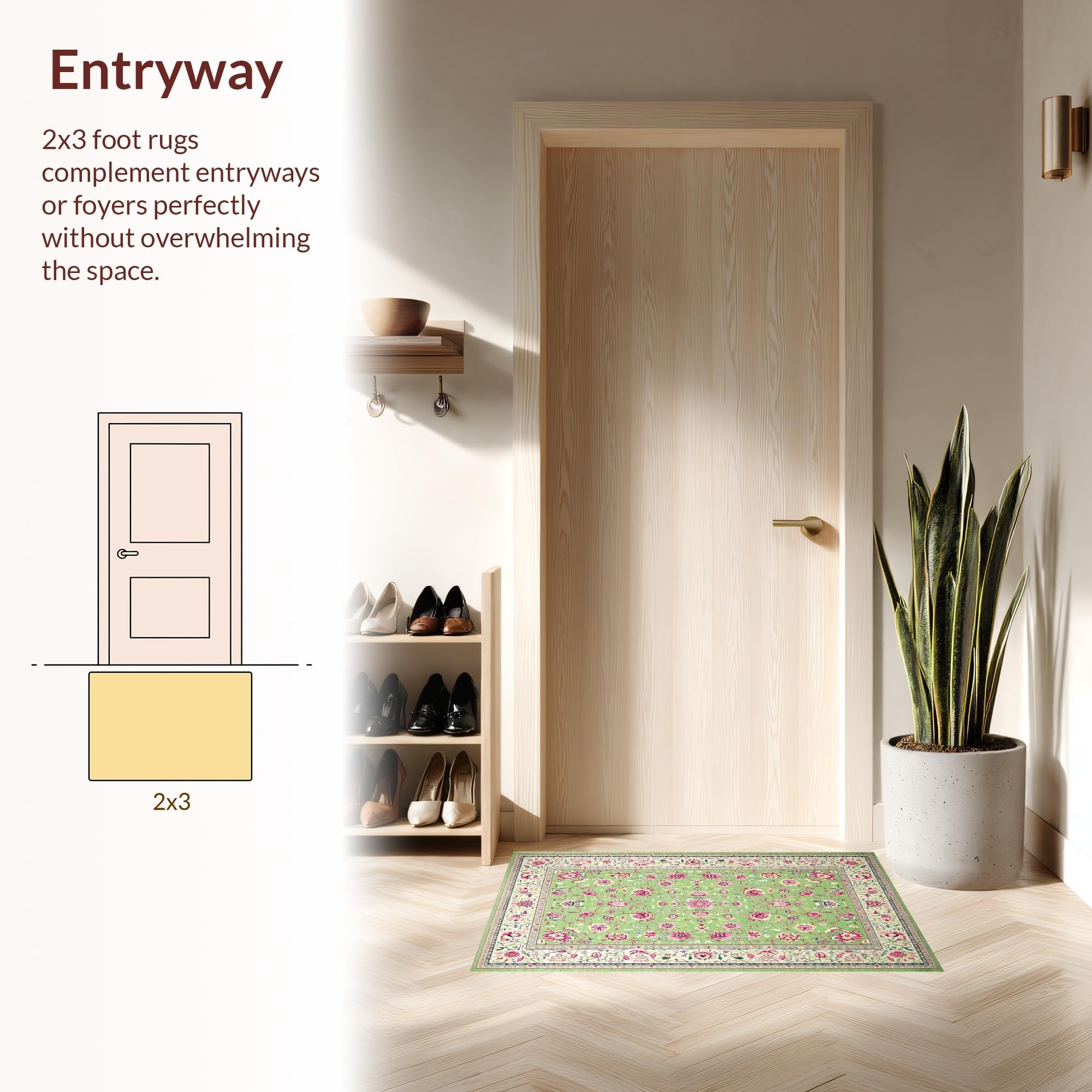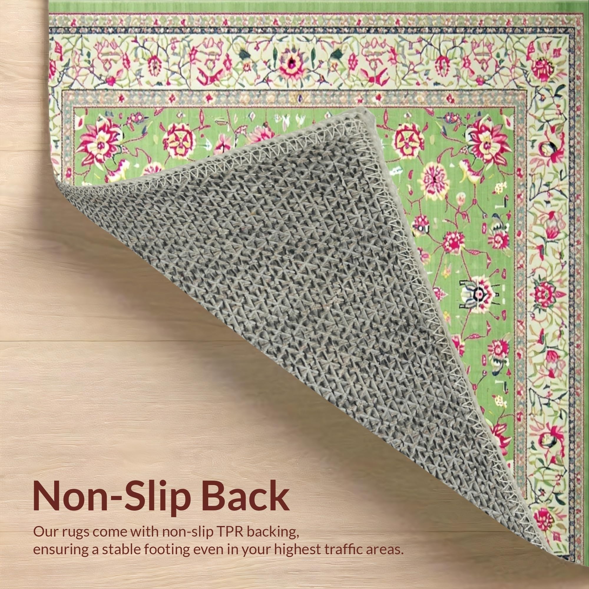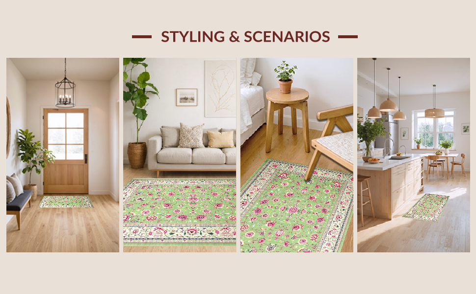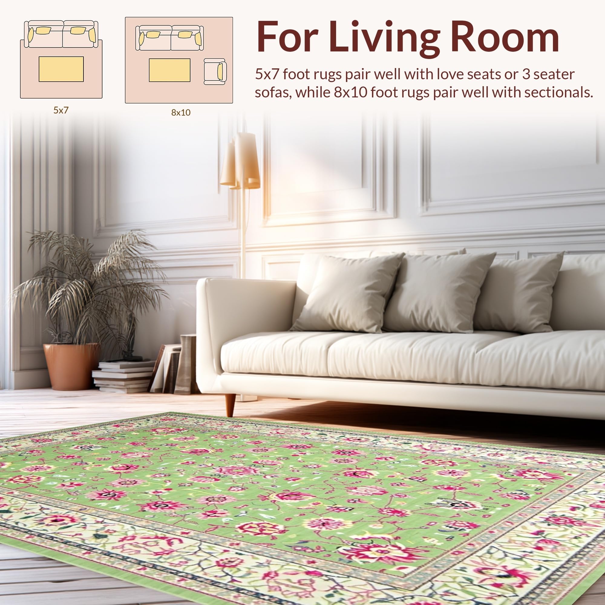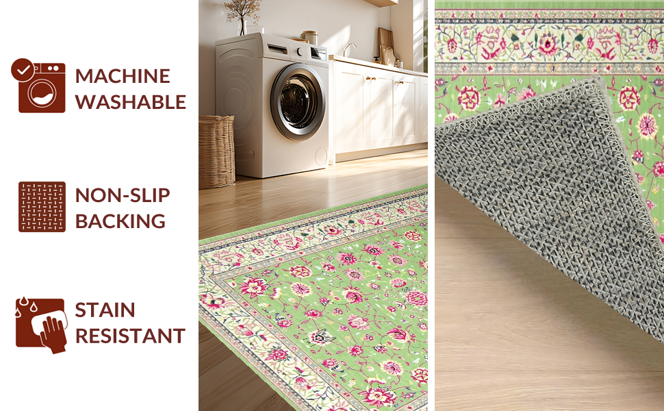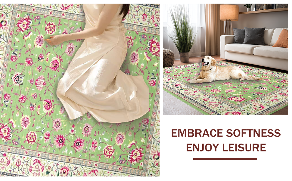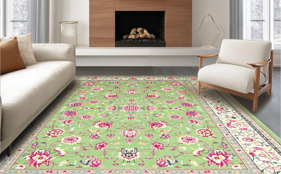 Ultra Soft Area Rug, Non Slip, Stain Resistant, Washable Area Rugs for Living Room, Bedroom, Lush Greenery Vintage Influence(Green) Overview: