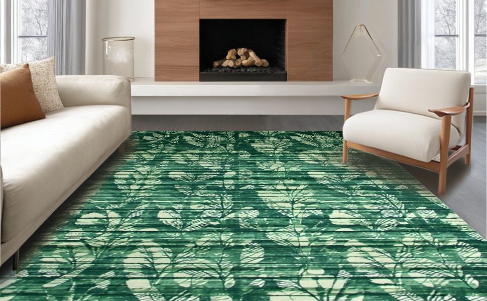 Ultra Soft Area Rug, Non Slip, Stain Resistant, Washable Area Rugs for Living Room, Bedroom, Lush Layered Organic Swatch(Green) Overview: