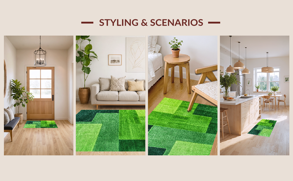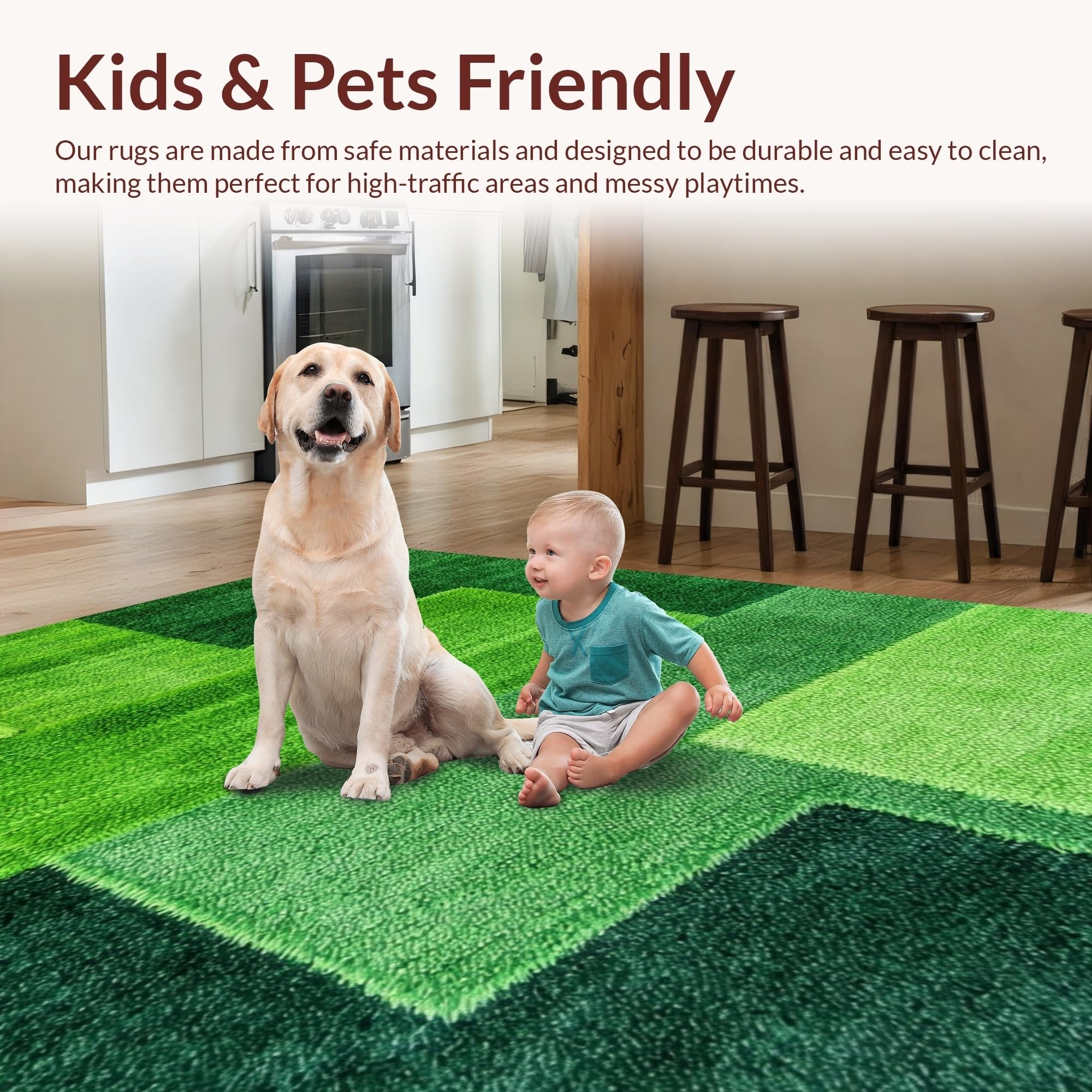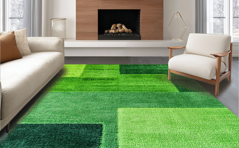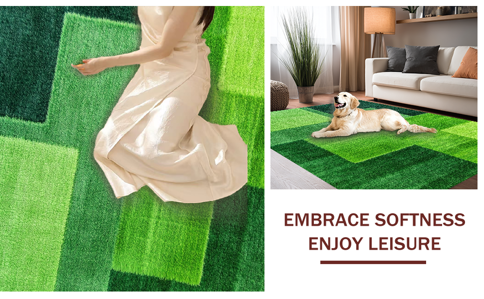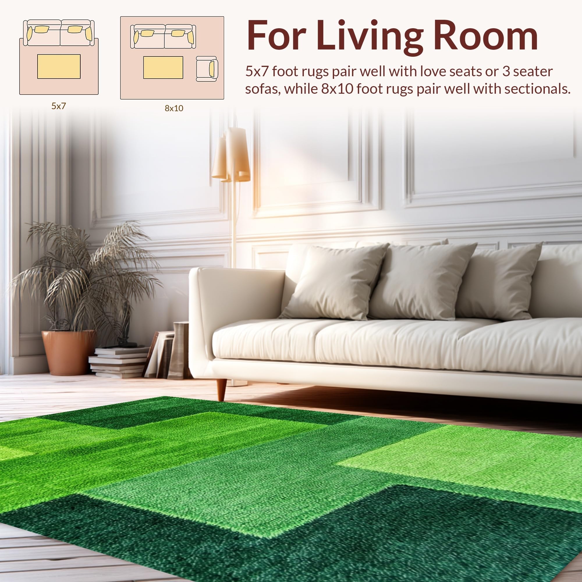 Ultra Soft Area Rug, Non Slip, Stain Resistant, Washable Area Rugs for Living Room, Bedroom, Lush Modern Grass Aesthetic(Green) Overview: