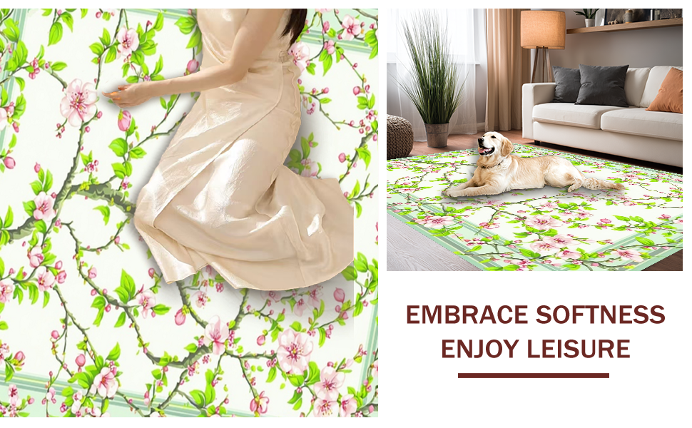 Ultra Soft Area Rug, Non Slip, Stain Resistant, Washable Area Rugs for Living Room, Bedroom, Lush Nature-Themed Decorative Accent(Pink) Overview:
